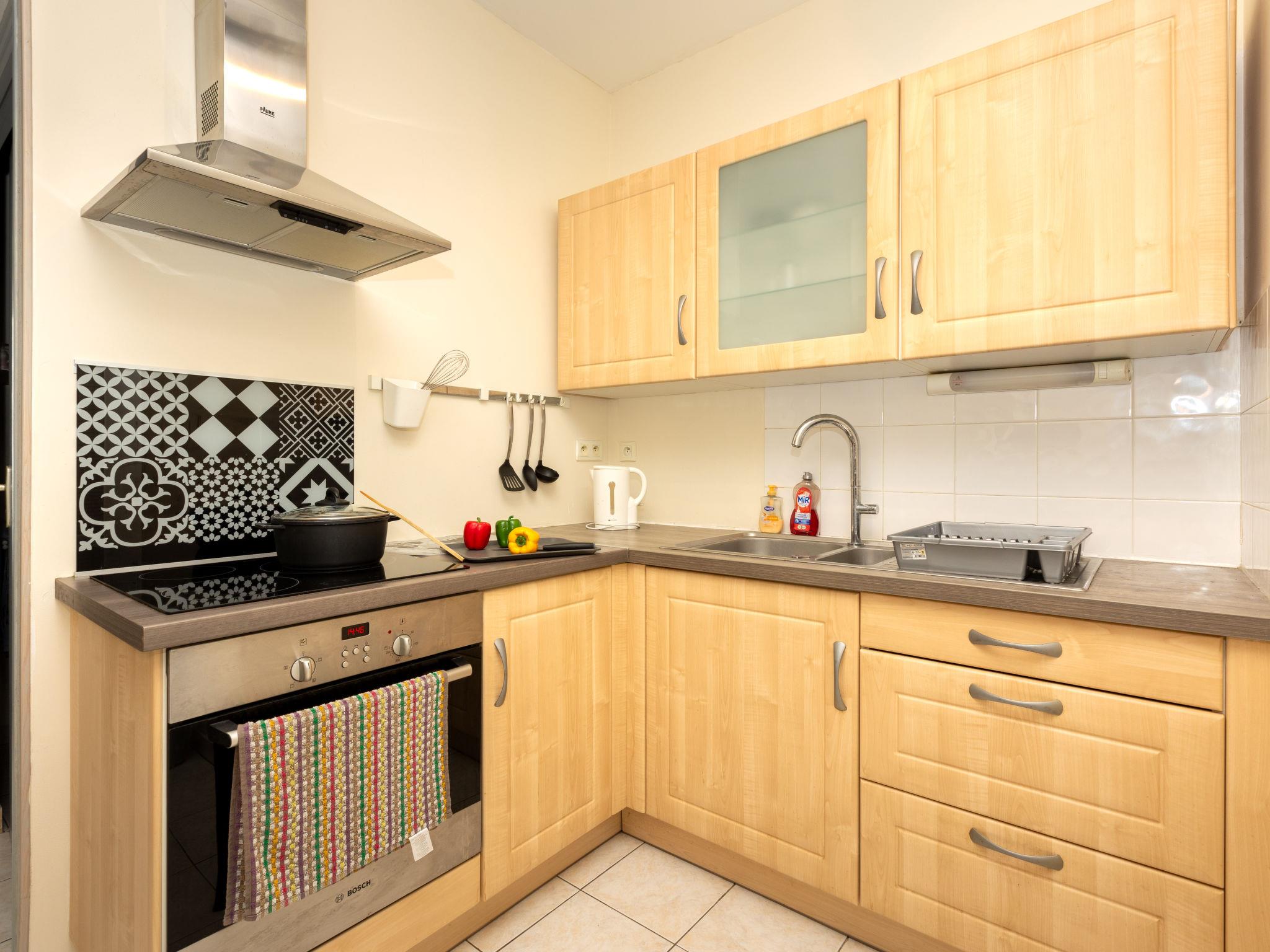 "Ange", 2-room apartment 43 m2, on the ground floor. Comfortable and tasteful furnishings: living/dining room with TV (flat screen). 1 room with 1 french bed (1 x 140 cm, length 190 cm). Open kitchen (oven, 3 induction hot plates, toaster, kettle, microwave, freezer, electric coffee machine). Bathroom, sep. WC. Electric heating. Heating available only from 15.10. to 15.04. Small terrace 4 m2. Terrace furniture. Facilities: washing machine. Internet (WiFi, free). Please note: apartment courtyard side. Smoke alarm. Offer by a private individual according to Art. 155, IV of CGI. 3528800593645
