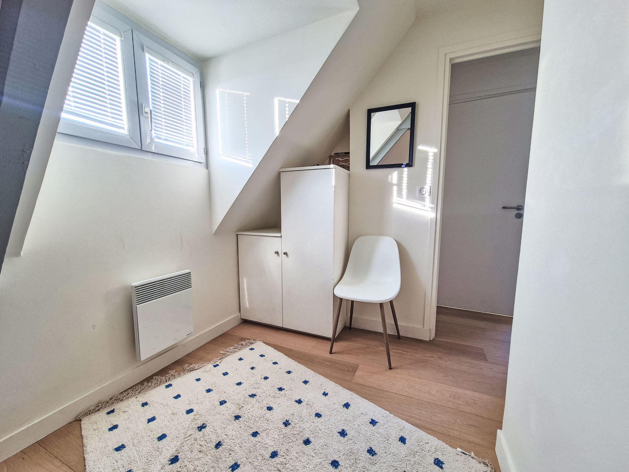 "Fleurs d'Ajoncs", 5-room maisonette 61 m2. Bright, partly with sloping ceilings, comfortable and beautiful furnishings: large living/dining room with sloping ceilings with CD-player and hi-fi system. Exit to the terrace. 1 room with 1 bed (90 cm, length 190 cm). 1 room with 1 french bed (1 x 160 cm, length 200 cm). Open kitchen (oven, dishwasher, 3 induction hot plates, toaster, kettle, microwave, electric coffee machine, Capsules for coffee machine (Nespresso) extra). Shower/WC. On the lower ground floor: 1 room with 2 beds (90 cm, length 190 cm). 1 room with 1 french bed (1 x 140 cm, length 190 cm). Exit to the balcony. Shower/WC. Electric heating, boiler (200 litres). Very beautiful view of the sea. Facilities: washing machine, dryer. Internet (WiFi, free). Please note: non-smokers only. Smoke alarm. 35288803076D4