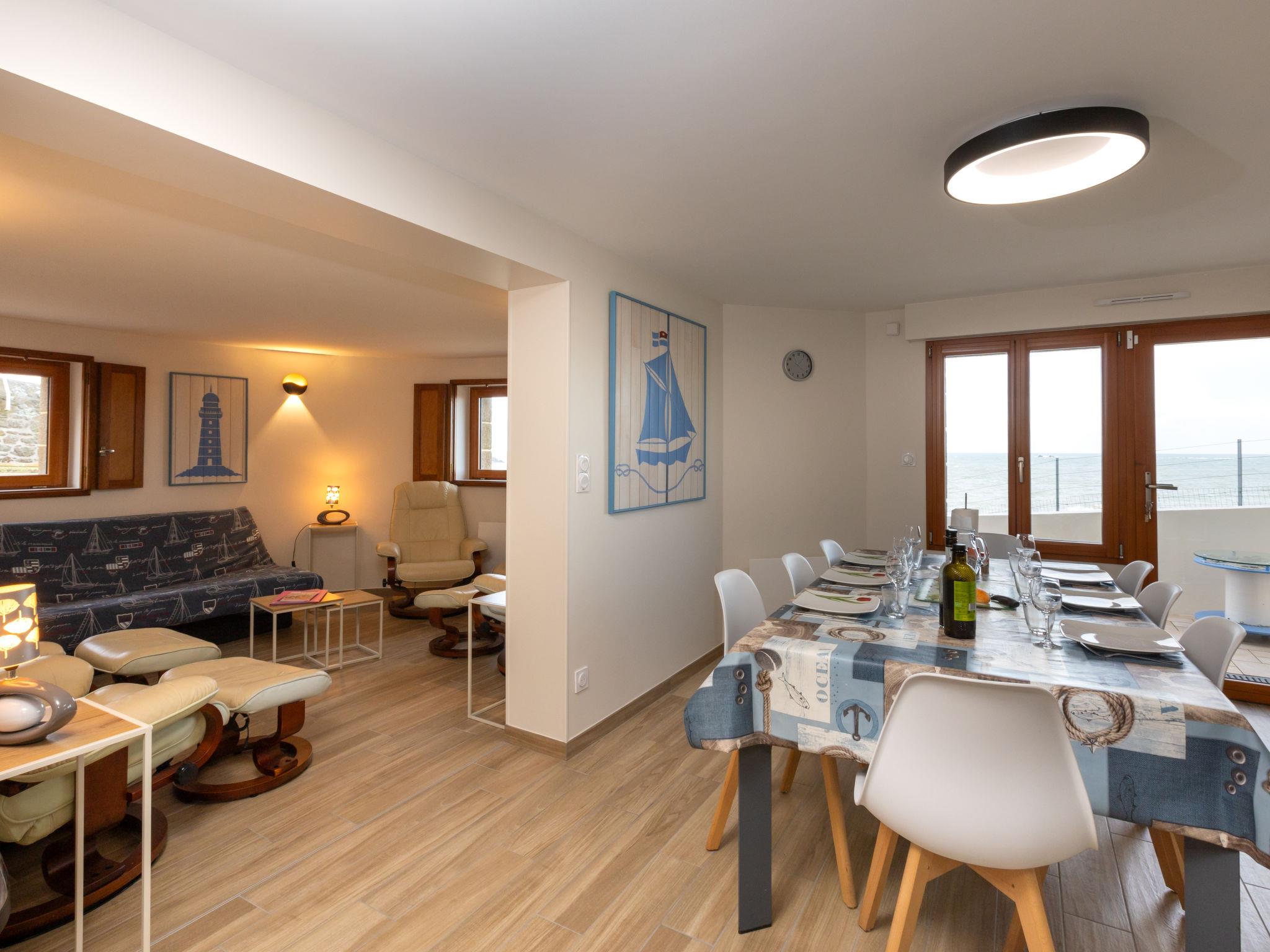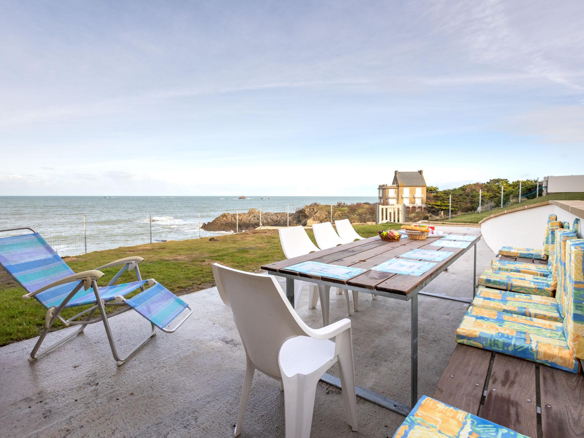 Very beautiful 2-family house "Ancadau". In the district of Rotheneuf, in a quiet position residential area (villas), traffic calmed area, 20 m from the sea, 20 m from the beach, direct access to the beach. Private: well-kept garden (fenced) with lawn. Outdoor shower, terrace, garden furniture, barbecue. In the house: storage room for bicycles, washing machine, tumble dryer. Public parking on the road. Grocery 850 m, supermarket 3.5 km, shopping centre 3.5 km, restaurant 800 m, bus stop "Nicet" 450 m, railway station "Gare TGV St Malo" 5.2 km, ferry "Gare Maritime du Naye" 7 km, sandy beach "Nicet" 20 m, thermal baths "Thermes marins de St Malo" 3.6 km. Sports harbour 9 km, children's playground 100 m. Nearby attractions: Le grand aquarium de St Malo 8.5 km, Cancale 11 km, Dinan 36 km, Dinard 16 km, Dol de Bretagne 31 km, Le Mont St Michel 56 km. Please note: baby equipment (included).