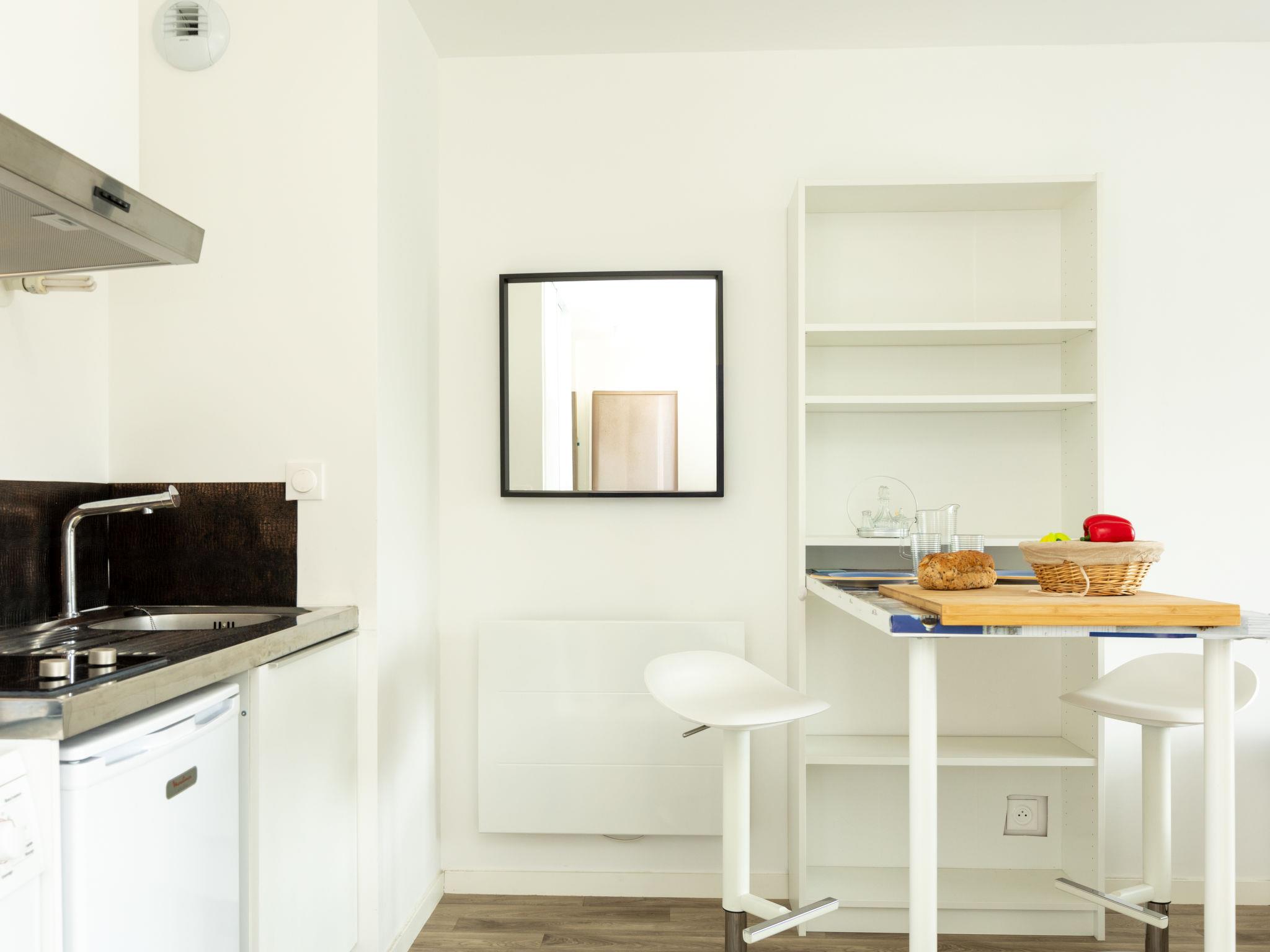 1-room apartment 25 m2 on 2nd floor. Beautiful and tasteful furnishings: Studio with 1 double sofabed (2 x 80 cm, length 200 cm). Exit to the terrace. Small, open kitchen (2 ceramic glass hob hotplates, toaster, kettle, microwave, electric coffee machine). Shower/WC. Electric heating. Large terrace 12 m2, south facing position. Terrace furniture. Facilities: washing machine. Internet (WiFi, extra). Parking space n 66 (roofed, 1 car). Please note: non-smoking house. Smoke alarm. Offer by a private individual according to Art. 155, IV of CGI. 35288006077EF