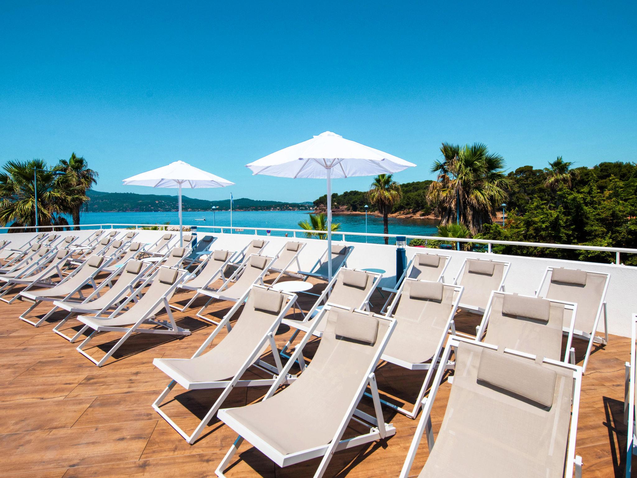 "Le Cap Azur", 2-room apartment 30 m2. Bright, modern furnishings: living/sleeping room with 1 double sofabed, dining table and TV. 1 room with 1 french bed (160 cm). Kitchenette (dishwasher, 2 ceramic glass hob hotplates, toaster, kettle, freezer, electric coffee machine, combination microwave). Bathroom, sep. WC. Heating, air-conditioning. Balcony or terrace. Terrace furniture, balcony furniture. Facilities: Internet (WiFi, free). Parking (roofed, 1 car). Please note: non-smokers only. Maximum 1 pet/ dog allowed. Smoke alarm, fire extinguisher. The property is one of a type of property or apartment.
