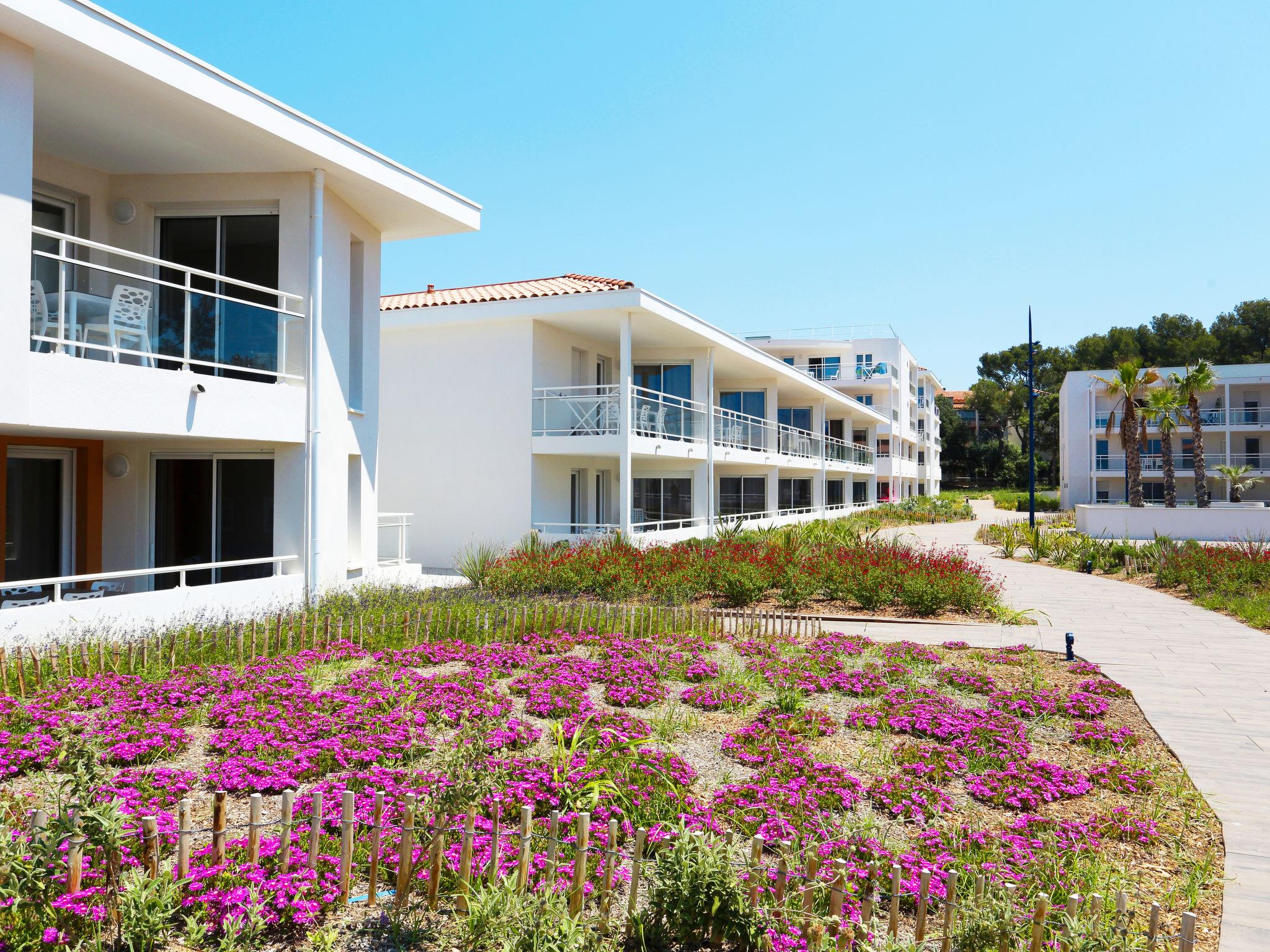 Child friendly resort "Le Cap Azur", built in 2018. 154 apartments in the residence. 3 km from the centre of Saint-Mandrier-sur-Mer, 6 km from the centre of La Seyne-sur-Mer, 13 km from the centre of Toulon, in the residential district, 20 m from the sea. For shared use: property 13 ha (fenced) with plants and flowers, swimming pool heated, fenced (100 m2, seasonal availability: 01.Jan. - 31.Dec.). Outdoor shower, terrace, children's playground. In the complex: reception, breakfast room, internet access, WiFi, sauna, fitness room, massage (extra). Hot tub, lift, washing machine, tumble dryer (for shared use, extra). Breakfast possible (extra). Shop 200 m, sandy beach "Les Sablettes" 700 m pebble beach "Saint Asile" 20 m. Please note: residence with electric gates. The photograph shows a typical example. The holiday properties may differ in living space, floorplan, equipment and furnishing.