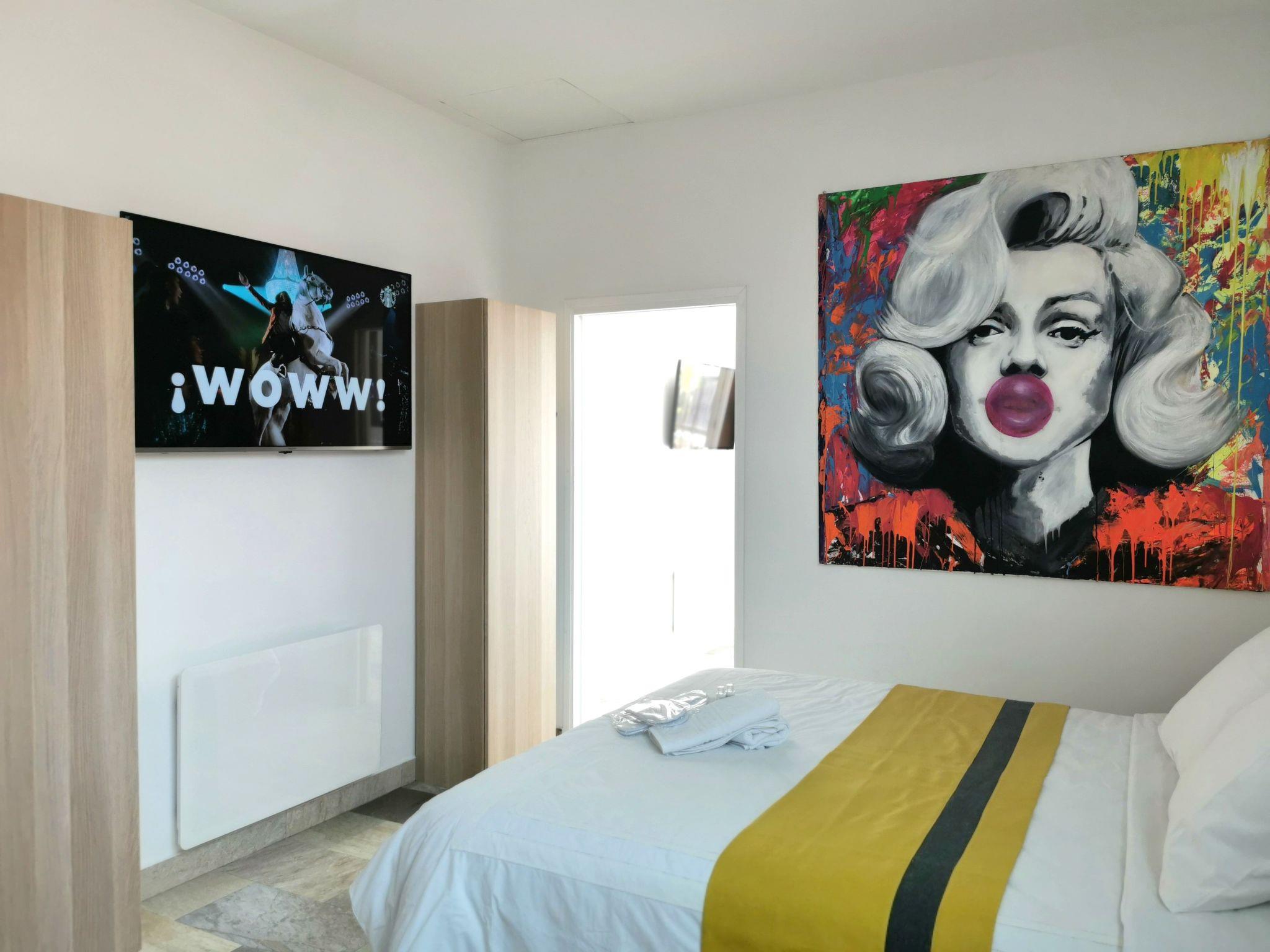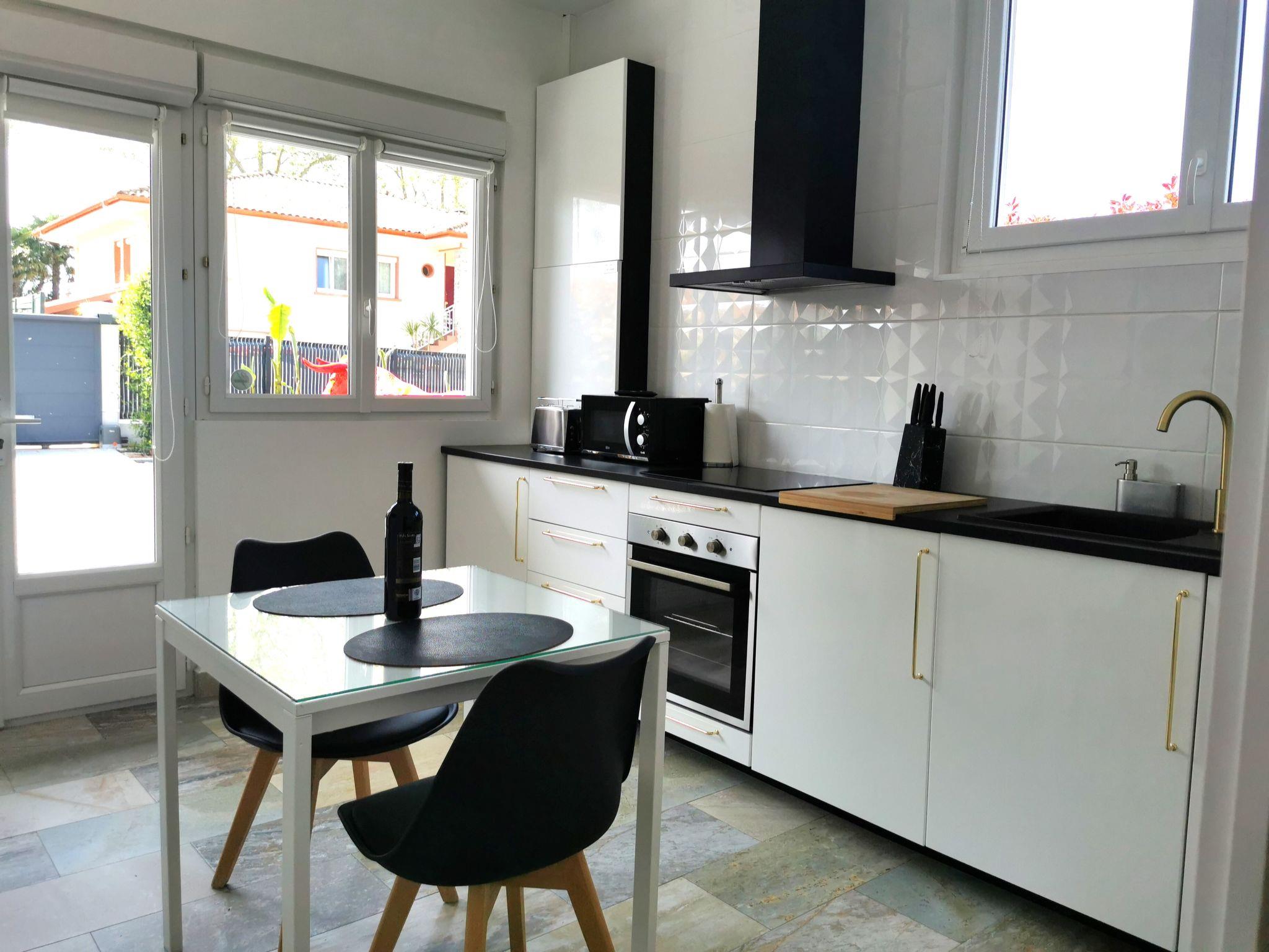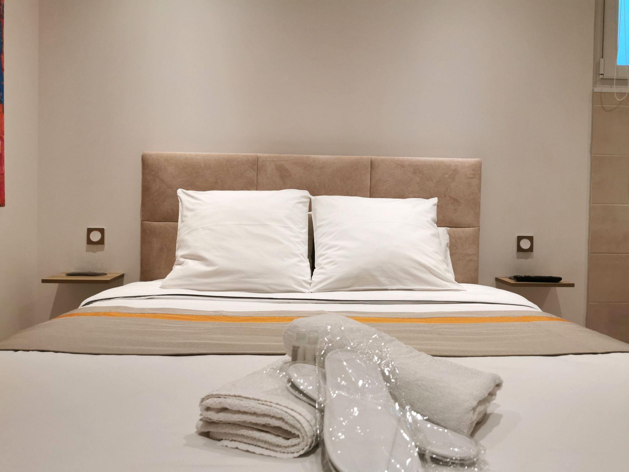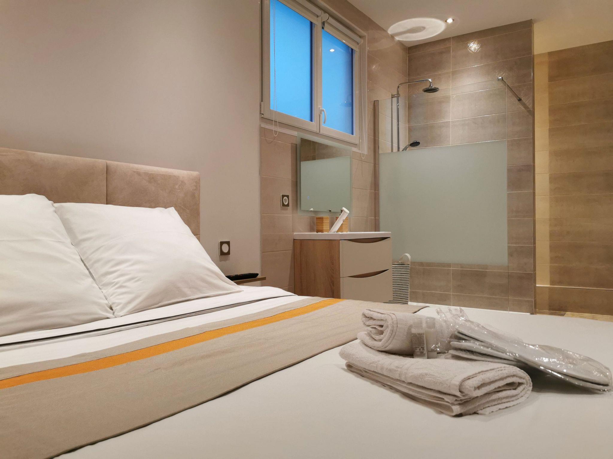 With a surface area of approximately 49 m², the accommodation comprises the following rooms: a fully-equipped kitchen with cooker, fridge with freezer, oven, microwave, washing machine, dishwasher, coffee maker, toaster, and dining area that can accommodate 4 people for a meal, flat-screen smart TV (TNT, Netflix, youtubes etc.) The bedroom with a 160cm bed opens onto the fully-equipped bathroom, with sink, shower, bathtub with 26 balneotherapy and light therapy jets for total relaxation, and toilet. free wifi