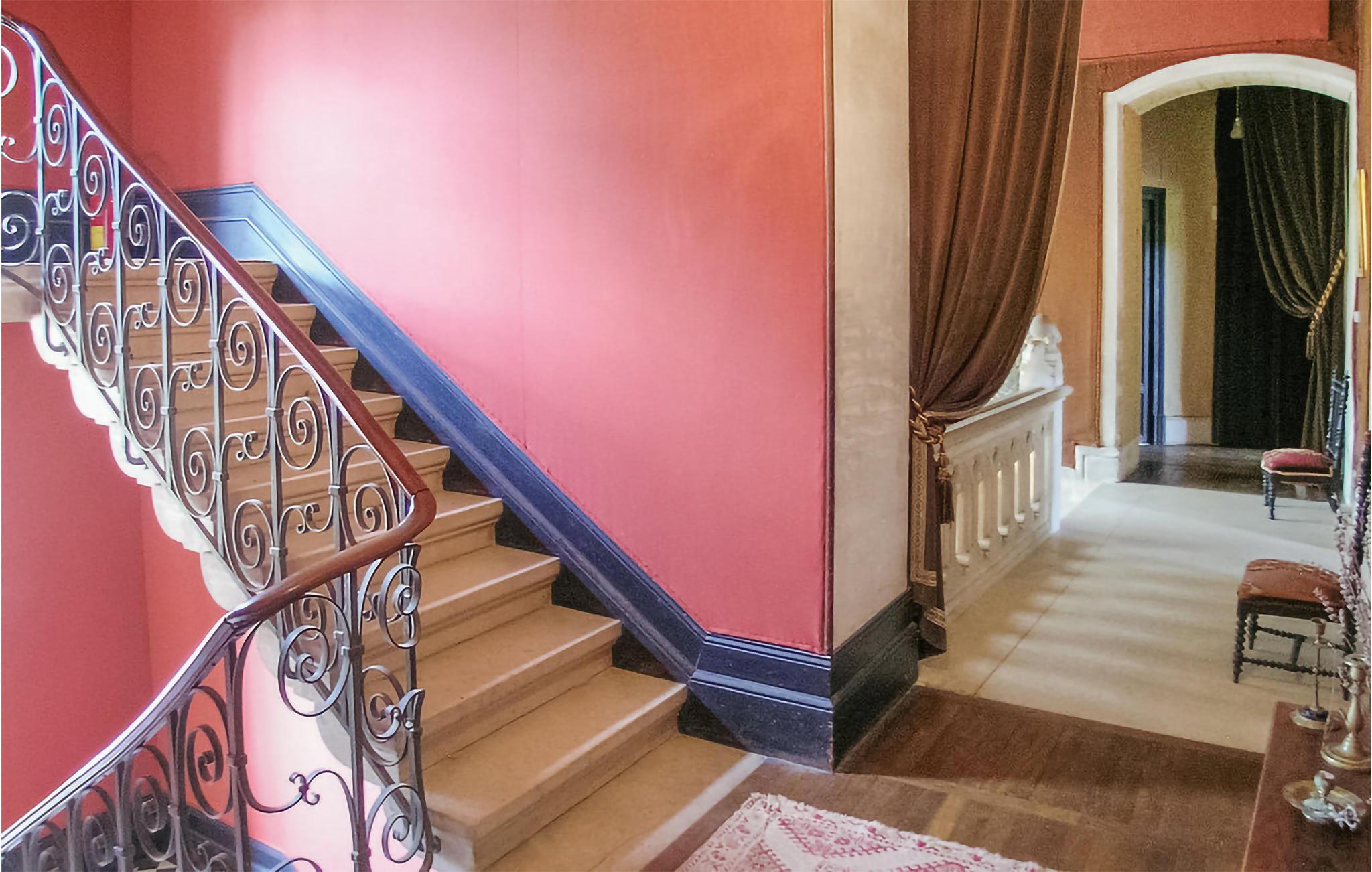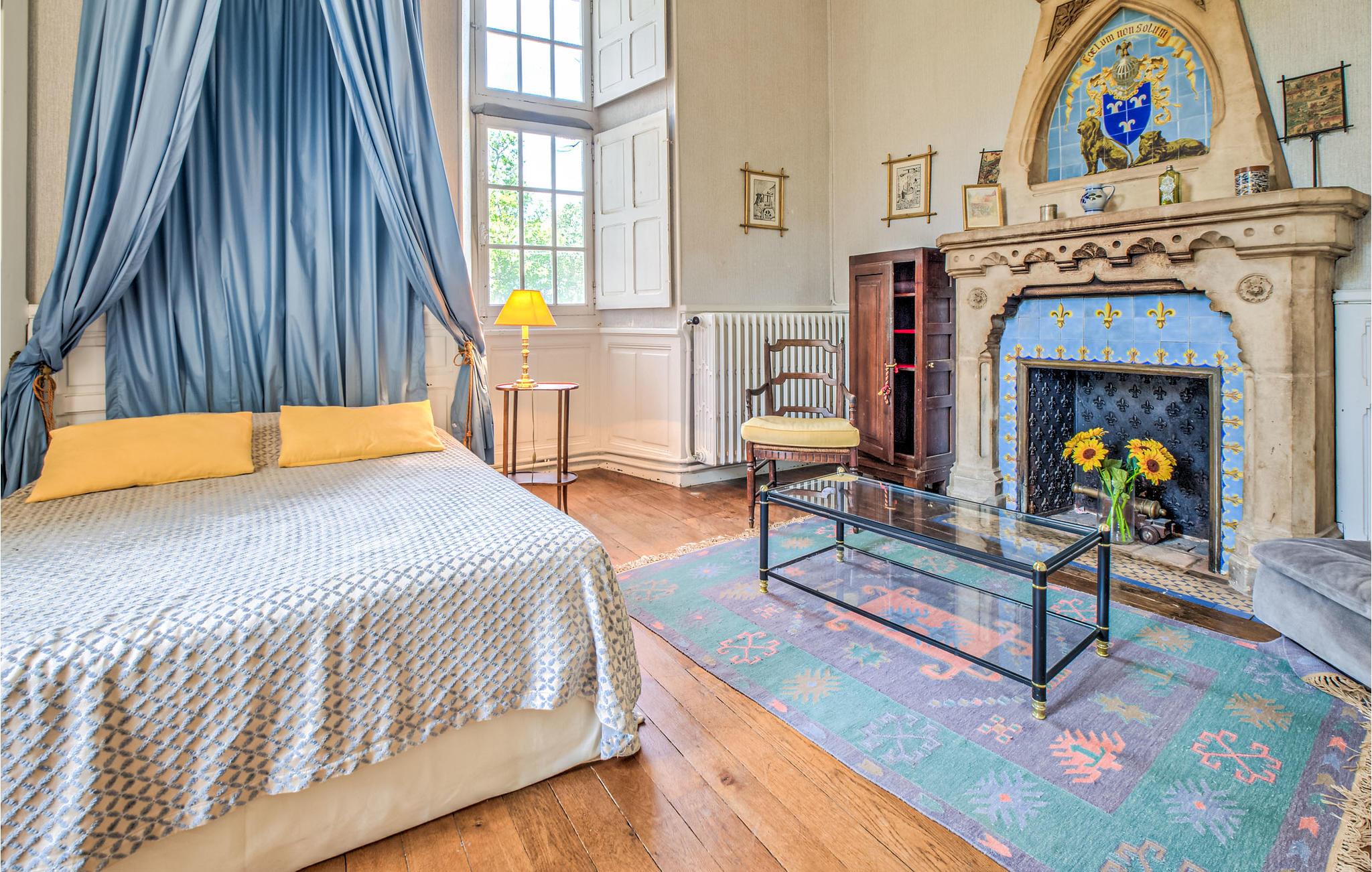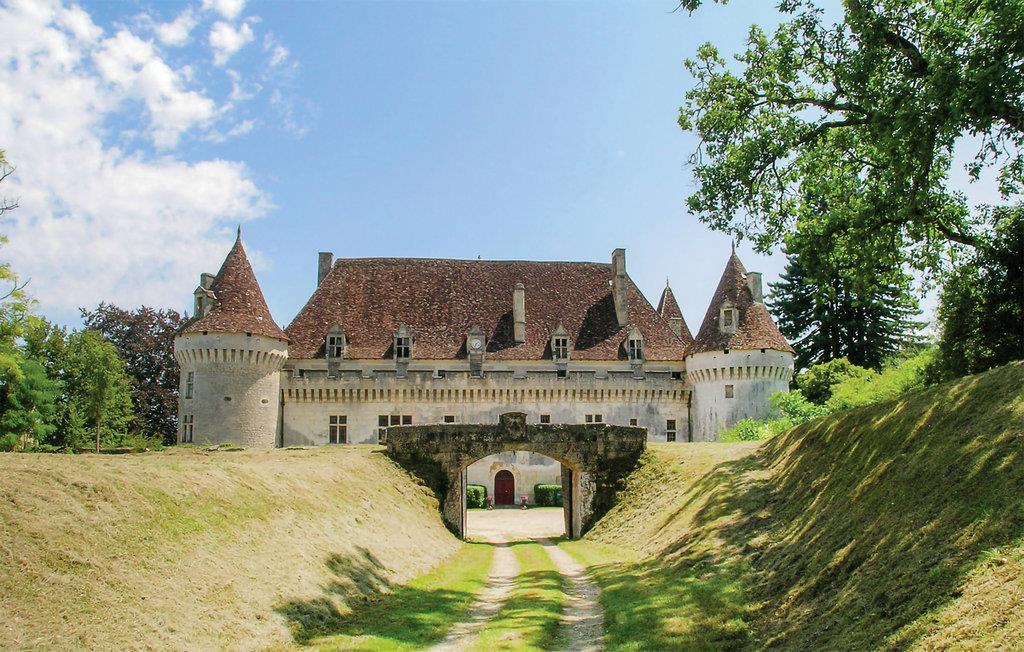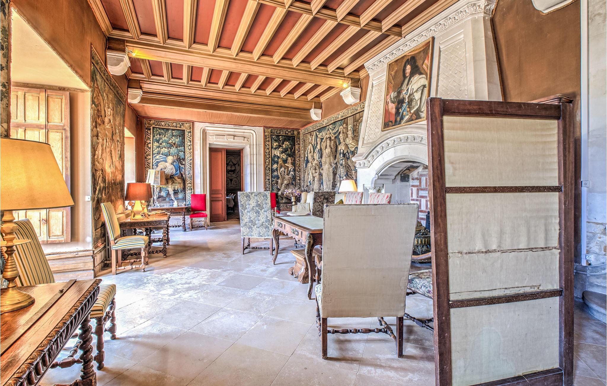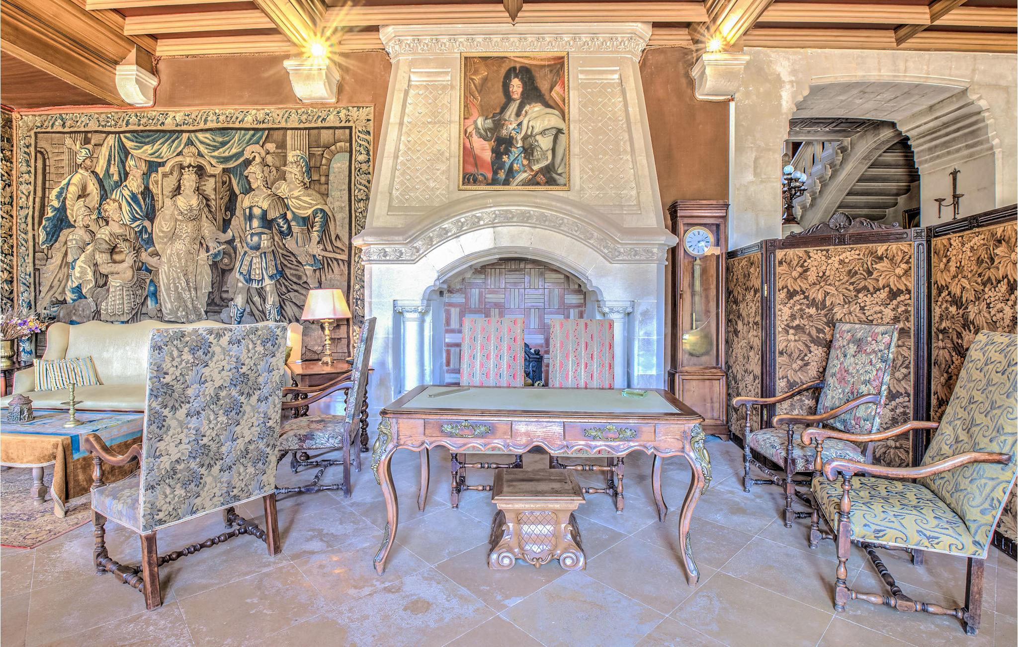 Dette slot fra det 15. århundrede ligger i en kæmpestor park med pool, et orangeri og herlige græsplæner. I har udsigt over det åbne landskab, så I kan se langt. Fra terrassen kommer I ind i hall’en med gamle gobeliner og historiske malerier på væggene, her passer kaminen af sten også godt. Køkkenet er historisk vigtigt og har derfor bevaret i sit oprindelige udtryk. Her kan I bo som kongelige gjorde, i en fjern fortid - men med nutidens komfort. Fra spisestuen er der en dobbeltdør ud til terrassen. Der er to trin op til indgangen. Barnestol og -seng på forespørgsel.