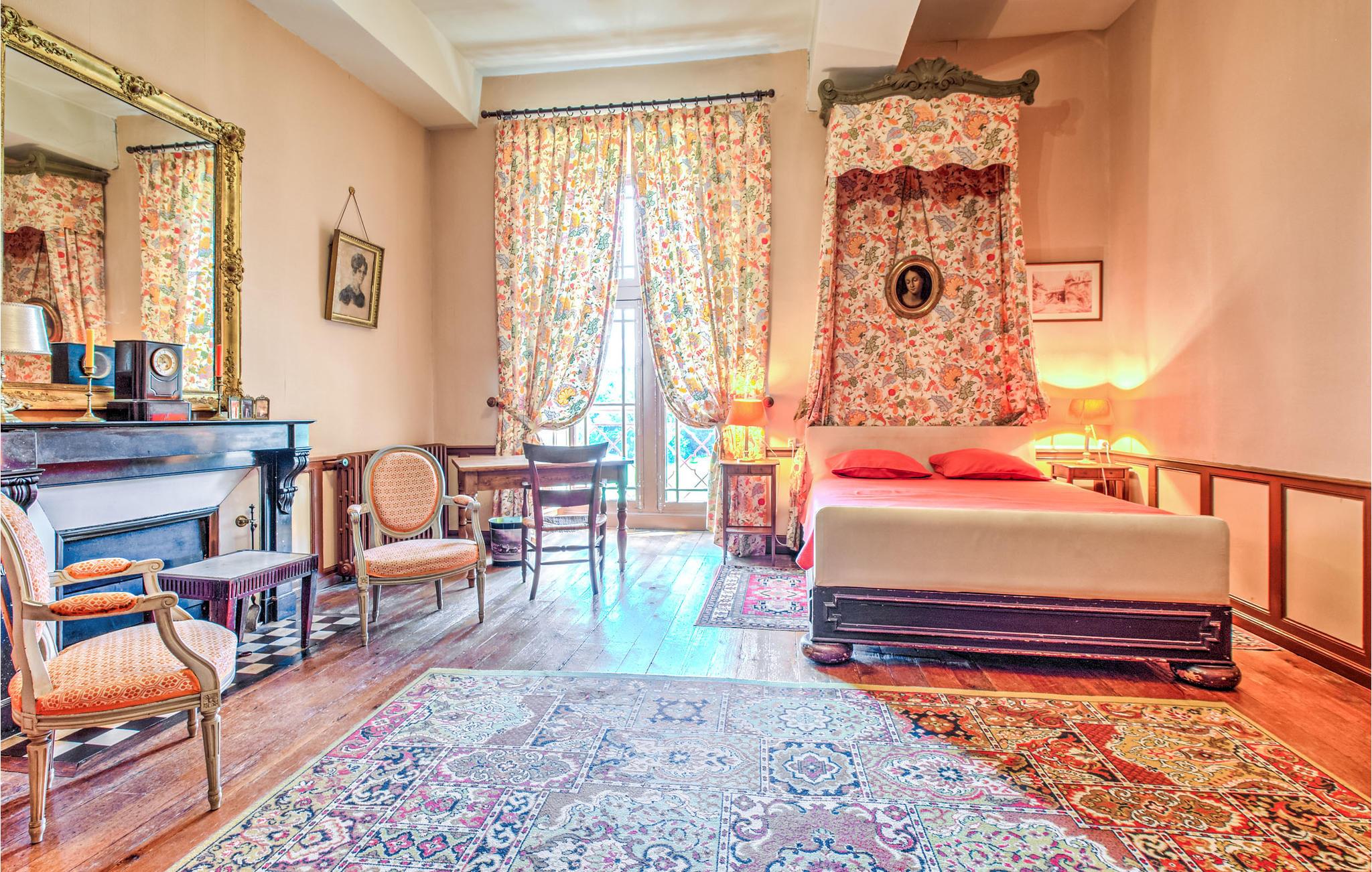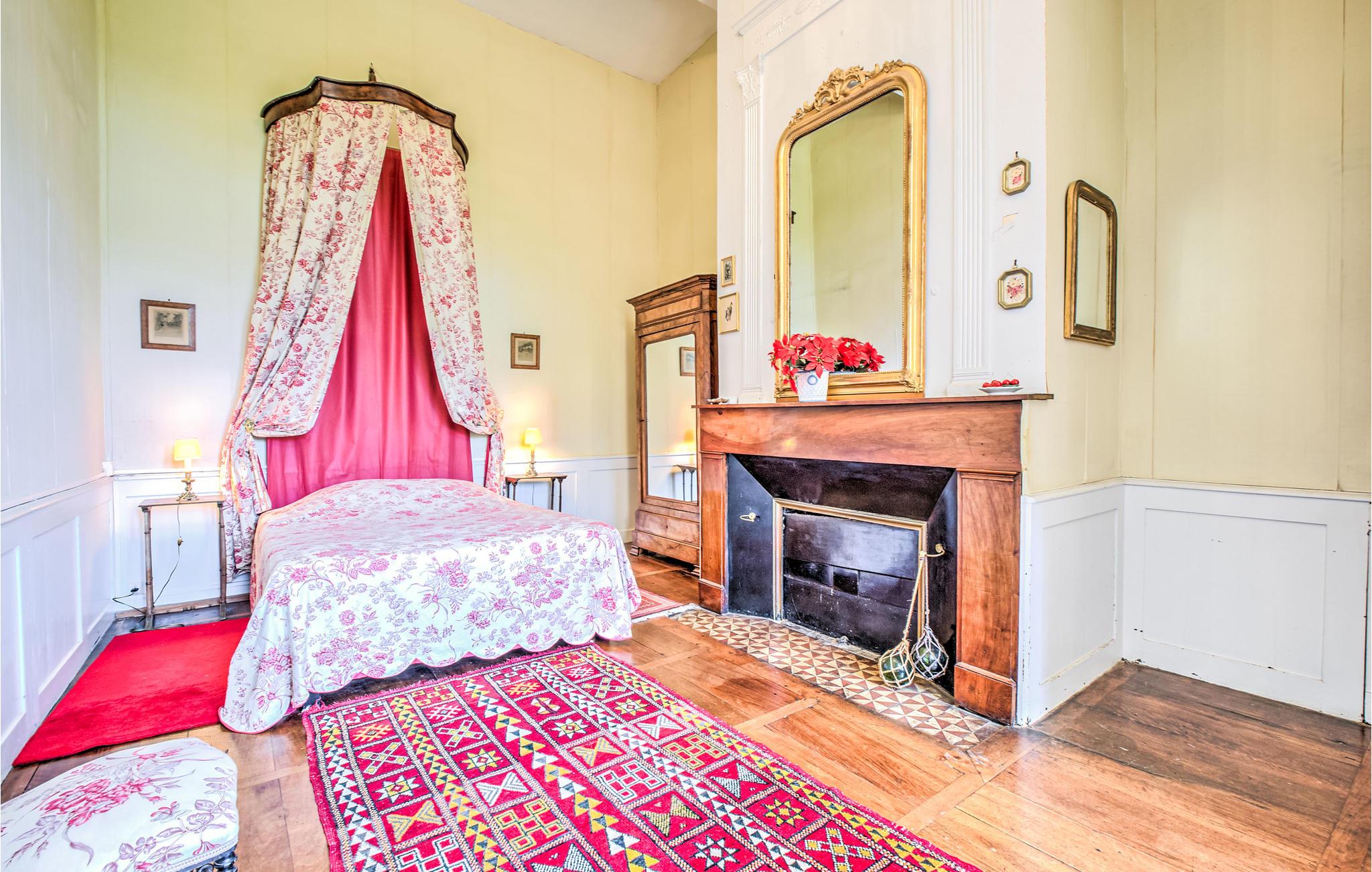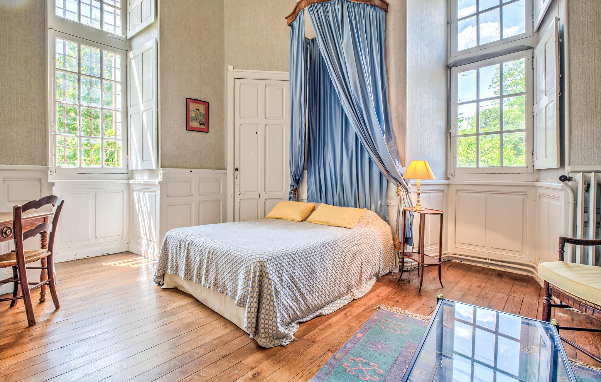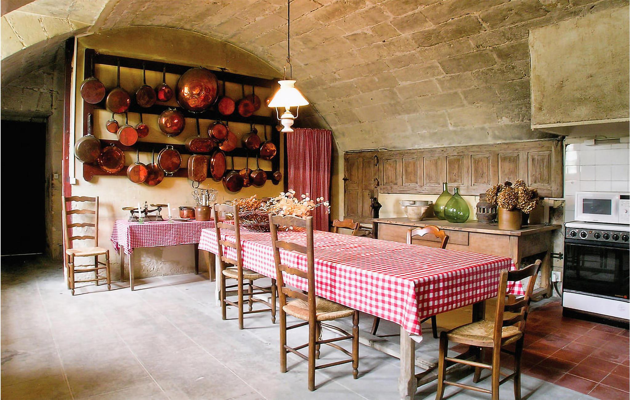 Dette slot fra det 15. århundrede ligger i en kæmpestor park med pool, et orangeri og herlige græsplæner. I har udsigt over det åbne landskab, så I kan se langt. Fra terrassen kommer I ind i hall’en med gamle gobeliner og historiske malerier på væggene, her passer kaminen af sten også godt. Køkkenet er historisk vigtigt og har derfor bevaret i sit oprindelige udtryk. Her kan I bo som kongelige gjorde, i en fjern fortid - men med nutidens komfort. Fra spisestuen er der en dobbeltdør ud til terrassen. Der er to trin op til indgangen. Barnestol og -seng på forespørgsel.