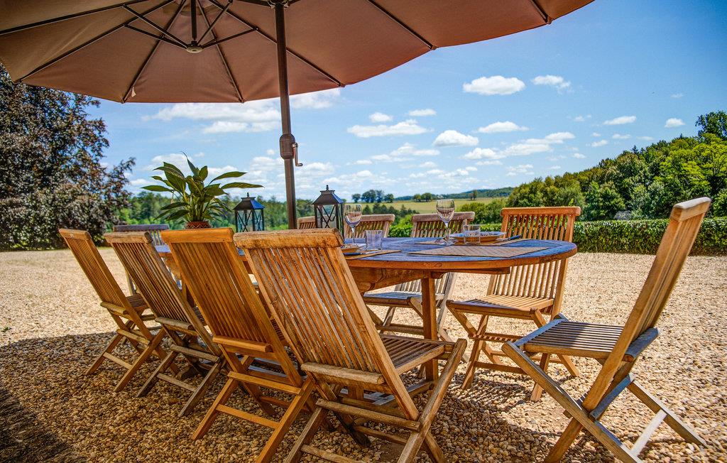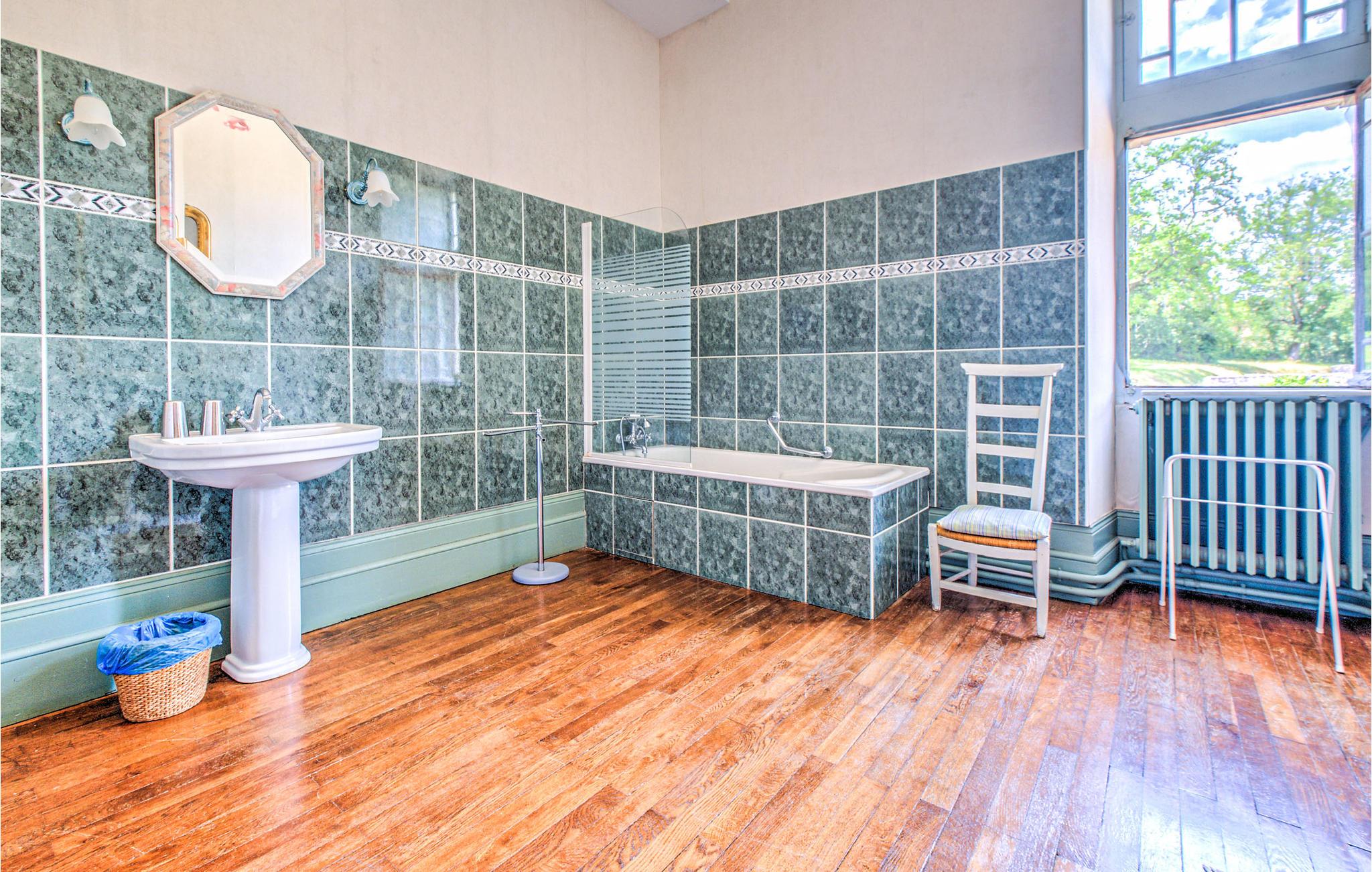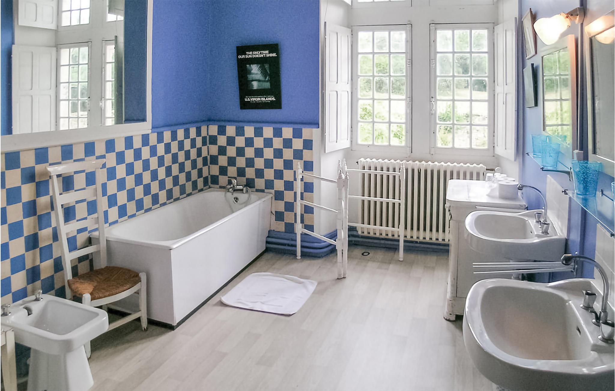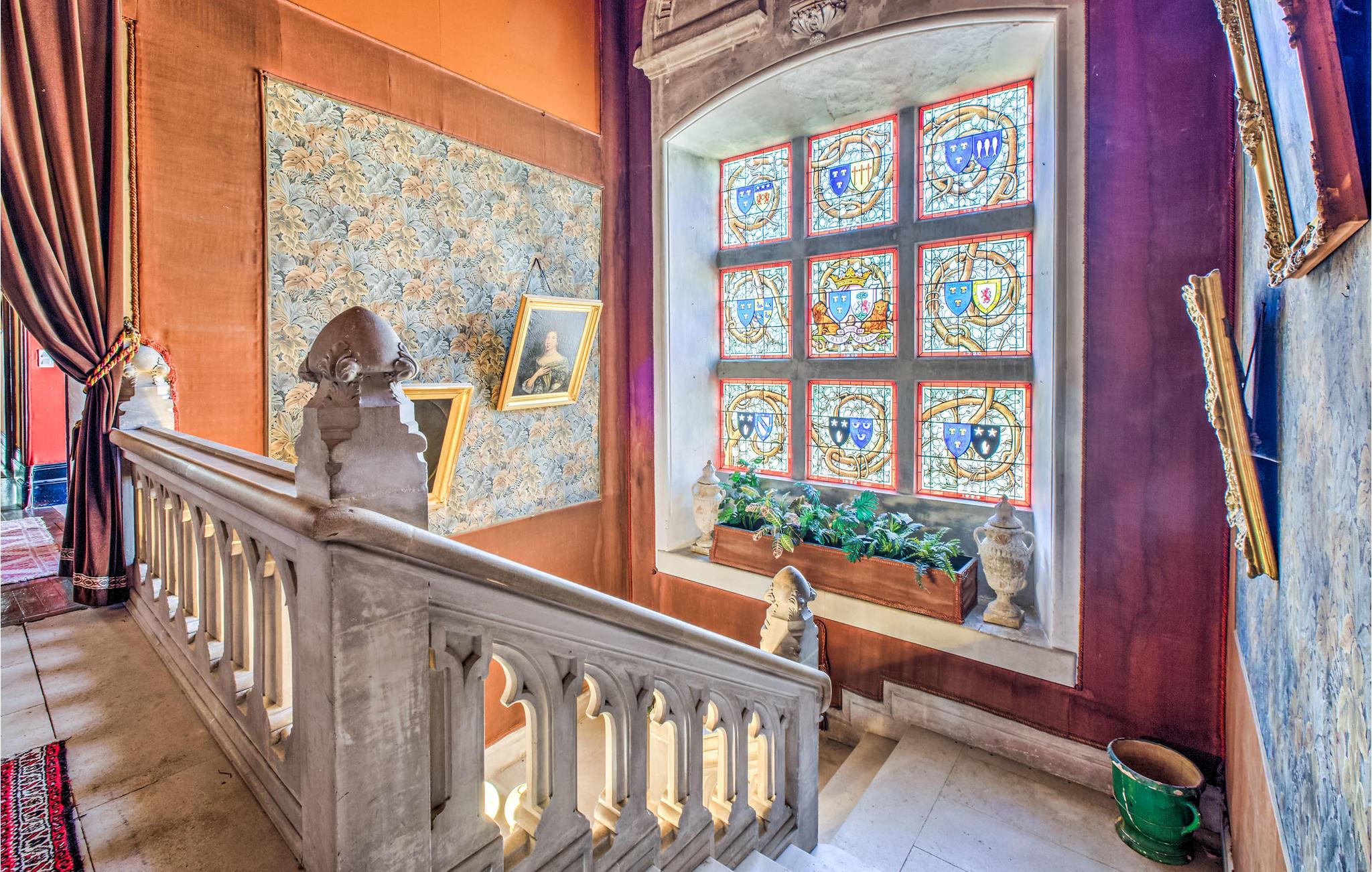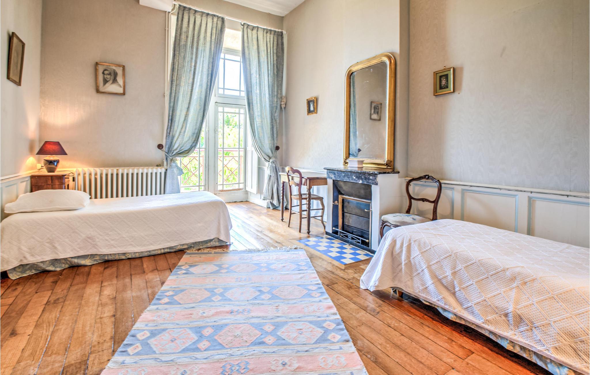 Dette slot fra det 15. århundrede ligger i en kæmpestor park med pool, et orangeri og herlige græsplæner. I har udsigt over det åbne landskab, så I kan se langt. Fra terrassen kommer I ind i hall’en med gamle gobeliner og historiske malerier på væggene, her passer kaminen af sten også godt. Køkkenet er historisk vigtigt og har derfor bevaret i sit oprindelige udtryk. Her kan I bo som kongelige gjorde, i en fjern fortid - men med nutidens komfort. Fra spisestuen er der en dobbeltdør ud til terrassen. Der er to trin op til indgangen. Barnestol og -seng på forespørgsel.