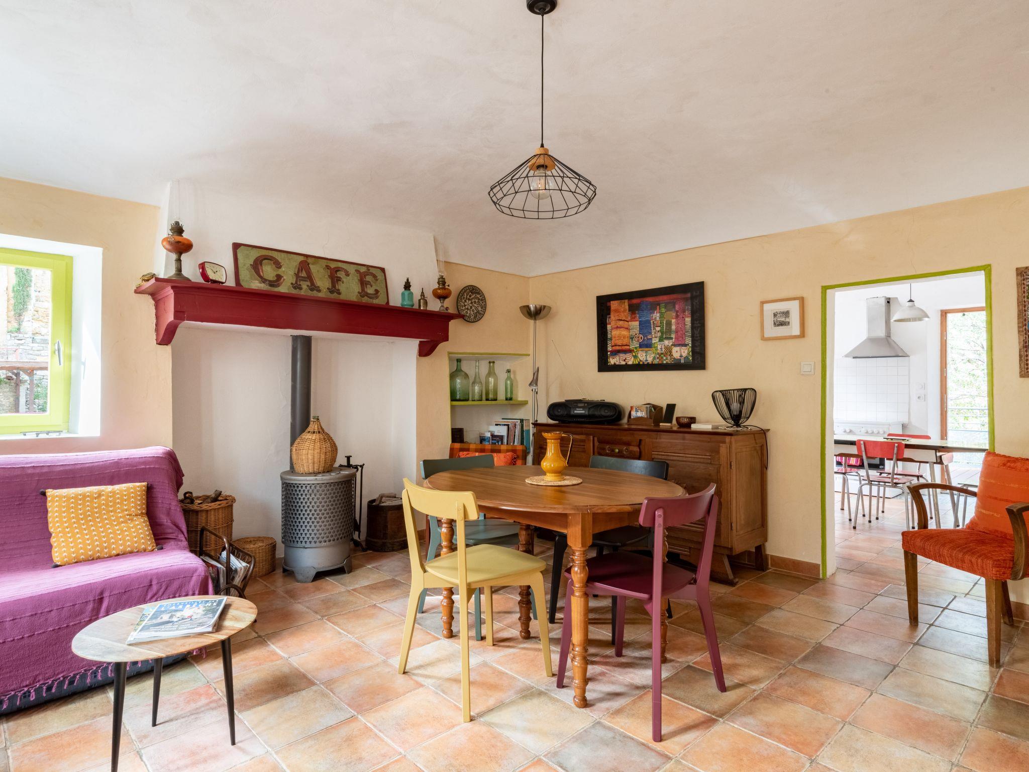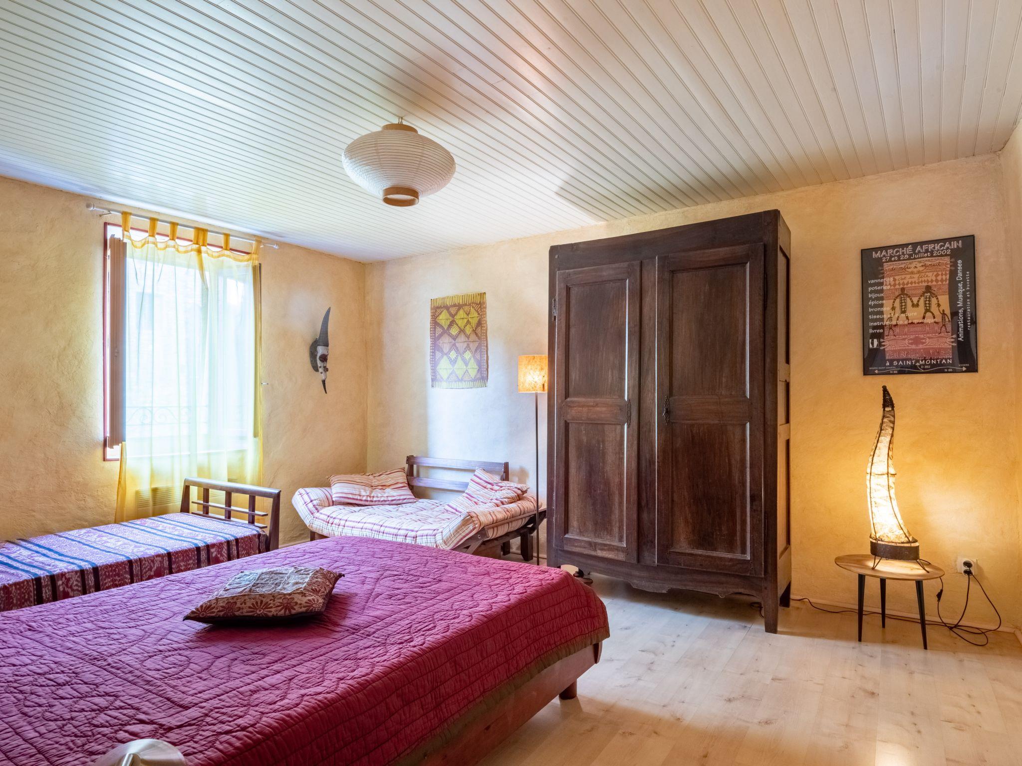 "La Maison du Figuier", 3-room house 85 m2 on 2 levels. Renovated, beautiful and cosy furnishings: living/dining room with open-hearth fireplace (only for decoration), dining table and TV (flat screen), radio, CD-player, DVD and fan. Exit to the terrace. Kitchen (1 hot plate, oven, dishwasher, 3 gas rings, toaster, kettle, microwave, freezer, electric coffee machine) with dining table. Shower, sep. WC. Electric heating. Upper floor: (steep stair), 1 room with 1 bed (90 cm, length 190 cm), 1 french bed (140 cm, length 190 cm). 1 room with 1 french bed (140 cm, length 190 cm). Parquet floors. Terrace 14 m2, north facing position and west facing position. Terrace furniture, electric barbecue, deck chairs (4). Beautiful view of the countryside and Saint Montan. Facilities: washing machine. Internet (WiFi, free). Maximum 1 pet/ dog allowed. 00705007-27019-0137