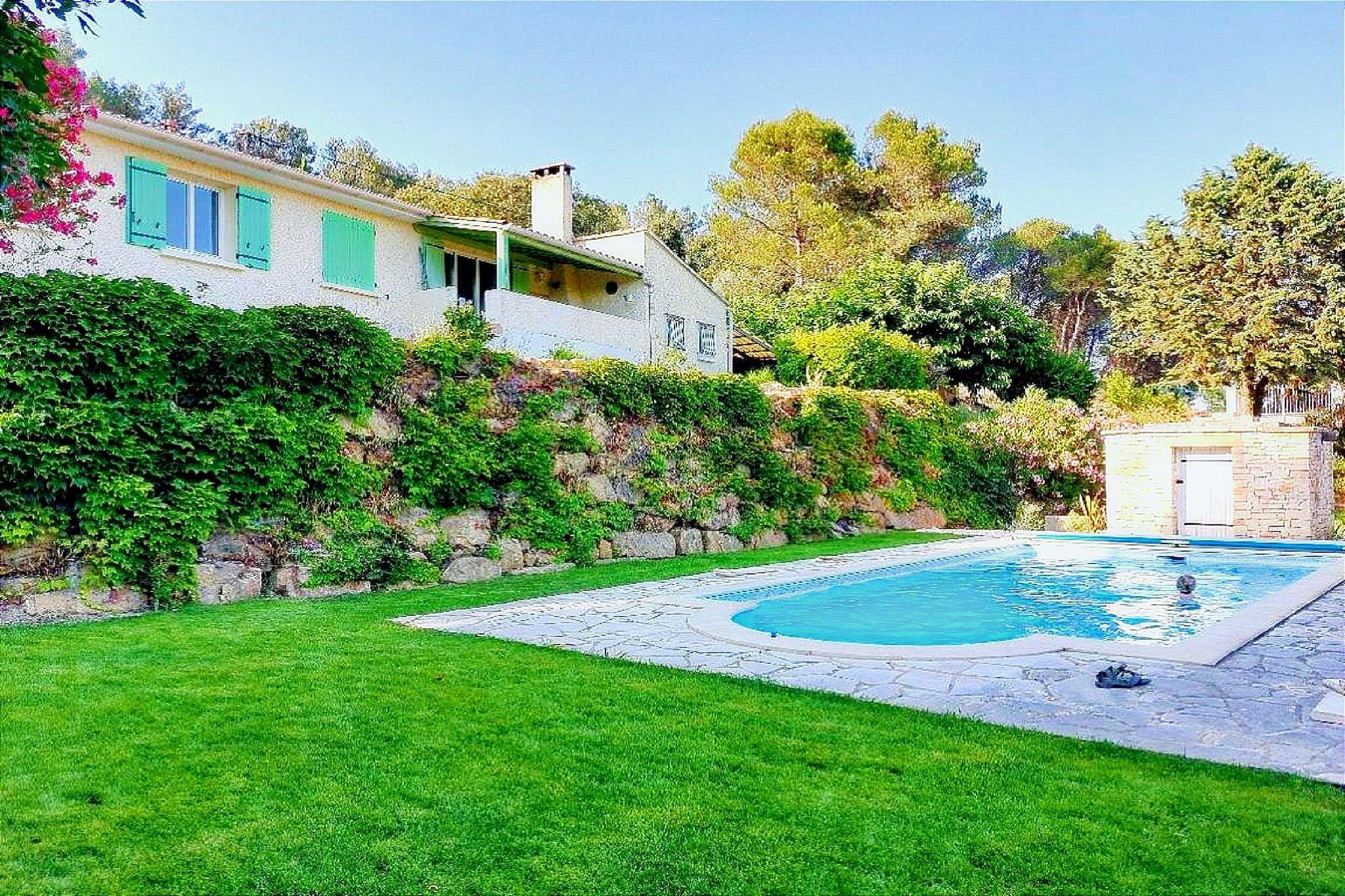 Stueetage: (Køkken(elkedel, komfur, kaffemaskine, ovn, mikrobølgeovn, opvaskemaskine , køle-fryseskab), stue / spisestue(Fjernsyn, spisebord, pejs, sofahjørne), soveværelse(dobbeltseng(180 x 200 cm)), soveværelse(dobbeltseng(140 x 200 cm)), soveværelse(enkeltseng, enkeltseng), soveværelse(køjeseng eller 2 enkeltsenge, køjeseng eller 2 enkeltsenge, køjeseng eller 2 enkeltsenge), badeværelse(bruser, håndvask, toilet), badeværelse(badekar, bruser, vaskemaskine), toilet) tremmeseng, klimaanlæg, terrasse(overdækket), terrasse, have(indhegnet), havemøbler, grill, parkering, swimmingpool(privat, vand alarm, termotæppe til swimmingpool, opened from 1/2 May upto and including 1/2 Sep), petanquebane, sandkasse, barnestol