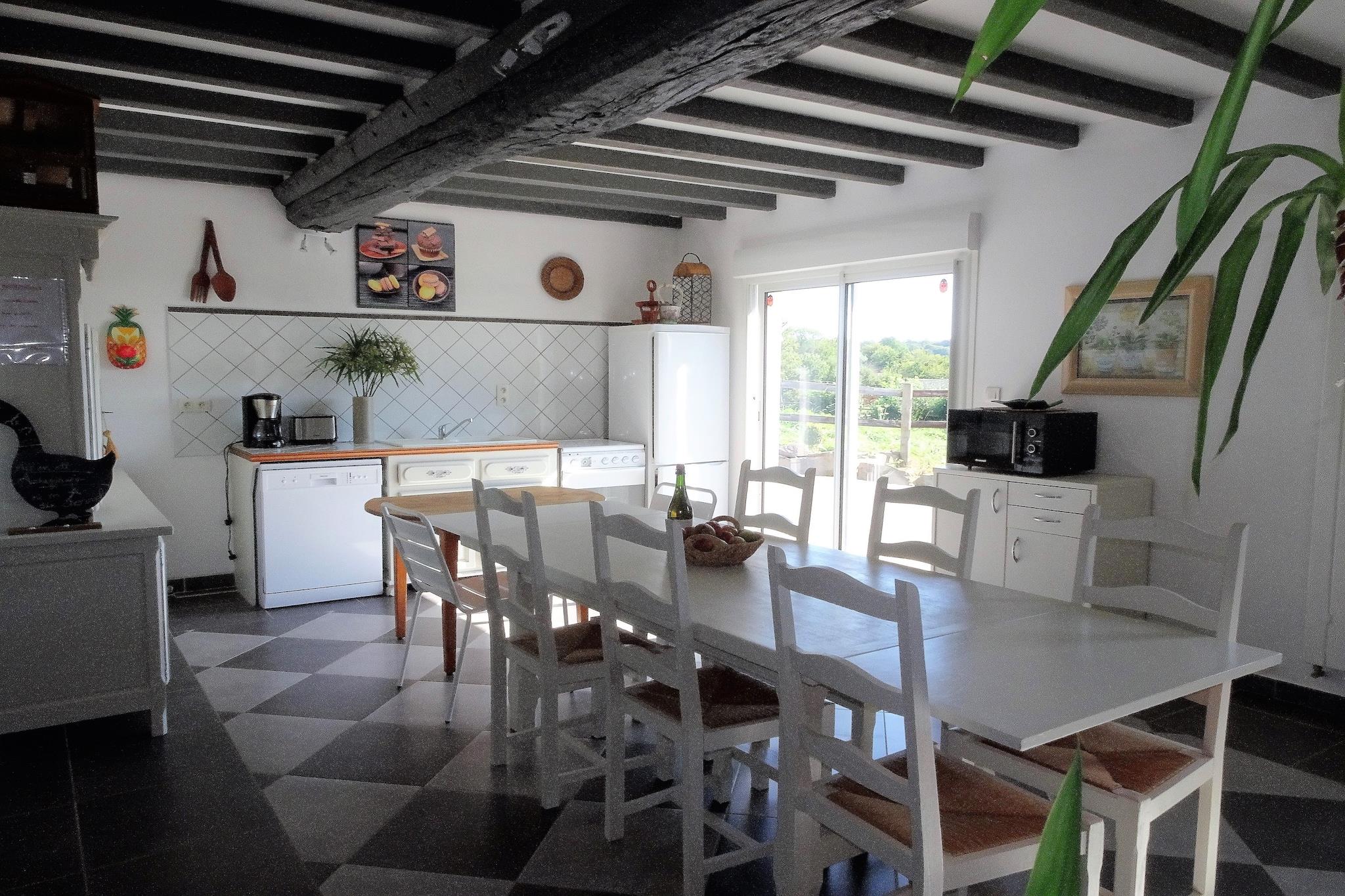 Charmerende, fuldstændig renoveret landejendom nær Mont St. Michel, beliggende i en rolig landsby. Dejlig fred og ro på landet omgivet af dejlige dyr, der hører til ejendommen: heste, æsler, ponyer. På terrassen er der grill og havemøbler, ideelt til solrige dage eller kølige aftener. Rummeligt og hyggeligt interiør med stenvægge og åbne bjælkelofter. Sommerhuset er funktionelt og meget velholdt. Den smukke, lyse stue-spisestue, den ombyggede mezzanin samt fire soveværelser og 2 badeværelser byder på masser af plads til en stor familie eller lille gruppe. Talrige vandrestier gennem skove og enge, som også er tilgængelige for cykler, omgiver feriehuset. Udlejer udlejer også cykler til dagsture mod et gebyr, der betales lokalt.