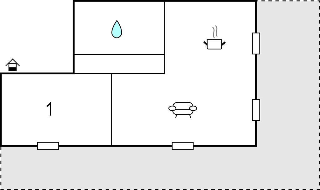 Indenfor venter jer en komfortabel stue, et integreret køkken og et rummeligt soveværelse, der åbner ud mod de grønne udendørsarealer. Åbn dørene og lad blikket vandre over de vidtstrakte, grønne omgivelser.