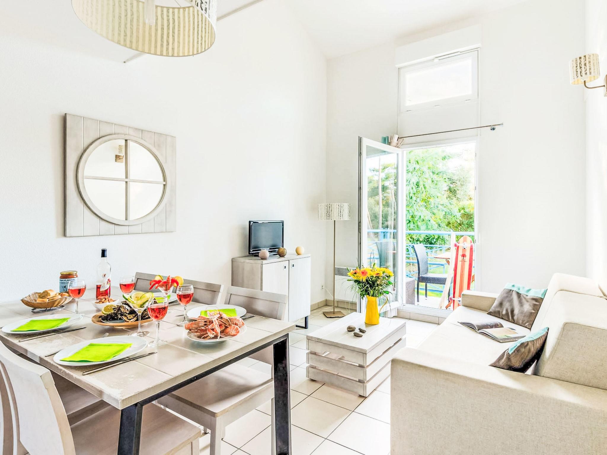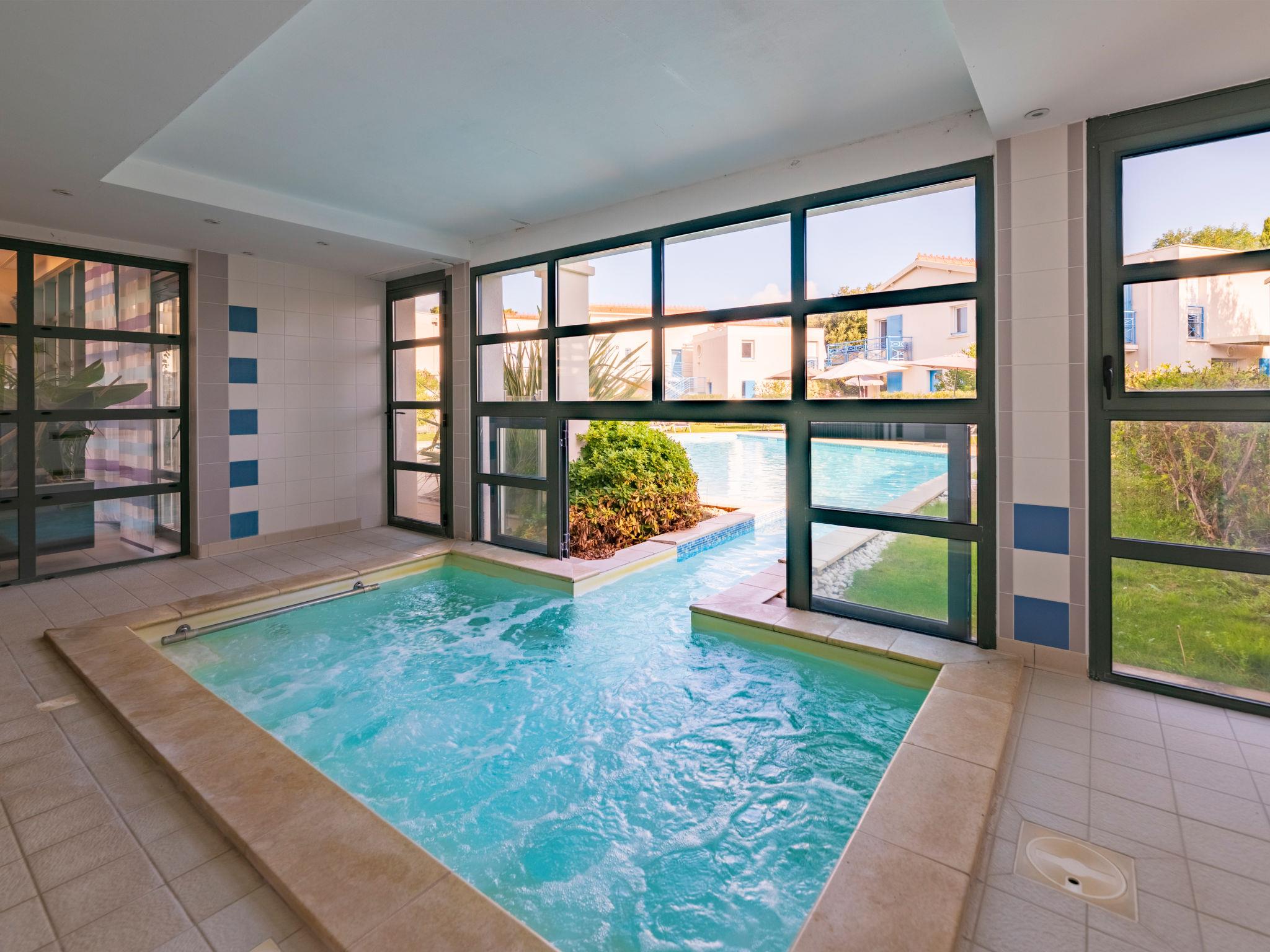 Resort "Les Carrelets". 7 houses in the resort. 71 apartments in the residence. 2.5 km from the centre of Saint Palais-sur-Mer, 700 m from the sea. For shared use: property, swimming pool heated (9 x 4 m, depth 75 - 130 cm, seasonal availability: 15.Apr. - 15.Sep.). Hot tub, boccia, children's playground. In the complex: reception, sauna (extra). Hot tub, washing machine, tumble dryer (for shared use, extra). Parking (limited number of spaces). Shop 100 m, supermarket 2.5 km, bus stop "Auture" 280 m, sandy beach 1 km, rocky beach 700 m. Please note: the photograph shows a typical example. The holiday properties may differ in living space, floorplan, equipment and furnishing.