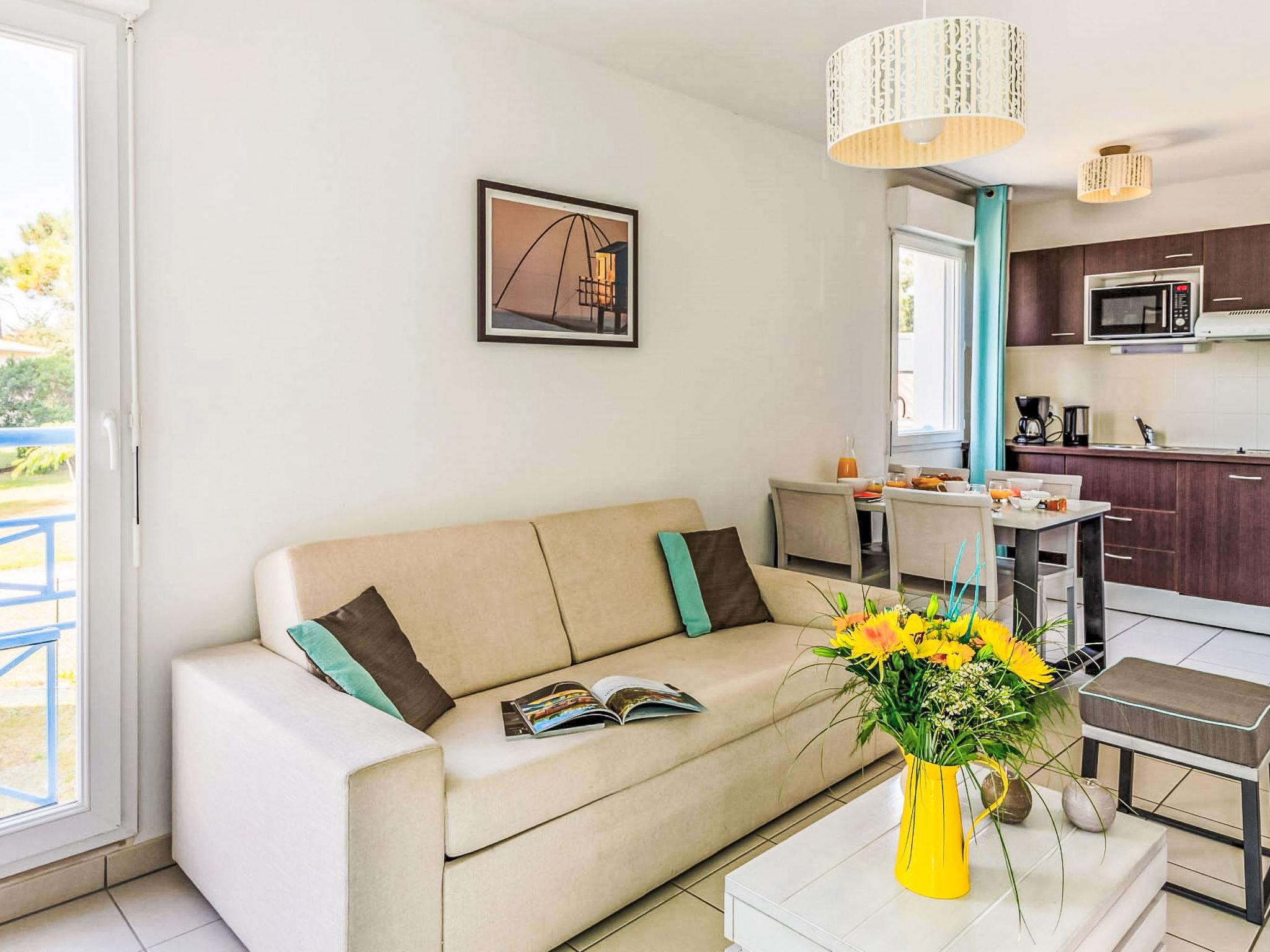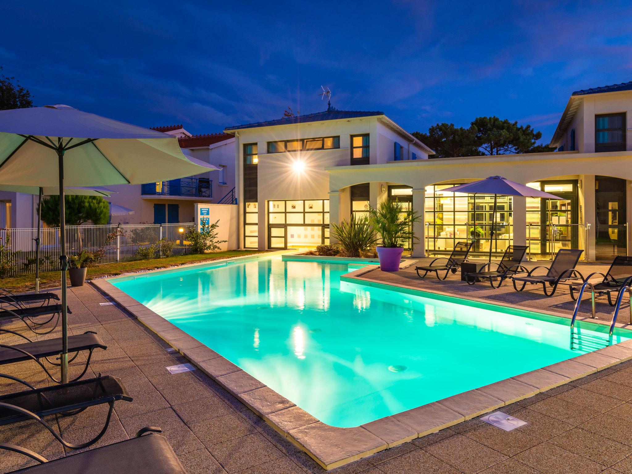 Resort "Les Carrelets". 7 houses in the resort. 71 apartments in the residence. 2.5 km from the centre of Saint Palais-sur-Mer, 700 m from the sea. For shared use: property, swimming pool heated (9 x 4 m, depth 75 - 130 cm, seasonal availability: 15.Apr. - 15.Sep.). Hot tub, boccia, children's playground. In the complex: reception, sauna (extra). Hot tub, washing machine, tumble dryer (for shared use, extra). Parking (limited number of spaces). Shop 100 m, supermarket 2.5 km, bus stop "Auture" 280 m, sandy beach 1 km, rocky beach 700 m. Please note: the photograph shows a typical example. The holiday properties may differ in living space, floorplan, equipment and furnishing.