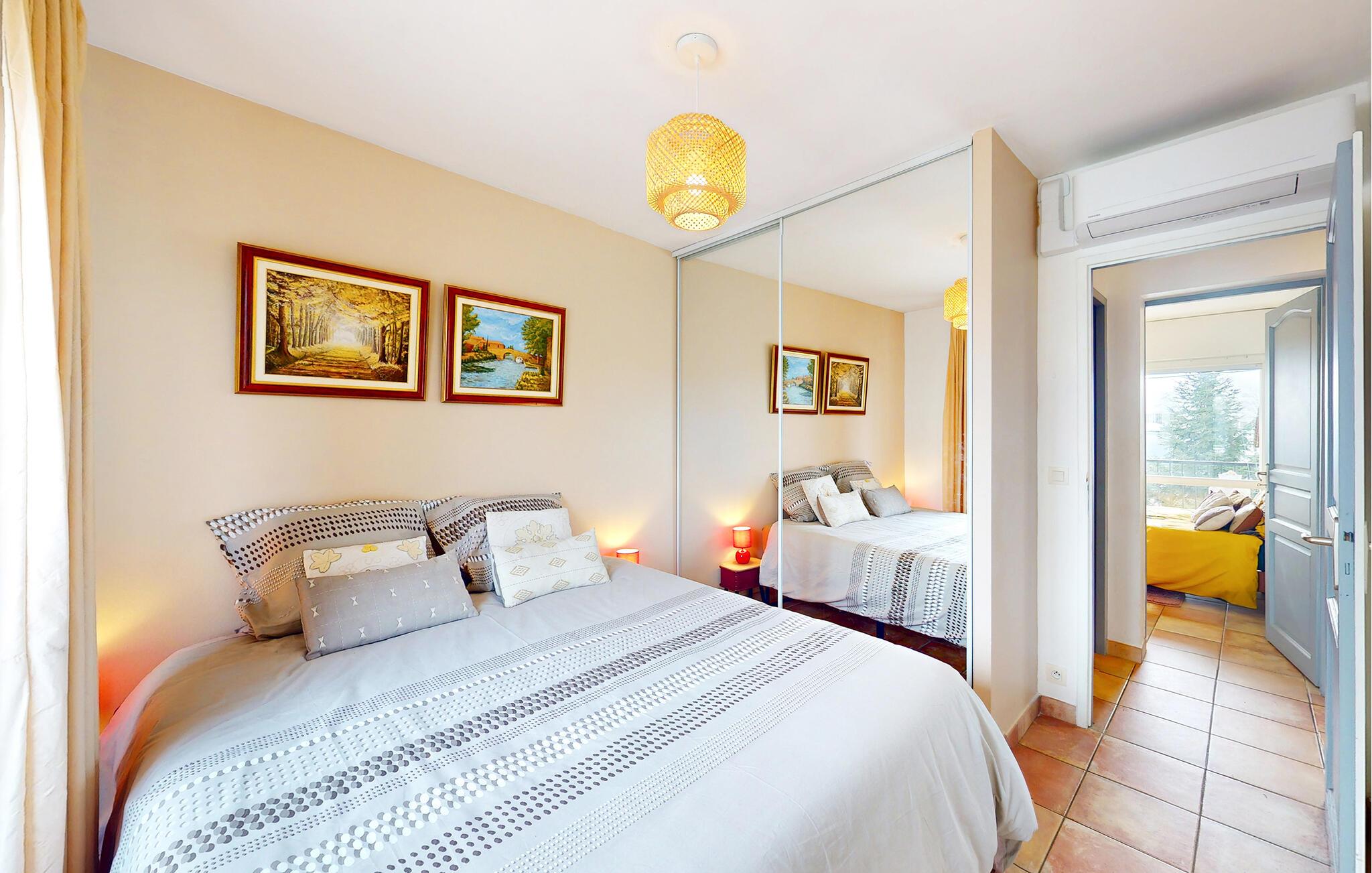 Denne lyse ferielejlighed giver jer et hyggeligt tilflugtssted, hvorfra I kan opdage de forskellige seværdigheder omkring Saint-Paul-lès-Dax. Tilbered jeres favoritmåltider i det moderne køkken og planlæg jeres aktiviteter i den indbydende spiseplads. Efter en begivenhedsrig dag lokker den komfortable sofa jer til at nyde harmoniske læsetimer eller en selskabelig spilleaften med familien.