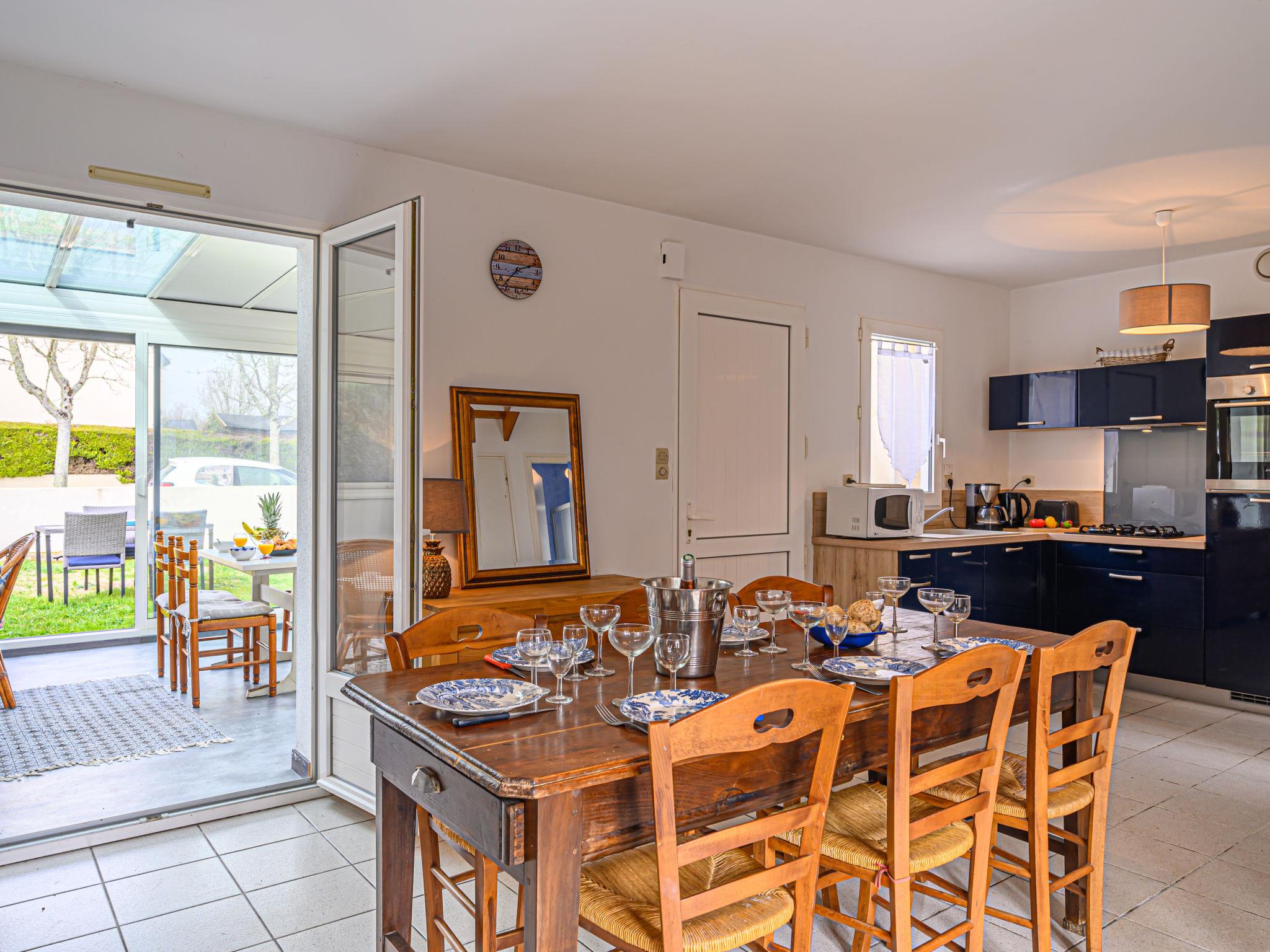 Comfortable single-family house "L'Armoricaine", 2 storeys. On the outskirts, 2.3 km from the centre, 900 m from the sea, from the beach. Private: garden 300 m2 (fenced), parking on the premises. Grocery 2.3 km, restaurant 500 m, bar 2.3 km, bakery 2.3 km, café 2.3 km, sandy beach "Men Er Bellec" 900 m. Sports harbour 4 km, golf course (18 hole) 15 m, surf school 7 km, sailing school 900 m, tennis 1 km. Nearby attractions: Port de La Trinité sur Mer 4 km, Alignements de Carnac 7 km, Presqu'île de Quiberon 20 km, Auray 15 km, Vannes 25 km, Lorient 60 km. Hiking paths: Golfe du Morbihan 20 km.