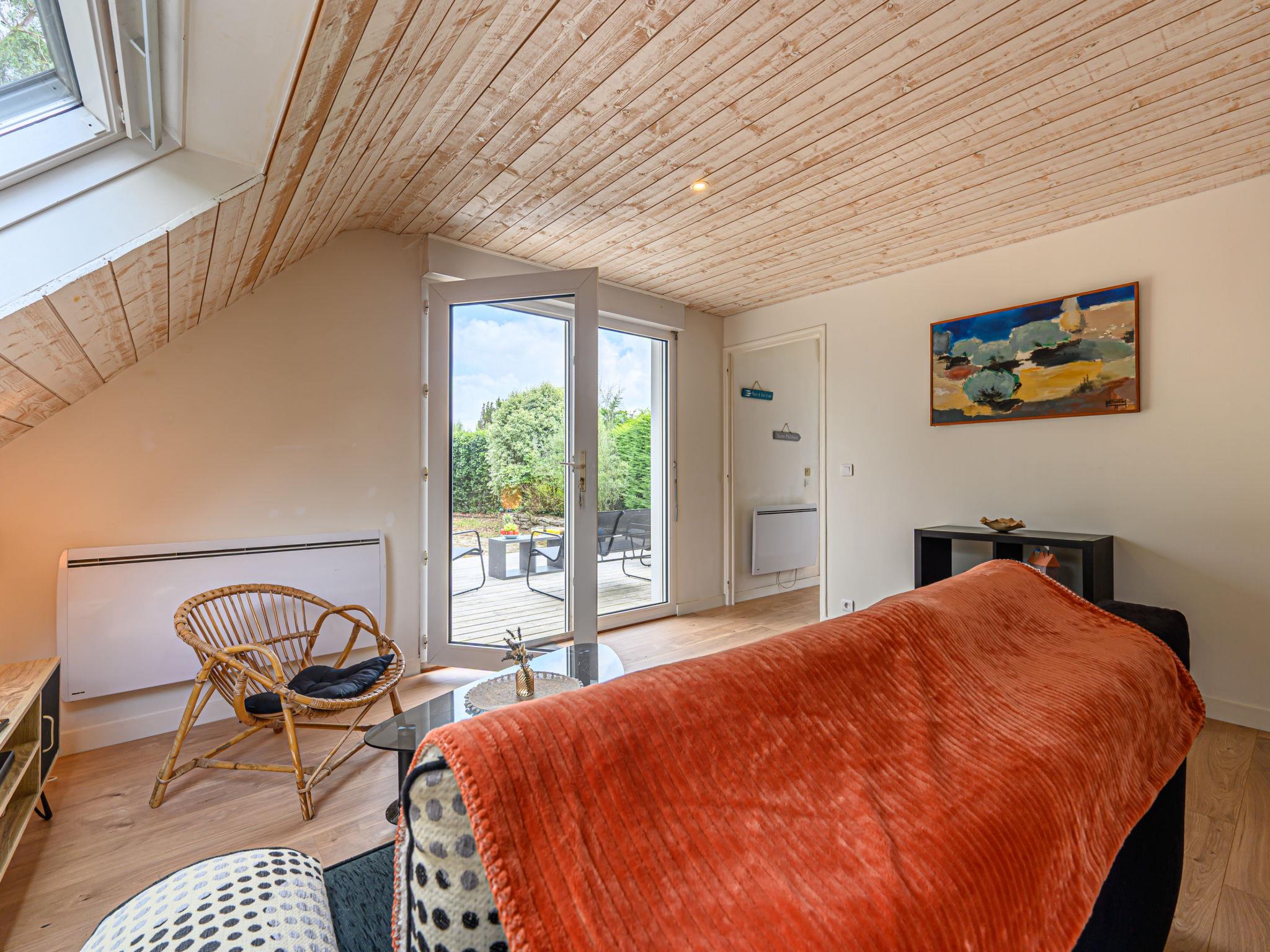 "Bisquine", 2-room apartment 50 m2 on 2 levels, on the ground floor. Comfortable furnishings: living/dining room with 1 sofabed (140 cm, length 190 cm), TV (flat screen). Exit to the terrace. Kitchen (4 hot plates, oven, dishwasher, toaster, kettle, microwave, electric coffee machine). Shower/WC. Electric heating. Upper floor: 1 room with 2 beds (90 cm, length 190 cm), 1 french bed (1 x 140 cm, length 190 cm). Wooden floors. Terrace 15 m2. Terrace furniture. Facilities: washing machine, hair dryer. Internet (WiFi, extra). Parking (2 cars) at the house. Please note: maximum 1 pet/ dog allowed. Smoke alarm. Offer by a private individual according to Art. 155, IV of CGI. 562330001227O