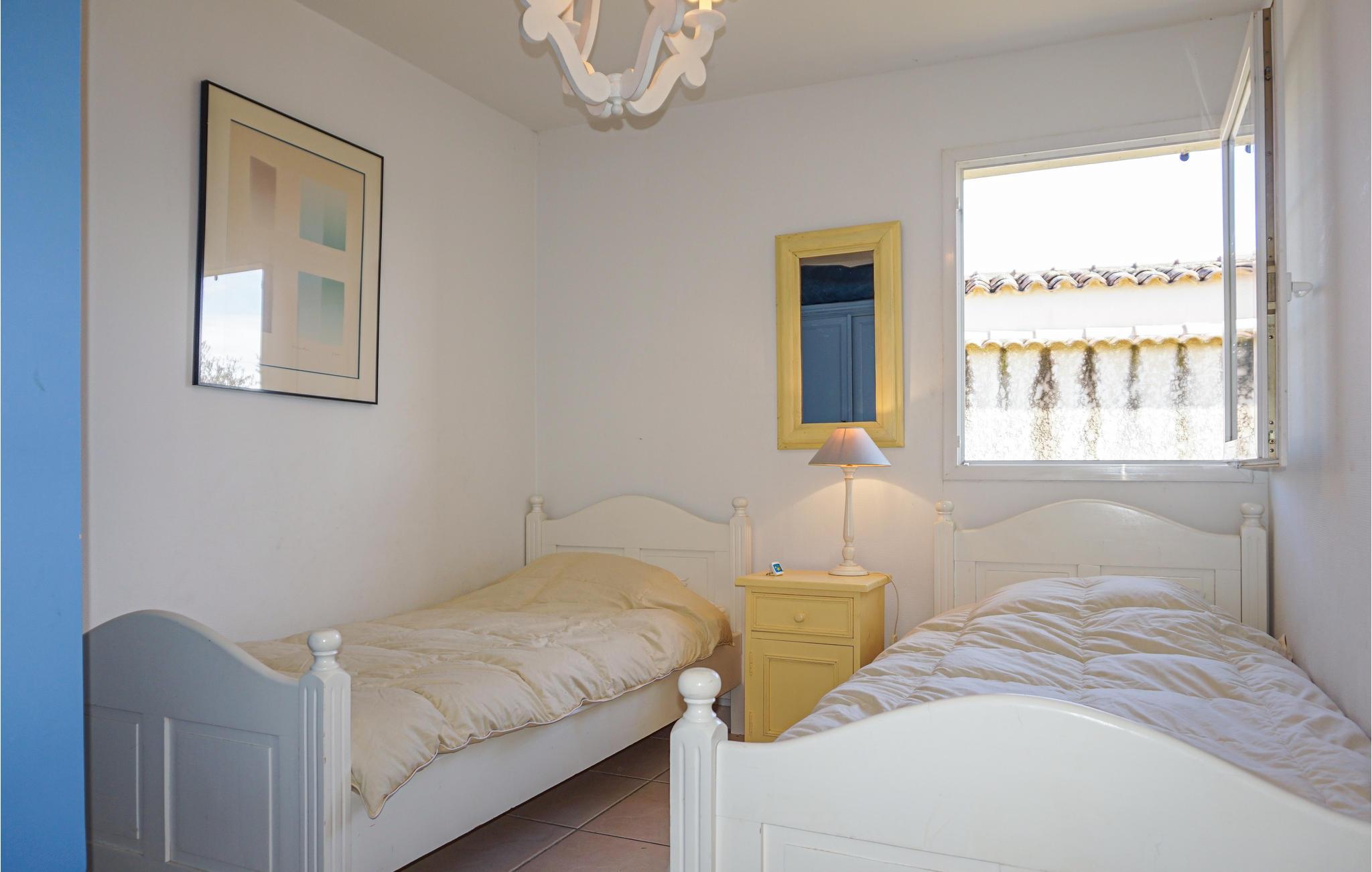 Velkommen til dette hyggelige feriehus, som har en skøn beliggenhed i Saint Pons de Mauchiens. Det er enkelt, moderne og funktionelt indrettet. Med tre soveværelser og to badeværelser kan det rumme op til seks personer. Det ene soveværelse er udstyret med håndvask og bruseniche. Fra stuen med det åbne køkken er der udgang til terrassen.