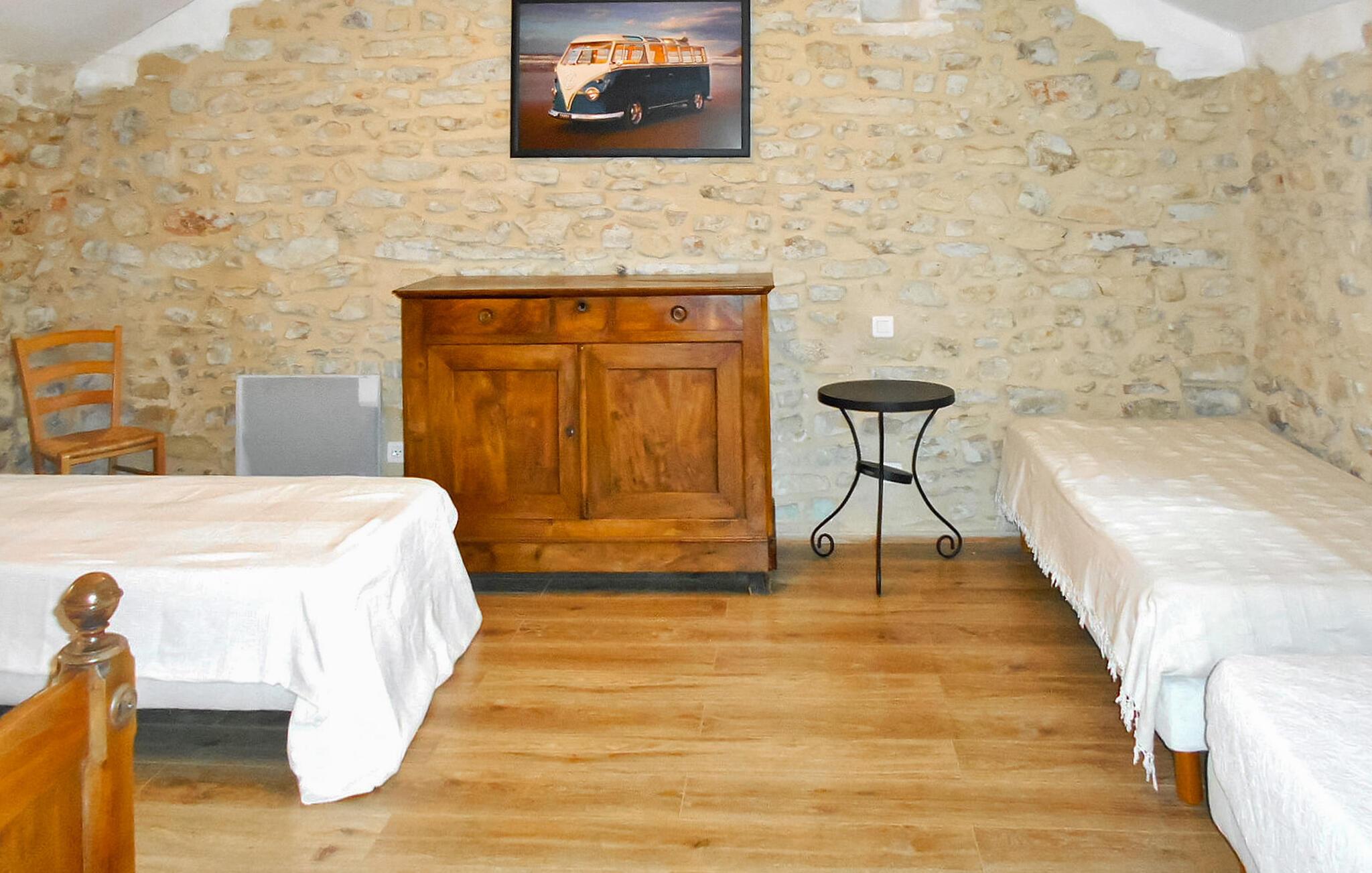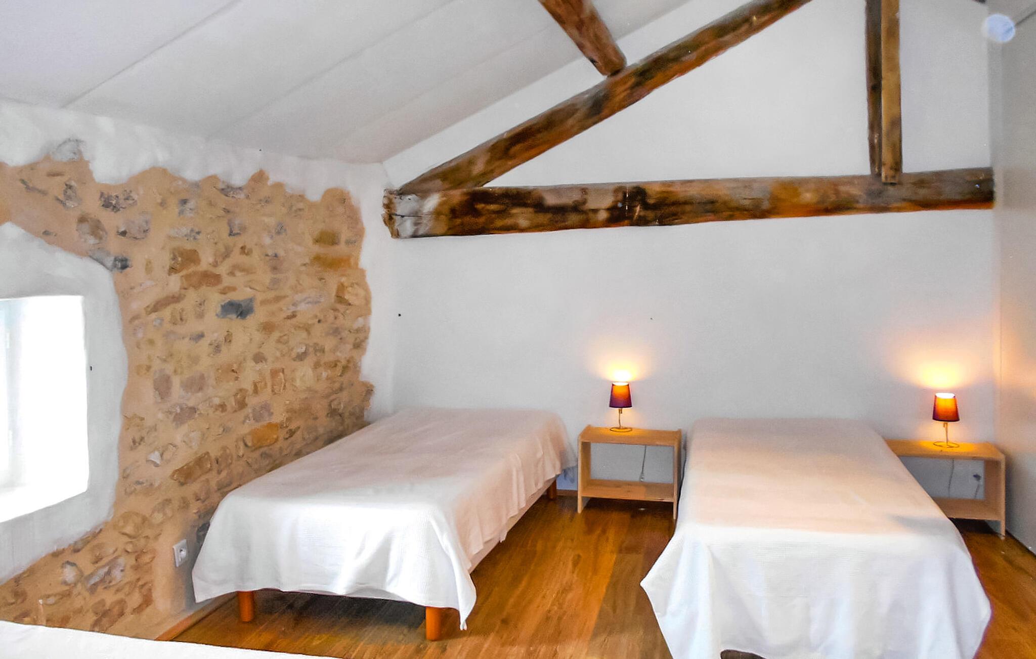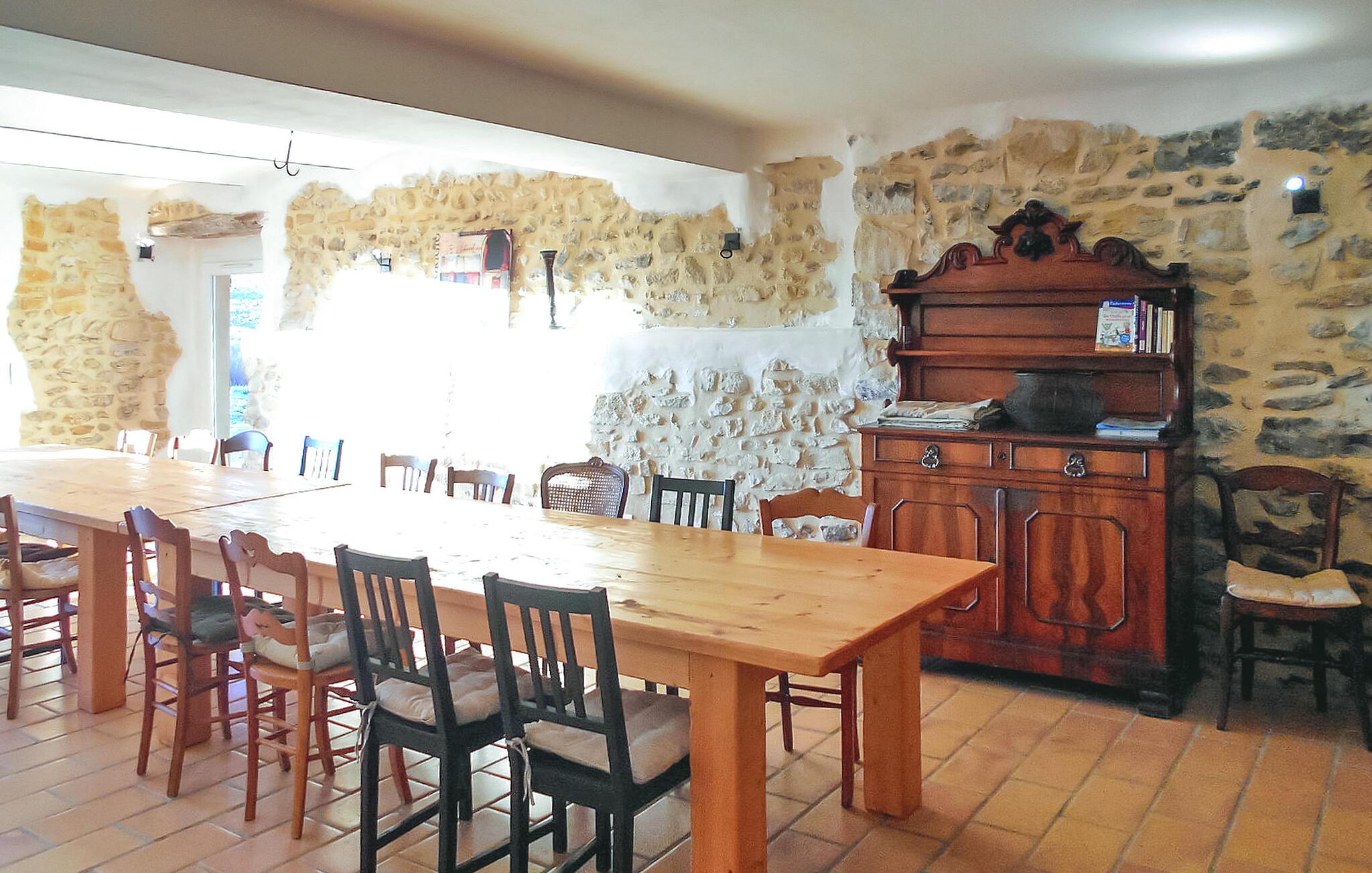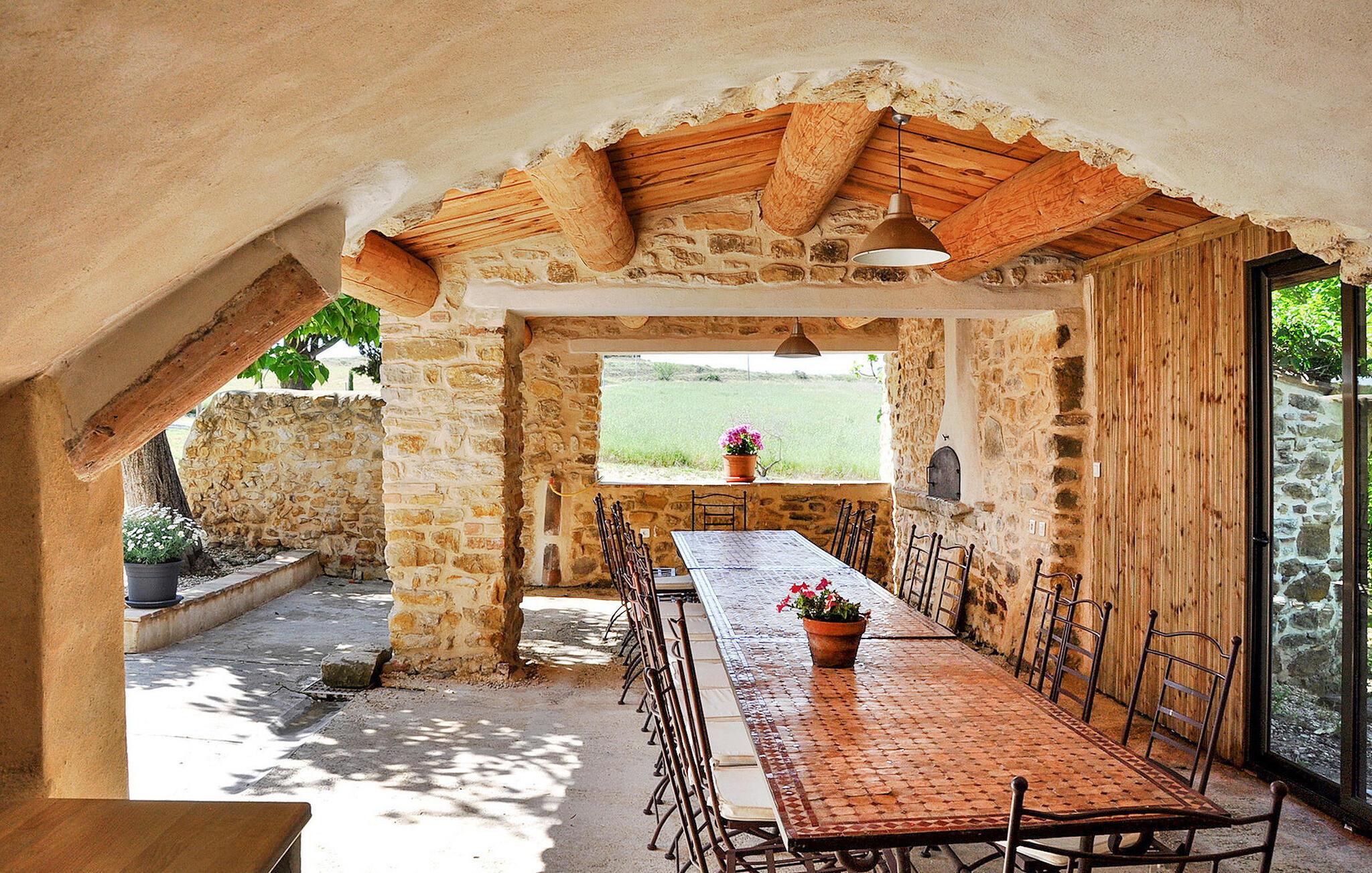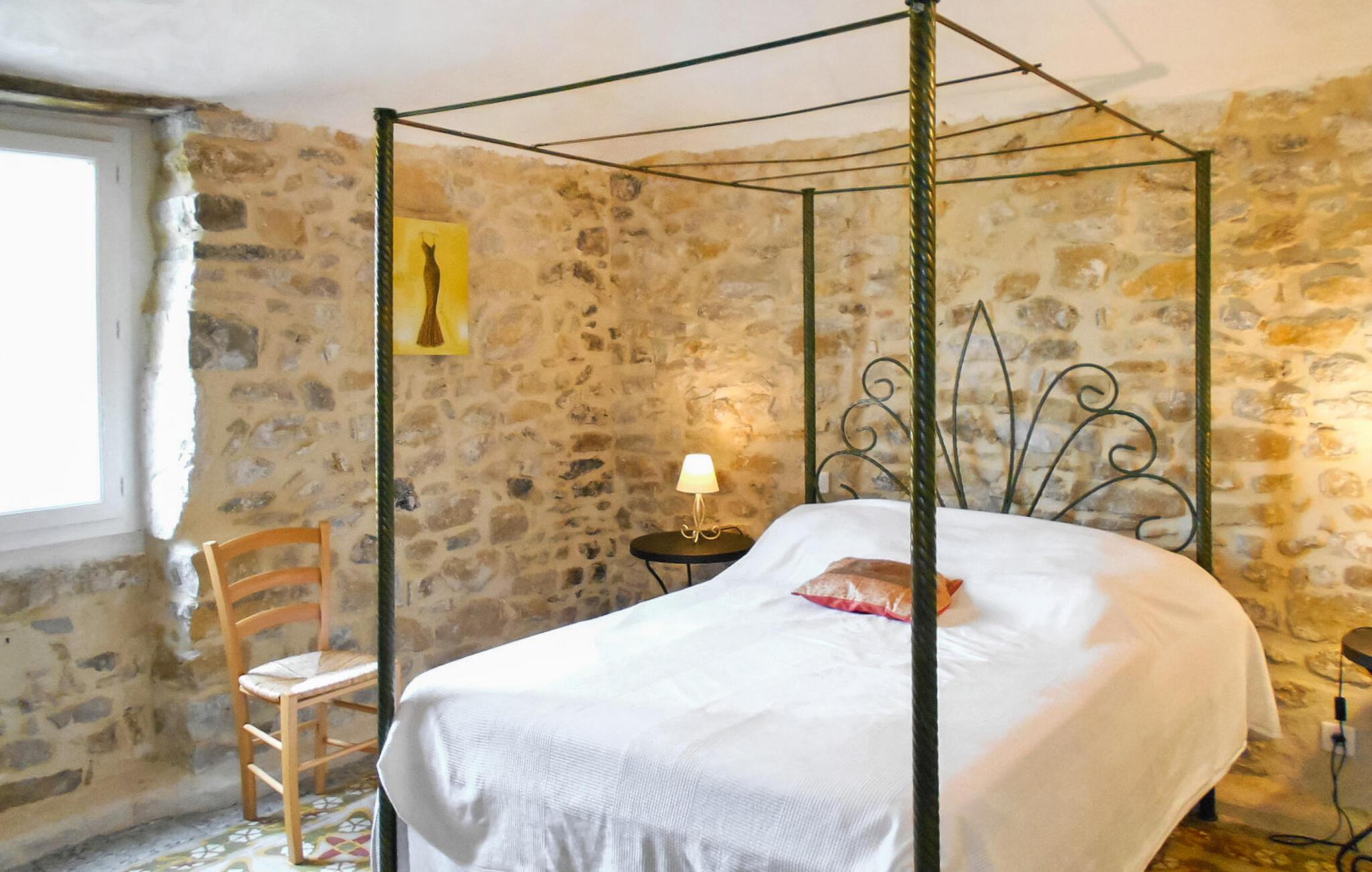 Beliggende i det smukke landskab i det sydlige Ardèche, tilbyder denne rummelige, tidligere gård fra 1700-tallet masser af plads til et socialt samvær med storfamilien eller venner. Lav lækre retter sammen i det moderne køkken og nyd den rustikke stemning ved det lange spisebord. Slap af i den hyggelige stue med en munter spilleaften eller træk jer tilbage til jeres yndlingshjørne med en spændende bog.