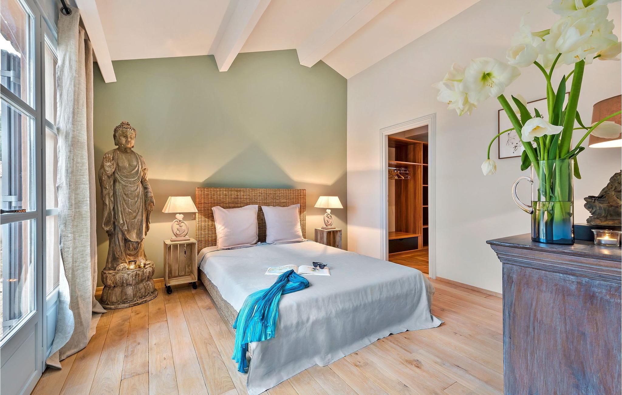 Luksusvillaen i Saint Siffret ligger i nærheden af Uzès og byder gæster velkommen i sit store rum, omgivet af en smukt anlagt have, der huser en opvarmet pool (12 mx 5 m), en beroligende spa og et malerisk springvand. Beliggende på en frodig grøn grund tilbyder denne villa en fredfyldt flugt, kun et stenkast fra den charmerende landsby Saint Siffret og den maleriske by Uzès. Stueetagen af villaen kan prale af forskellige rum, herunder en komfortabel stue med plyssofaer, en spiseplads og et tv/læsestue i kolonistil. Det fuldt udstyrede køkken. To soveværelser ligger på dette niveau, som med fordel sikrer gulvkøling om sommeren og gulvvarme om vinteren. Når du stiger op til første sal, vil du finde tre airconditionerede ensuite soveværelser ovenpå, inklusive et med en stor terrasse med udsigt over haven. Udenfor byder villaen på liggestole og et havesæde i poolhusets skygge, et spisebord under en pergola og et overdækket sommerkøkken. Den private opvarmede pool (12 mx 5 m) er sikret med en elektrisk sikkerhedsafdækning. Derudover tilbyder et overjordisk spabad afslapning; dog tilrådes ekstra opsyn til små børn. Gæster kan drage fordel af yderligere tjenester på stedet, herunder rengøring og levering af mad ved ankomsten, hvilket forbedrer den samlede opholdsoplevelse. Villaen er beliggende i et boligområde omkring 2 km fra landsbyens centrum af Saint Siffret. I Saint Siffret finder du alle de lokale butikker: mad, bageri, restauranter. Mere shopping kan findes i Uzès eller Saint Quentin la Poterie.