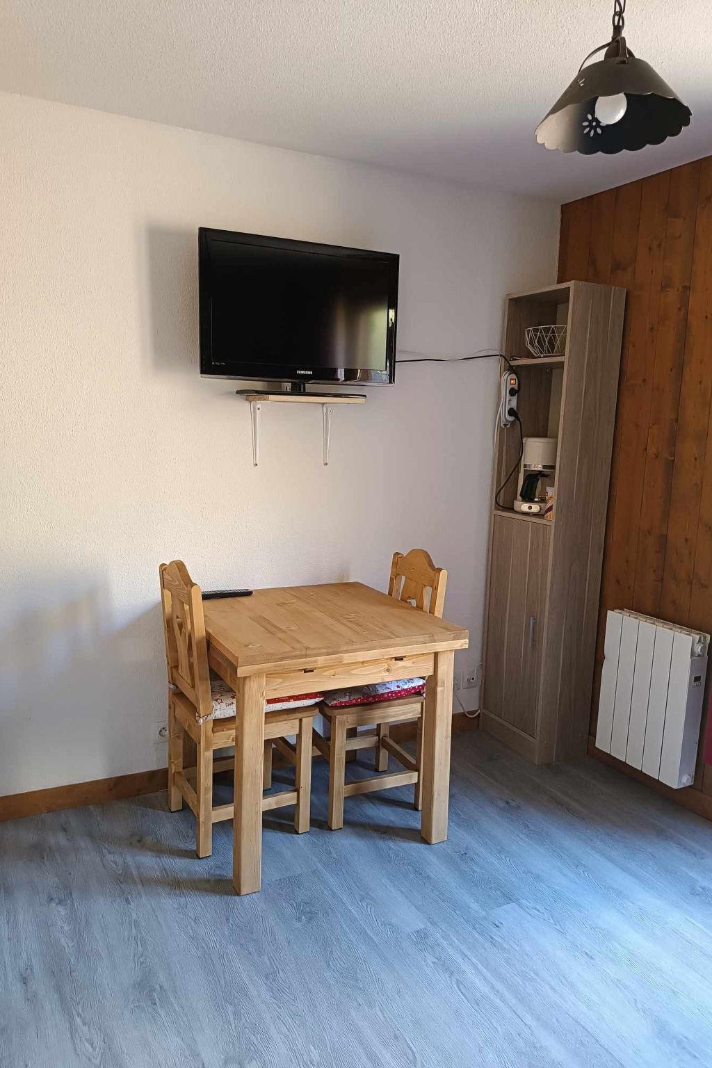 "Les Ecureuils B", 1-room studio 19 m2. Object suitable for 3 adults. Living room with 1 sofabed, 1 pull-out bed and TV. Open kitchen (2 hot plates, toaster, kettle, microwave, freezer, electric coffee machine). Shower/WC. Balcony. View of the mountains. Please note: non-smokers only. Smoke alarm. Offer by a commercial proprietor according to Art. 155, IV, CGI