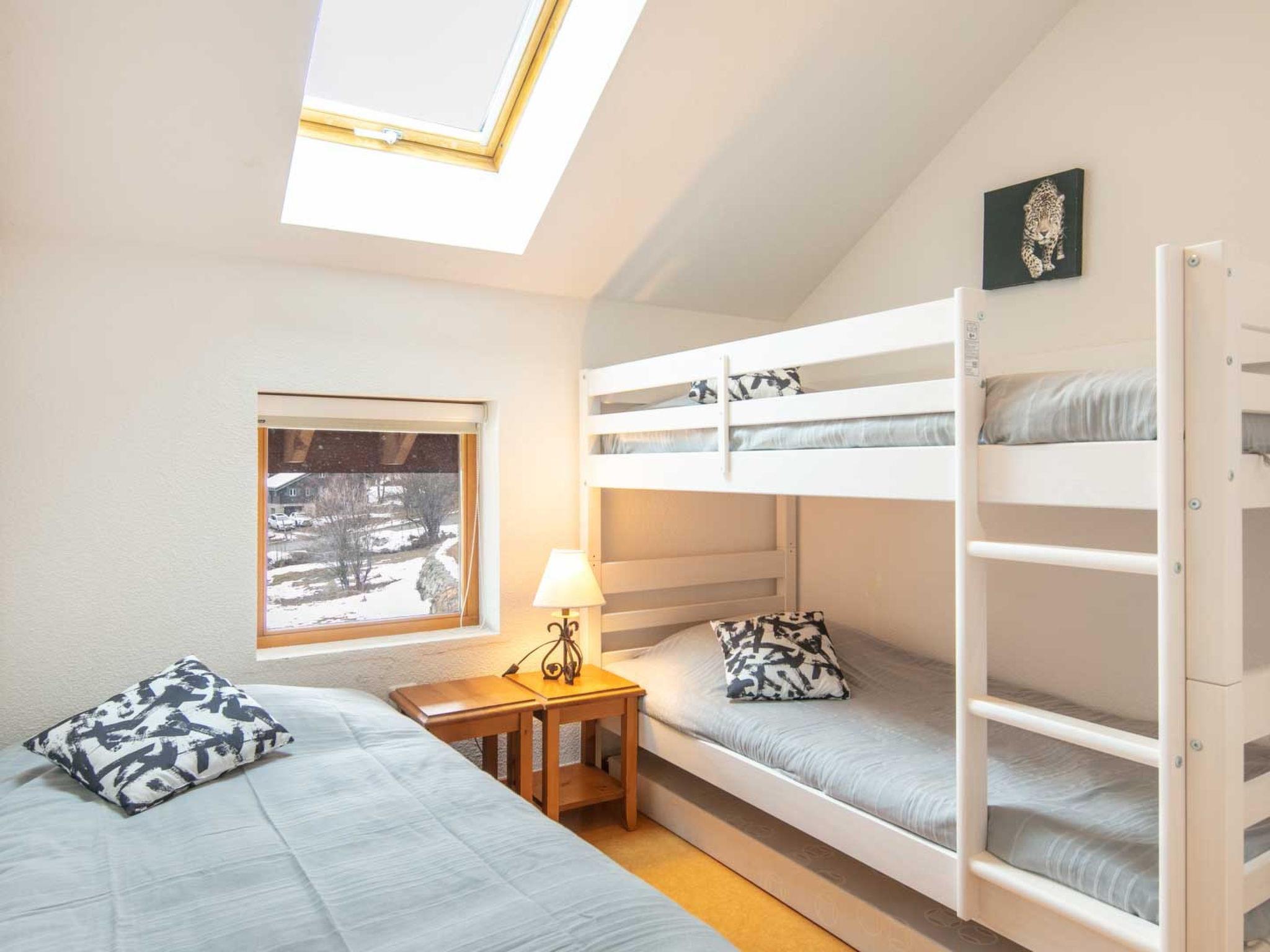 "Les Marmottes", 3-room apartment 40 m2 on 3rd floor. Object suitable for 5 adults. 1 room with 1 double bed and TV. 1 room with 1 bed and 1 x 2 bunk beds. Living room with 2 sofabeds. Kitchen (oven, dishwasher, 4 induction hot plates, toaster, kettle, microwave, electric coffee machine). Bath/WC. Balcony. Parking (1 car). Please note: non-smokers only. Smoke alarm. Offer by a commercial proprietor according to Art. 155, IV, CGI