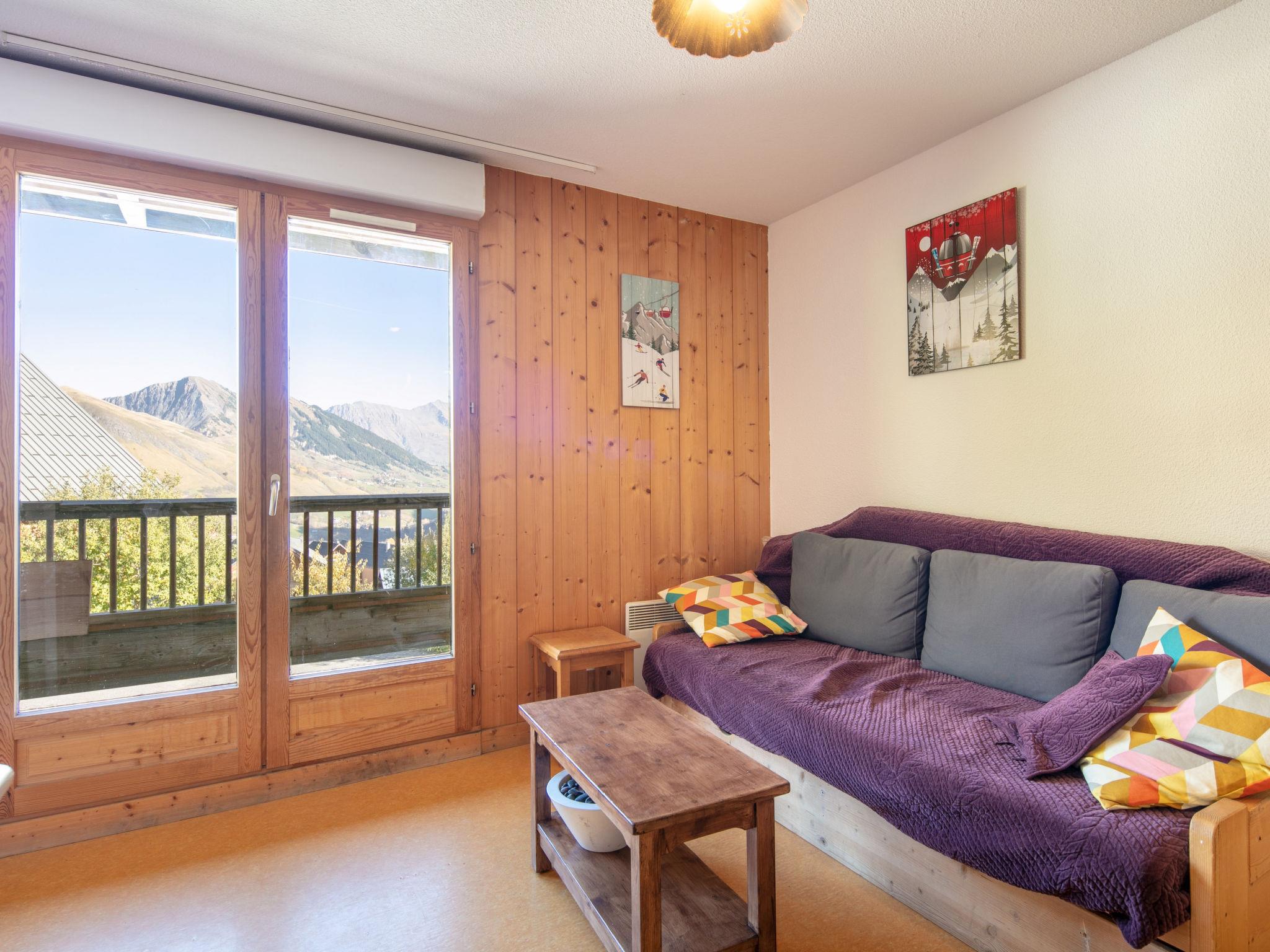 "Les Marmottes", 2-room apartment 29 m2 on 1st floor. Object suitable for 5 adults. 1 room with 1 bed, 1 double bed and TV. Living room with 2 sofabeds. Kitchen (4 hot plates, oven, dishwasher, toaster, microwave, electric coffee machine). Bath/WC. Balcony. View of the mountains. Parking (1 car) at the house. Please note: non-smokers only. Smoke alarm. Offer by a commercial proprietor according to Art. 155, IV, CGI