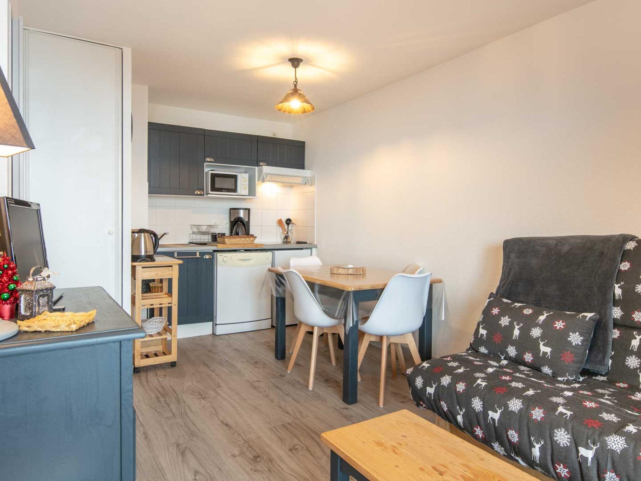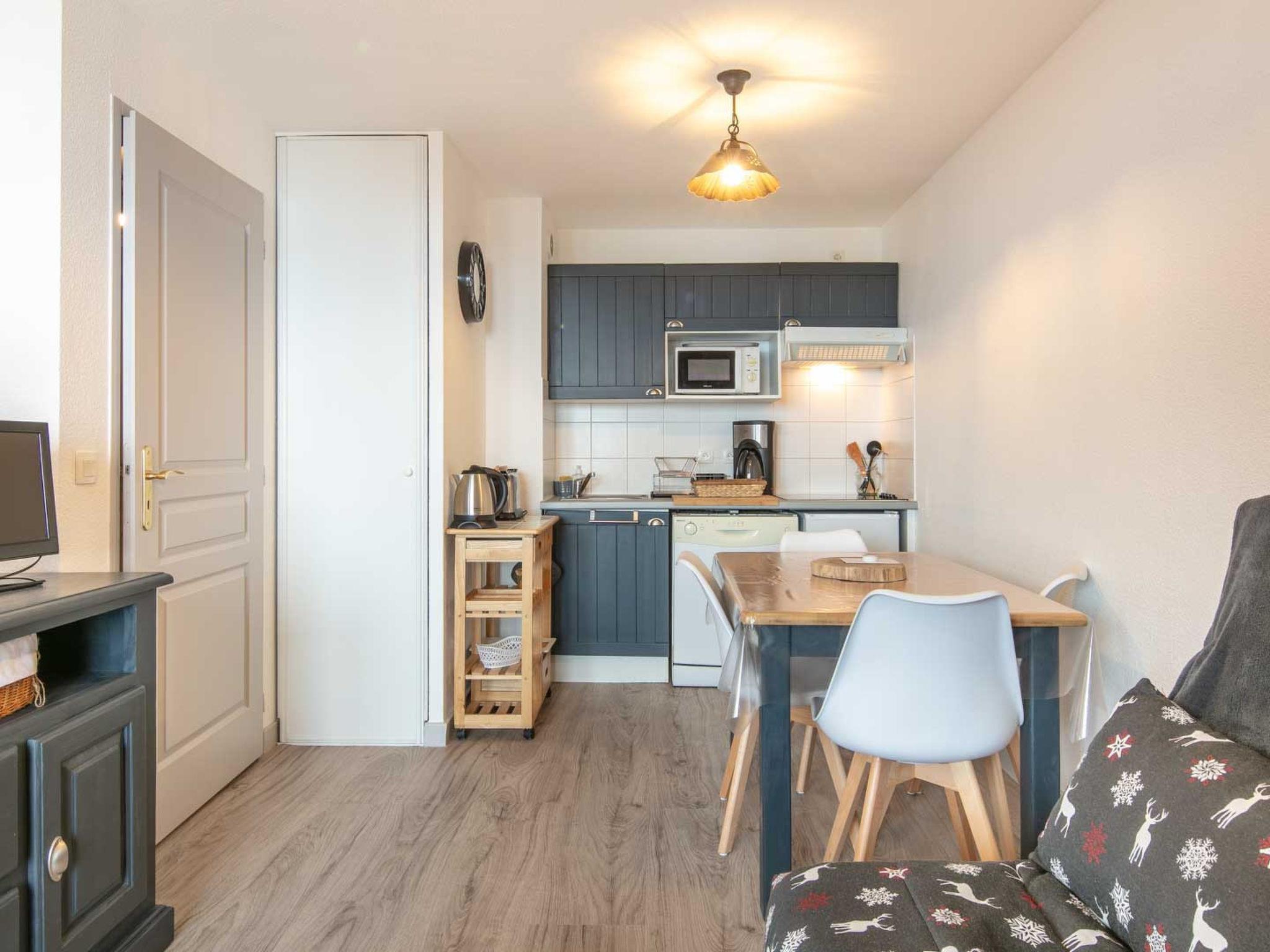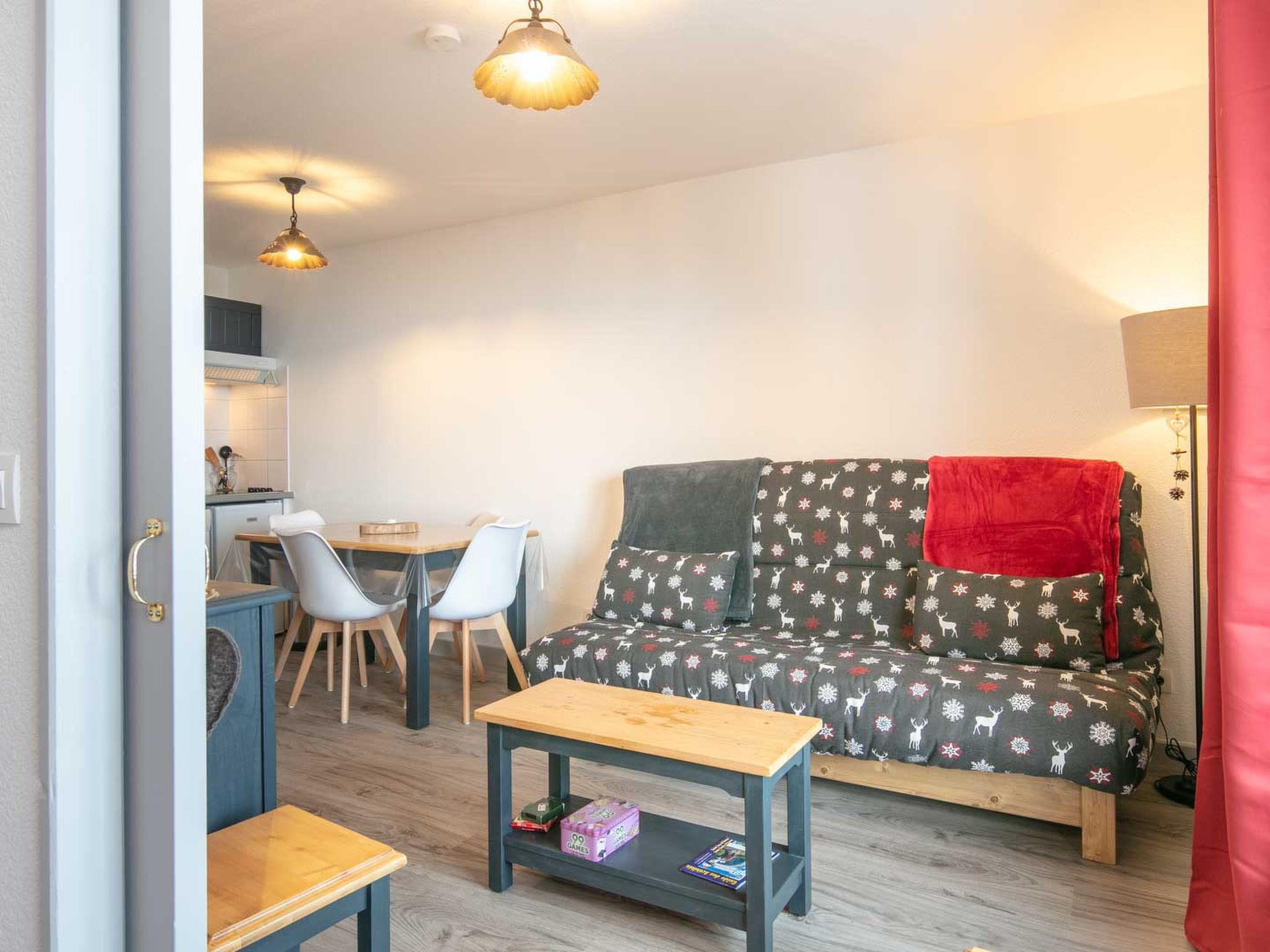 "Les Tetras", 1-room studio 29 m2 on 2nd floor. Object suitable for 4 adults. Living room with 1 sofabed, 1 double bed, 1 pull-out bed and TV. Kitchen (dishwasher, 2 induction hot plates, toaster, kettle, microwave, freezer, electric coffee machine). Shower/WC. Balcony. View of the mountains. Please note: non-smokers only. Smoke alarm. Offer by a commercial proprietor according to Art. 155, IV, CGI