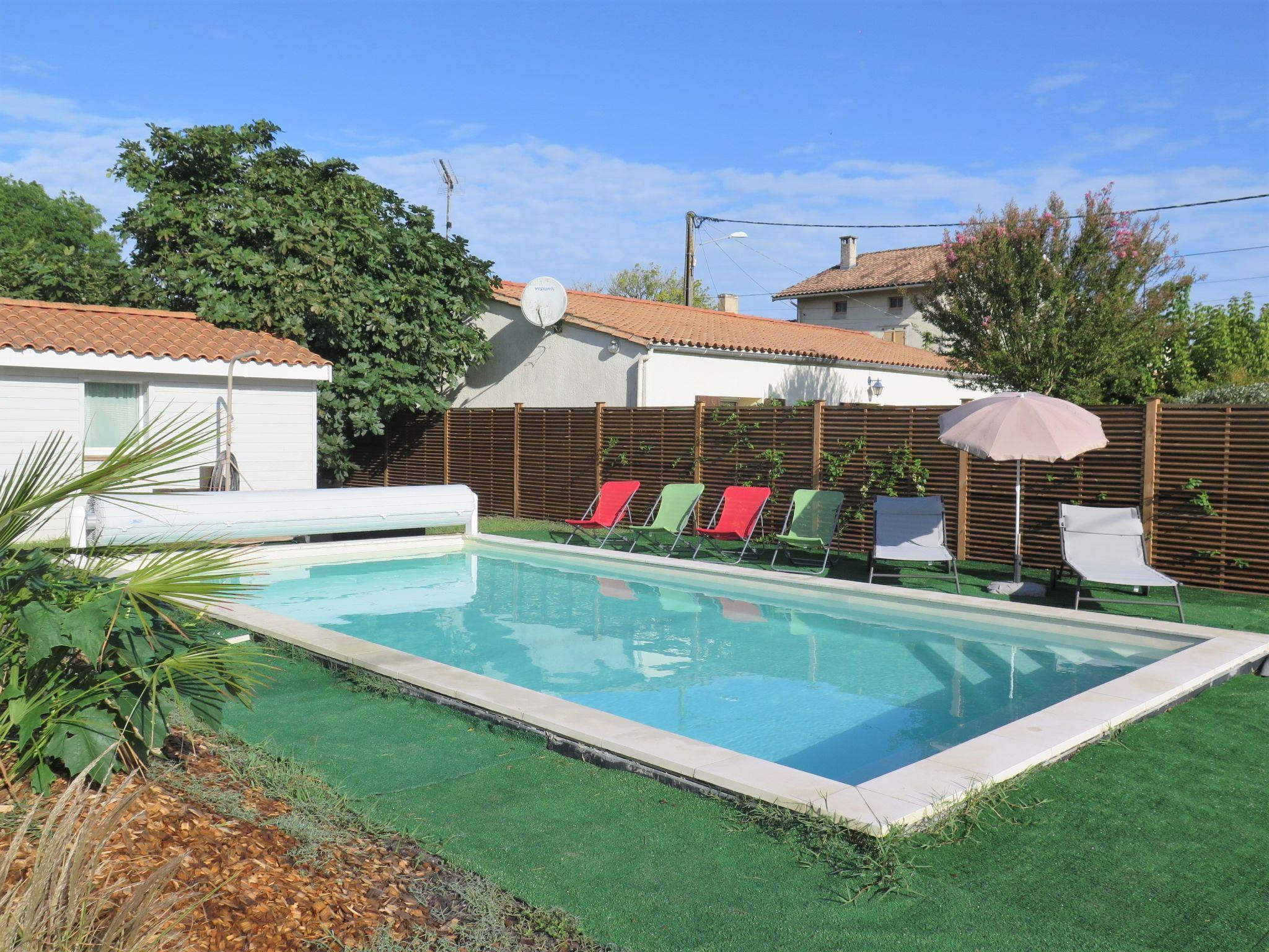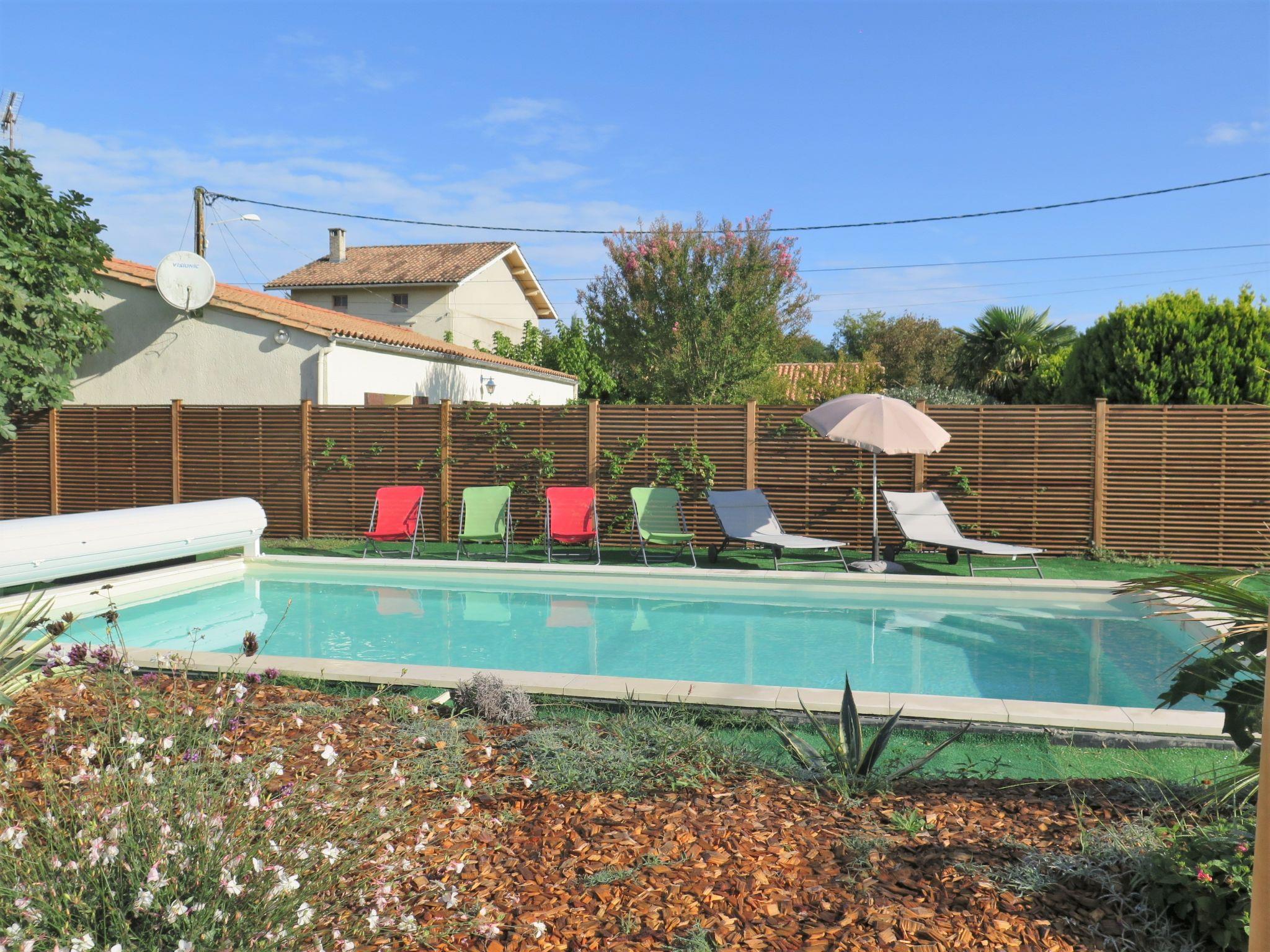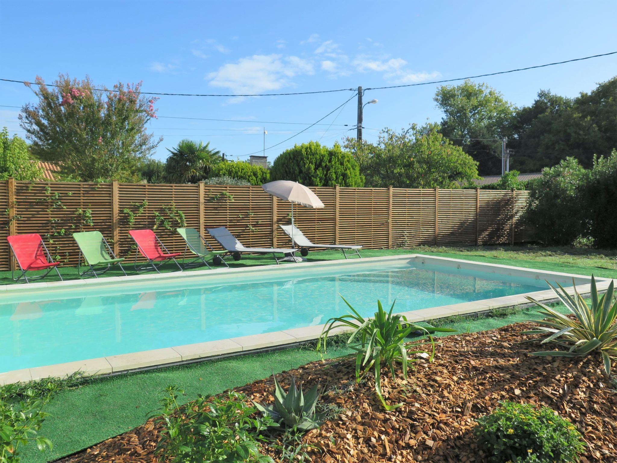 Small, cosy single-family house "Mon Poussin". 150 m from the centre of Saint Vivien-de-Médoc, 18 km from the centre of Lesparre, 80 km from the centre of Bordeaux, in the residential district, 10 km from the sea, 5.5 km from the river. Private: well-kept garden 800 m2 (fenced) with lawn and trees, swimming pool angular (8 x 4 m, depth 140 cm, seasonal availability: 01.Jan. - 31.Dec.) with shutter cover and salt-electrolysis pool-cleaning system. Pool maintenance by the owner/gardener. Storeroom available. Parking (for 2 cars) at the house on the premises. Shop 150 m, bus stop "La Pargaud" 70 km, sandy beach "Le Gurp" 10 km. Nearby attractions: Soulac-sur-Mer 14 km, Montalivet 14 km, Royan (par le bac) 30 km, Hourtin 30 km, Pauillac 40 km, Lacanau 55 km.