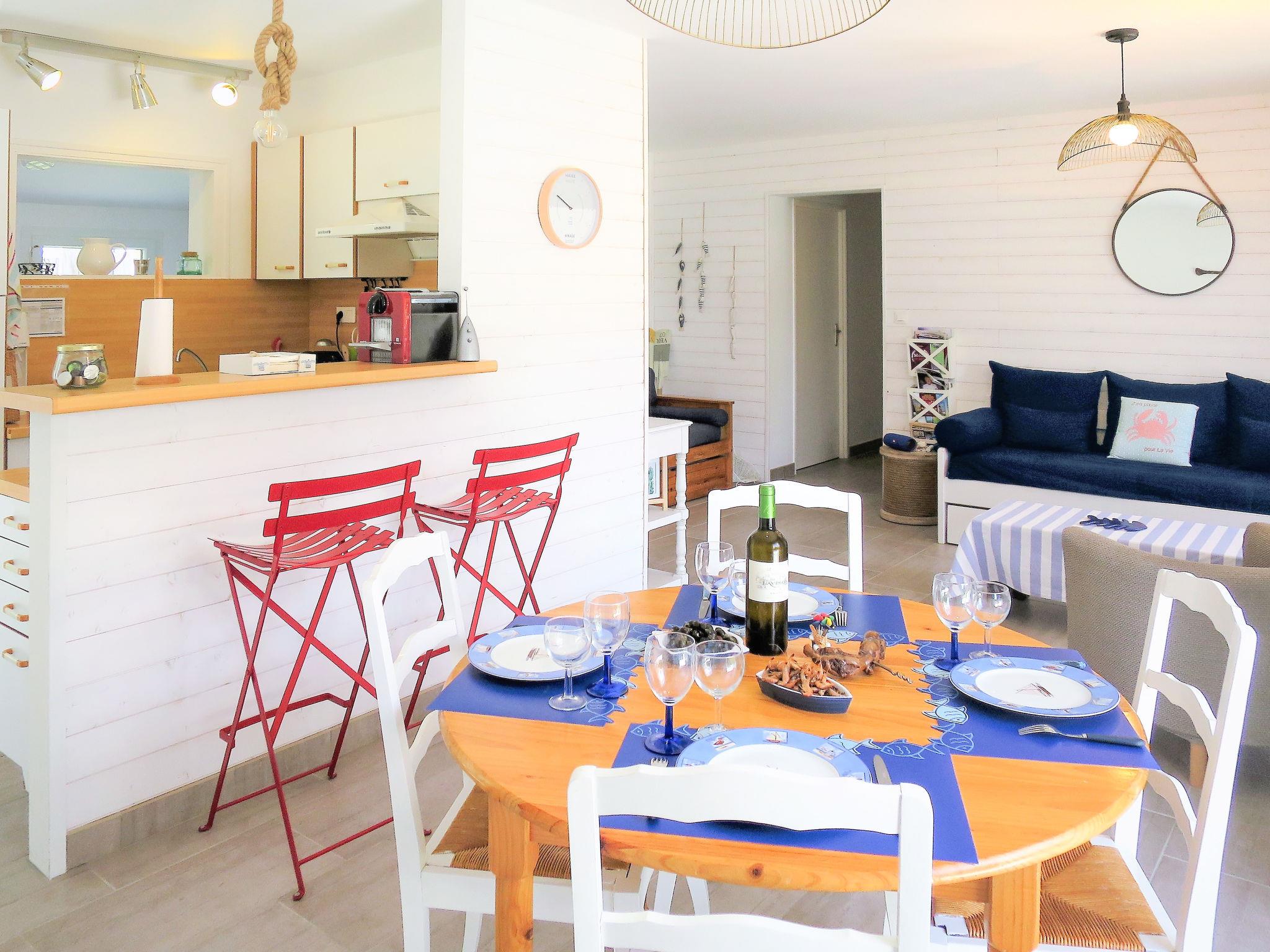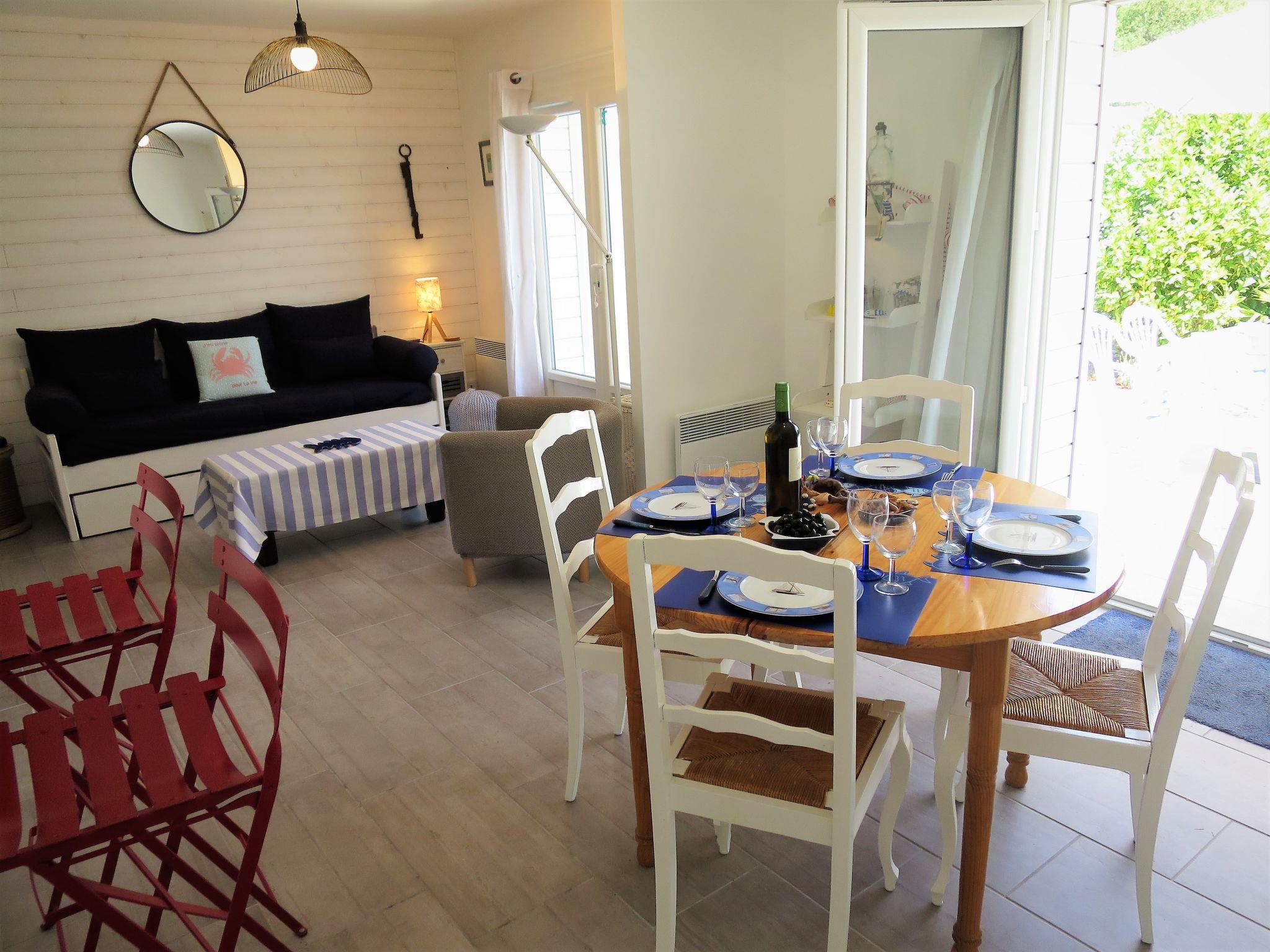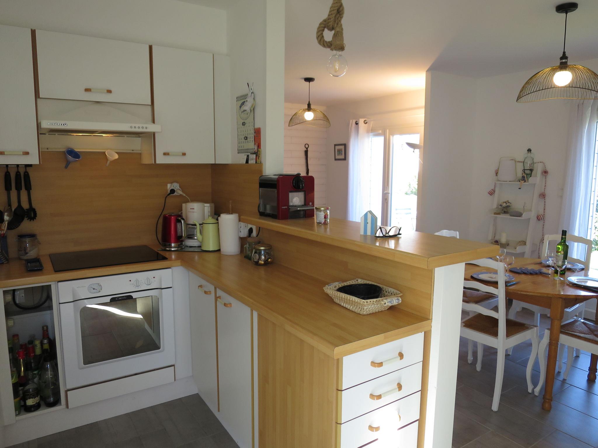 "Mon Poussin", 3-room house 70 m2. Bright, modern and stylish furnishings: living/sleeping room with 1 double sofabed (160 cm, length 200 cm), dining table. Exit to the garden. 1 room with 1 french bed (160 cm, length 200 cm). Exit to the garden. 1 room with 2 beds (80 cm, length 190 cm). Exit to the garden. Small, open kitchen (oven, dishwasher, 3 induction hot plates, toaster, kettle, microwave, electric coffee machine) with bar. Shower, shower/WC, sep. WC. Electric heating. Terrace. Terrace furniture, barbecue (portable), deck chairs (6). Facilities: washing machine, iron, children's high chair, baby cot (extra). Internet (WiFi, free). Please note: non-smoking house. Smoke alarm. Offer by a private individual according to Art. 155, IV of CGI.