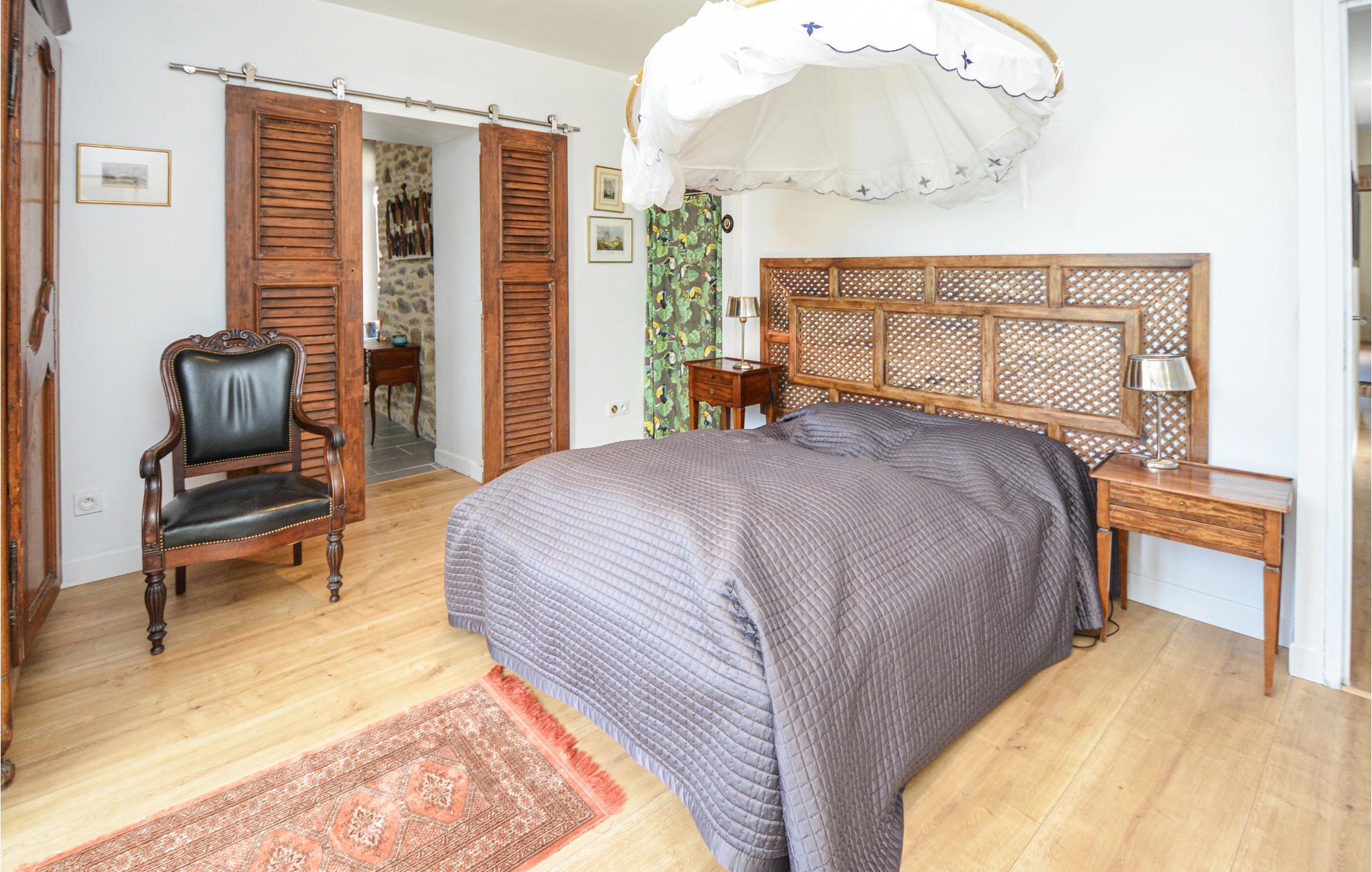 Det komfortable og rummelige hus byder sine gæster velkommen omgivet af et pittoresk landskab og ikke langt fra en flod. Ejendommen har plads til flere familier eller en gruppe venner. Masser af smukke detaljer og den hjemlige indretning giver rummene deres charme. Her finder I flere hyggelige steder at nyde tiden sammen, og forskellige siddegrupper indbyder til samtale. Skab en særlig hyggelig atmosfære med ild i brændeovnen.