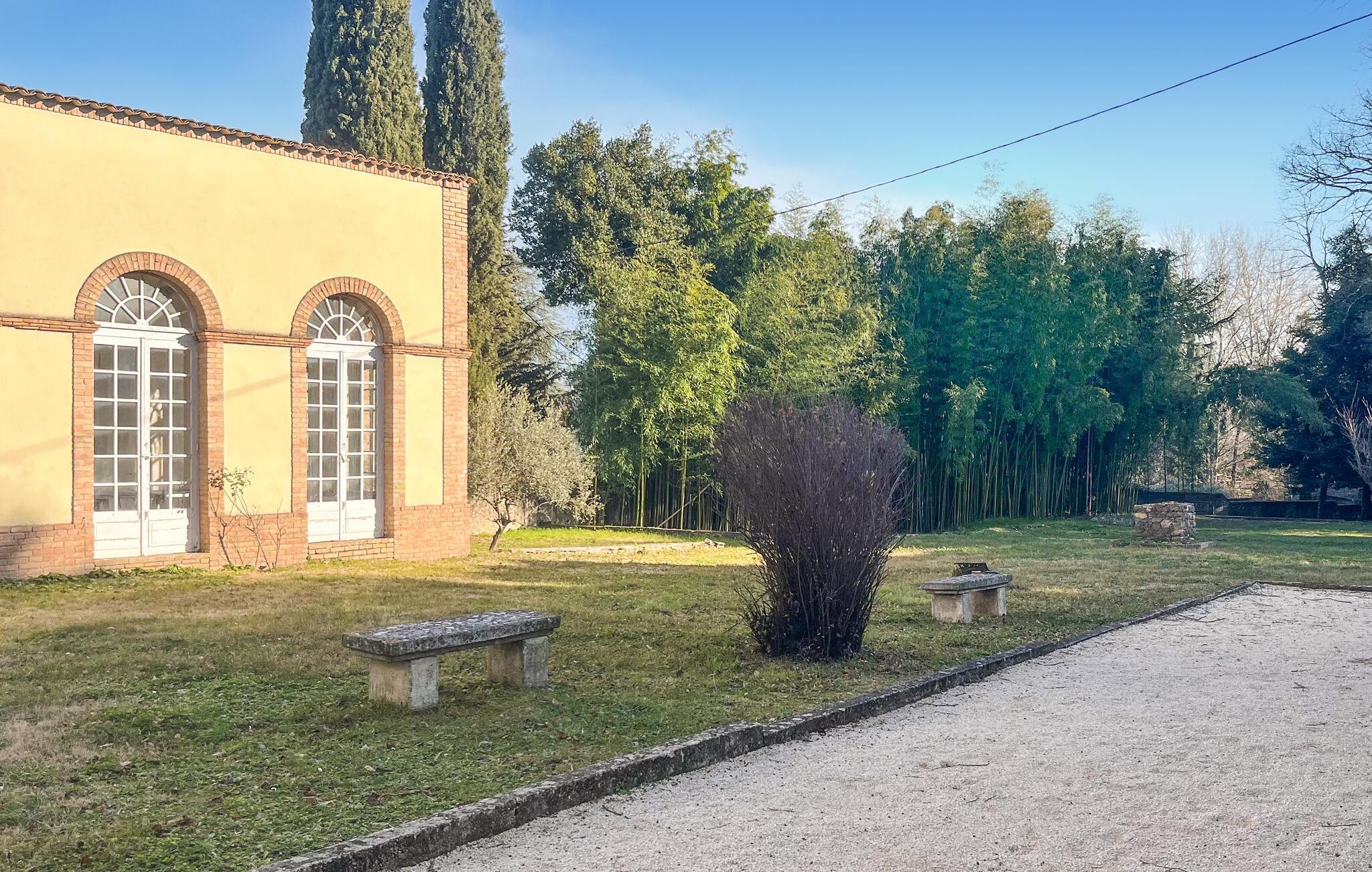 Tilbring afslappende timer i den rummelige oase med moderne indendørs/udendørs pool eller på den klassiske boulebane i skyggen af århundrede gamle træer. Et sted for ro og elegance, perfekt til en pause fra hverdagen. Spadser gennem parkens fredelige rekreative områder og samles om aftenen i den rummelige orangeri. Oplev en fredelig bambusskov og opdag ejendommen, der skråner blidt ned mod floden Cèze, som byder på muligheder for svømning og afslapning ved en privat strand.