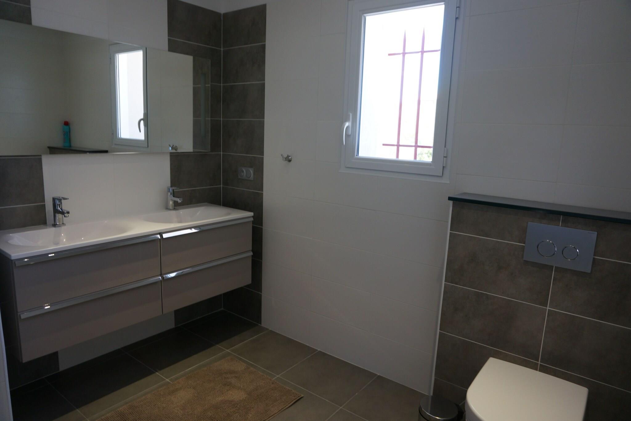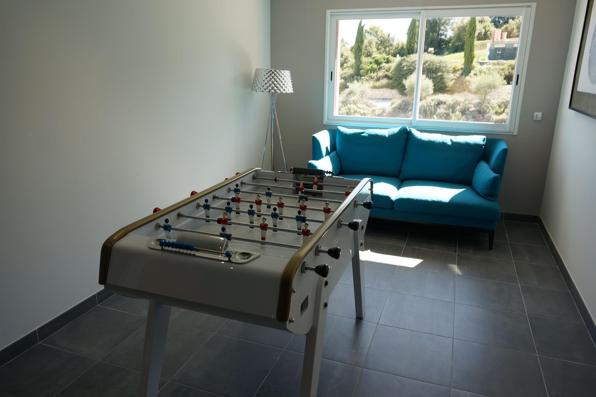 Stueetage: (Stue(pejs), spisestue, Køkken(komfur(Komfur med fire kogeplader, induktion), kaffemaskine(kaffetragt), ovn, mikrobølgeovn, opvaskemaskine , køleskab(amerikansk), fryser), Soveværelse med badeværelse(dobbeltseng(180 x 200 cm), bruser, 2x håndvask, toilet, klimaanlæg), toilet, pulterkammer(tørretumbler, vaskemaskine), klimaanlæg) På 1. etage: (Soveværelse med badeværelse(dobbeltseng(dobbeltdyne, dun, 180 x 200 cm), bruser, 2x håndvask, toilet, klimaanlæg), Soveværelse med badeværelse(dobbeltseng(dobbeltdyne, dun, 160 x 190 cm), bruser, 2x håndvask, toilet, klimaanlæg), Soveværelse med badeværelse(2x enkeltseng(dyne, dun, 90 x 190 cm), bruser, håndvask, toilet, klimaanlæg), klimaanlæg) udekøkken(adgang udefra), garage(adgang udefra), havedøre, terrasse(privat), have(privat, delvist indhegnet, 800 m2), parkering, swimmingpool(privat, indhegnet, 14 x 4 m., opened from May upto and including Oct), petanquebane, bordtennisbord, bordfodbold, barneseng, Pladegrill