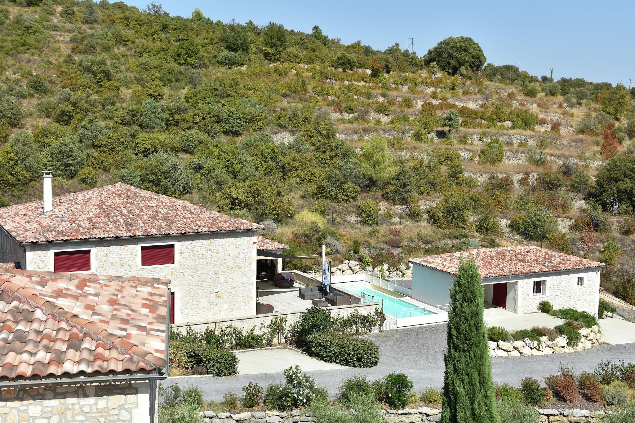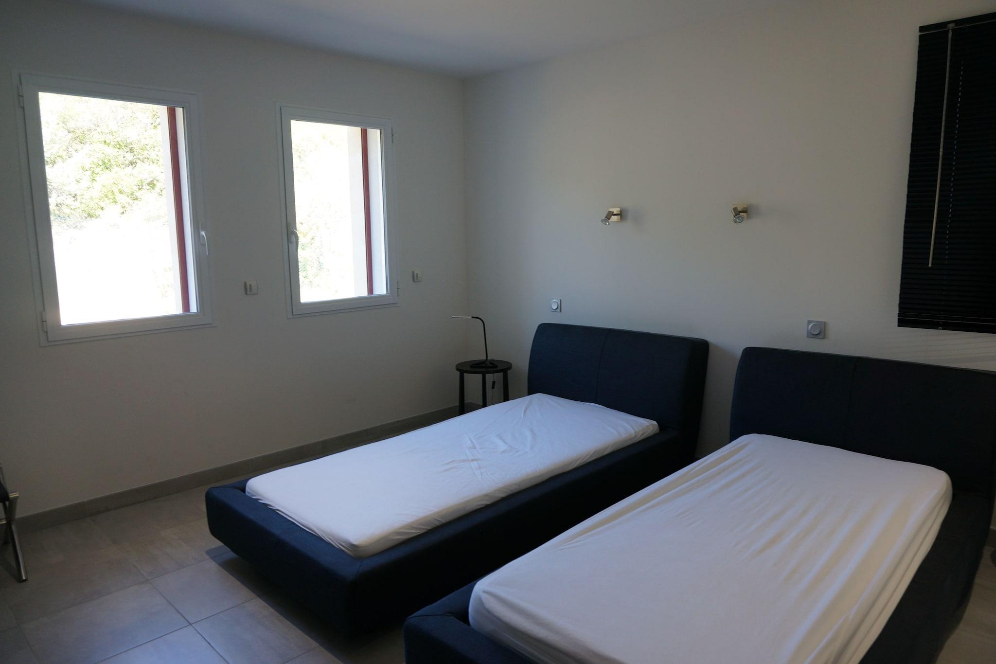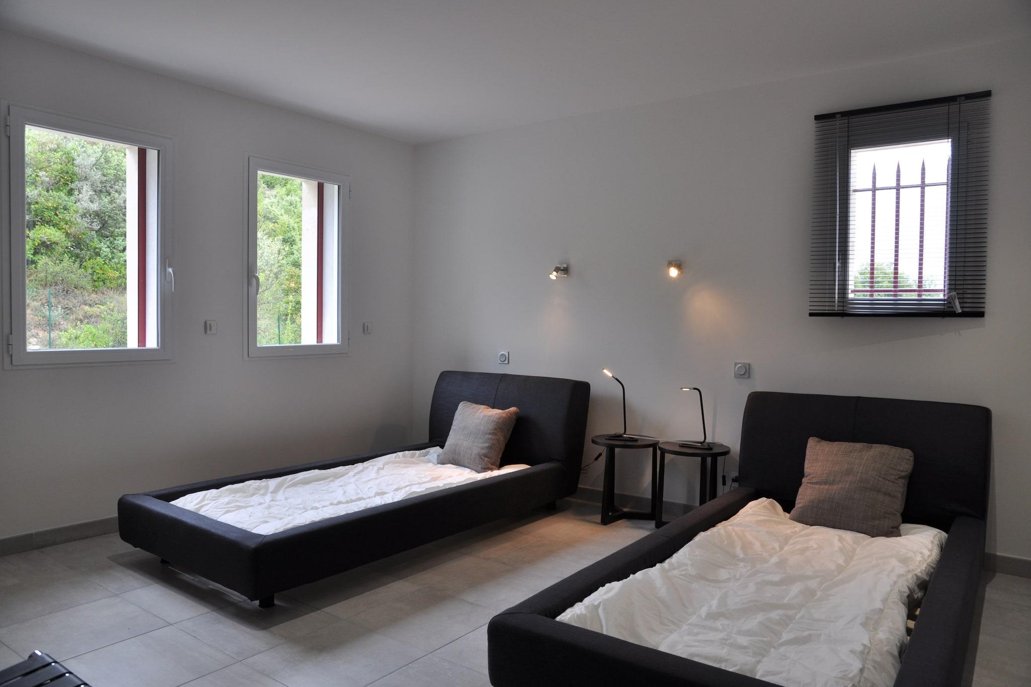 En luksusvilla i den franske by Saint-Ambroix med en swimmingpool, en rummelig terrasse og et åbent køkken; ideel til en stor familie eller gruppe. Den afslappende bolig har en gasgrill til hyggelige aftener og fra den private terrasse kan I nyde den flotte udsigt over omgivelserne.Residensen har en skøn beliggenhed, med generelle faciliteter, restauranter og bymidten kun 3 km væk. Den attraktive region byder på mange aktiviteter for grupper.Det børnevenlige hus har jeu de boules bane og alle soveværelser har eget badeværelse. Der er opbevaringsrum med tørretumbler og vaskemaskine og du kan parkere din bil sikkert.Nærmeste lufthavn ligger omkring 50 km væk.