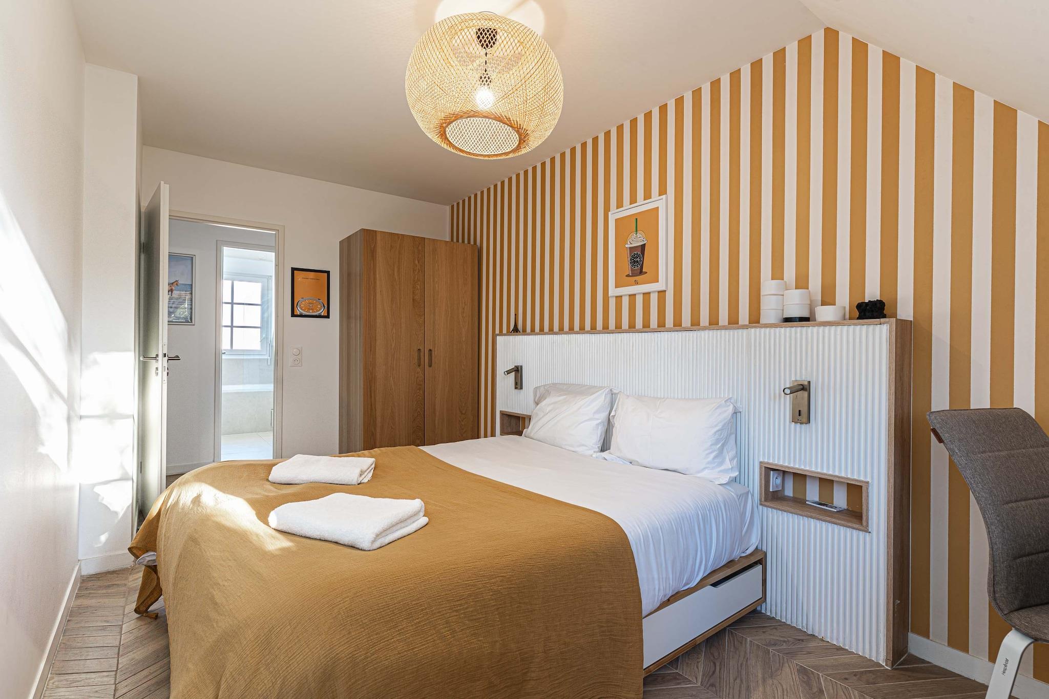 Kun 5 minutter fra Deauville kombinerer dette fantastiske hus charme og modernitet. Med sine 4 soveværelser, 3 badeværelser, stor, lys stue og solrig have, er der komfortabel plads til op til 9 personer. Ideelt til et raffineret ophold med familie eller venner, mellem fredelig landskab og den nærliggende strand. Fred, elegance og hygge venter på dig!