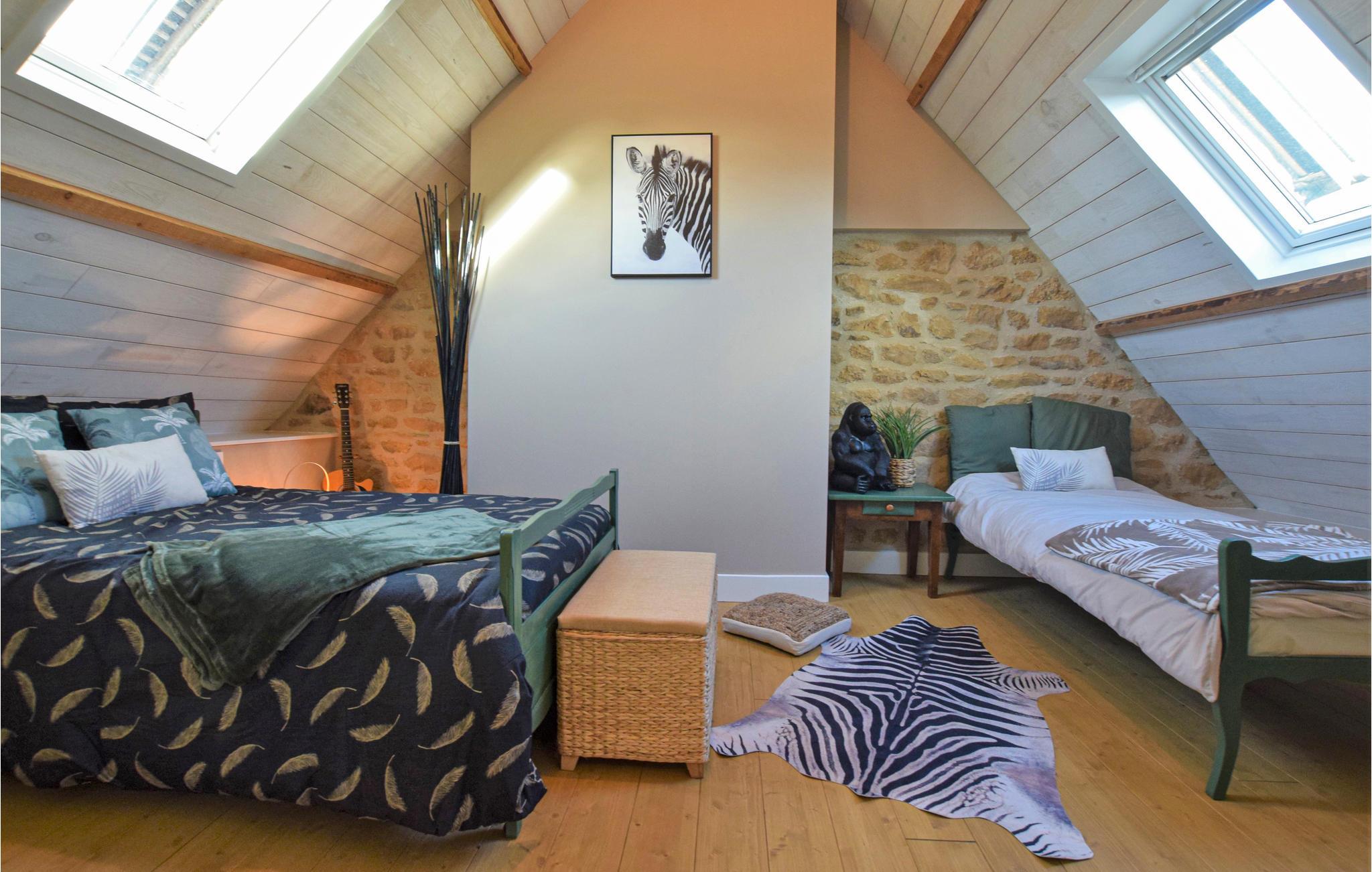 Ankom med jeres storfamilie i dette skønne og moderne rækkehus og glæd jer til en afslappende pause fra jeres hektiske hverdag. Det charmerende hus, i den typiske stil fra det sydlige Normandiet, byder jer velkommen med et smukt og moderne design. Komforten er ikke forsømt, så I kan slappe af om natten og fuldt ud nyde fællesarealerne, mens I laver mad, leger og slapper af. I kan også nyde den store, fælles have, som I deler med naboferiehuset, og som lægger op tilafslappende timer med grill, sydende og boulespil.