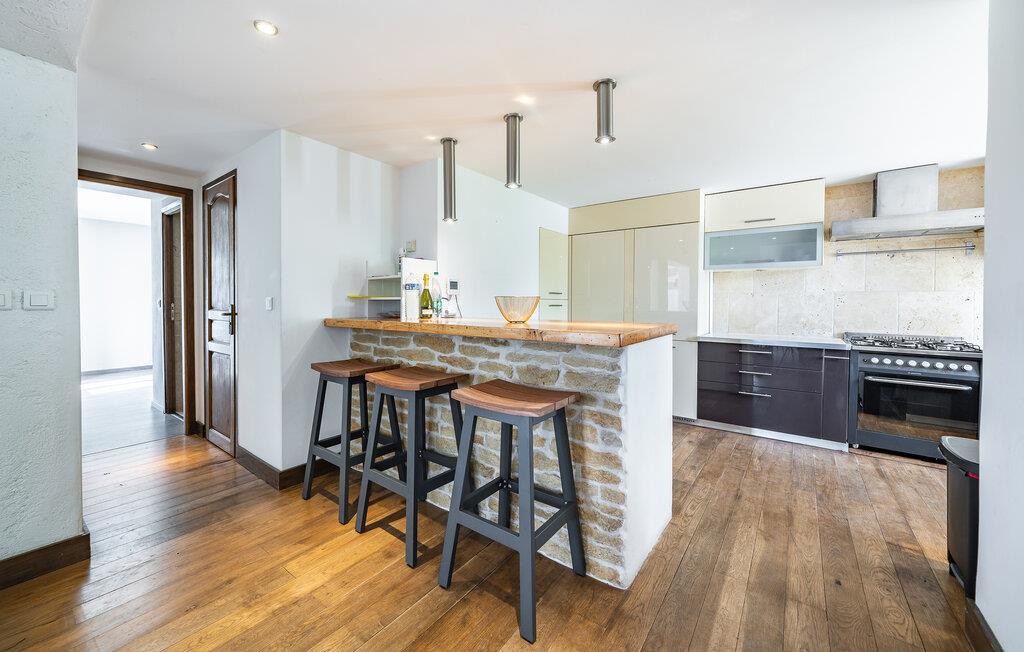 De smagfulde interiører tilbyder en indbydende atmosfære med moderne bekvemmeligheder. Det åbne og luftige opholdsrum kombinerer køkken og stue og tilbyder masser af plads til at slappe af og koble fra. De store vinduer skaber en lys atmosfære og giver jer mulighed for at nyde det høje komfortniveau.