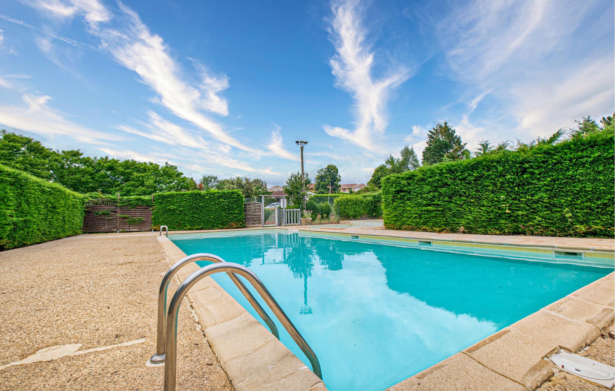 snup en frisk dukkert i den skønne pool, når I har lyst, brug terrassen til en afslappet morgenmad eller et glas vin om aftenen, og vær social omkring den fælles grill, når I har lyst.