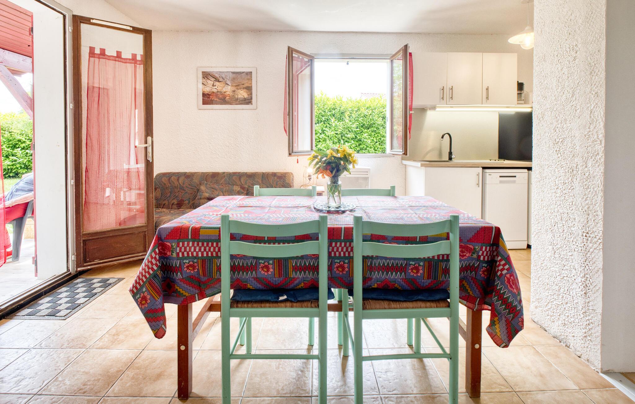 Dette charmerende hus byder jer velkommen med en lys og venlig atmosfære i hjertet af den maleriske Périgord Noir. Her kan I trylle lækre retter frem lavet med regionale råvarer og planlægge jeres aktiviteter i den indbydende spisestue. Nyd hyggelige spilleaftener under blød belysning eller fordyb jer i en god bog.