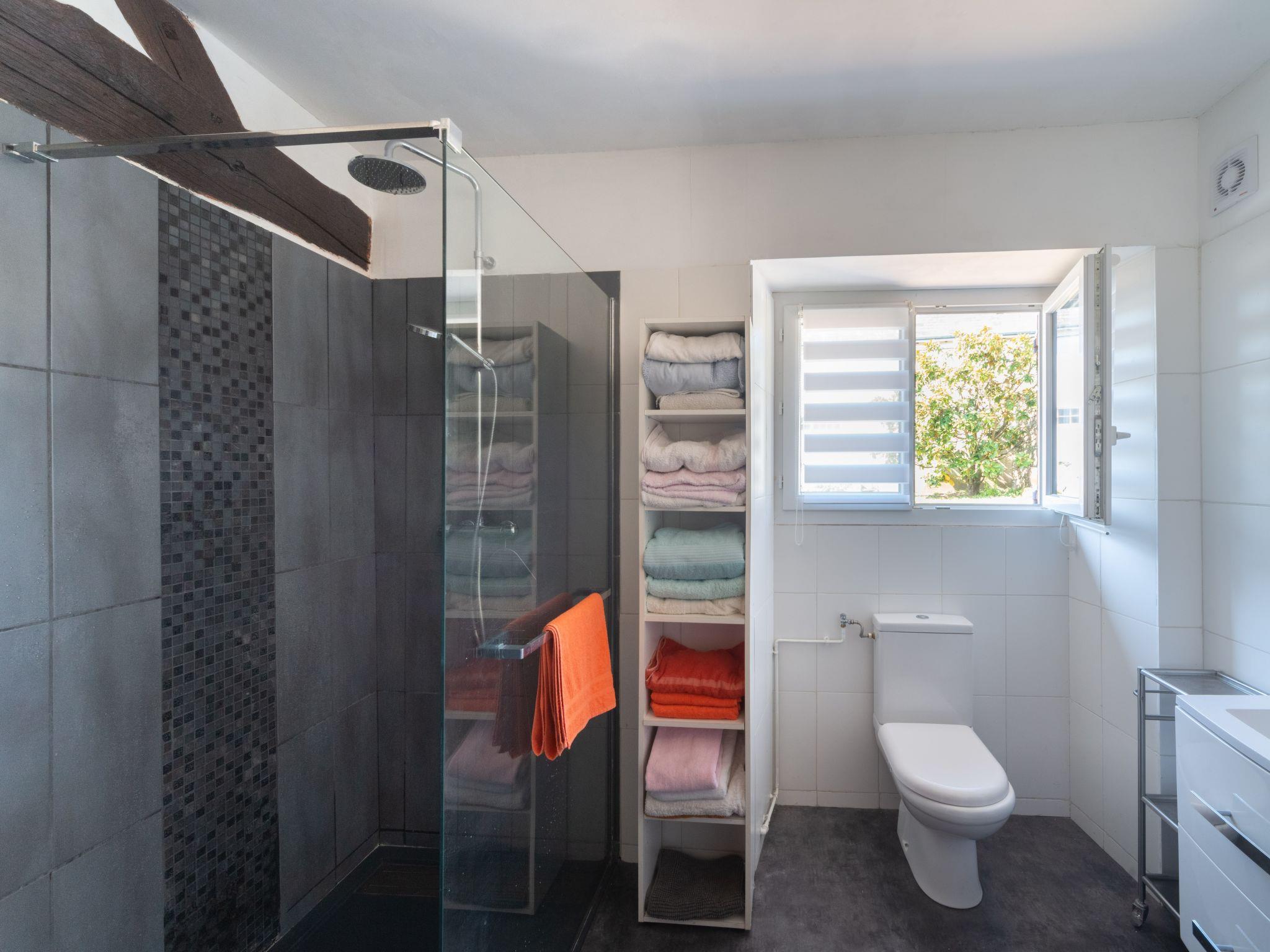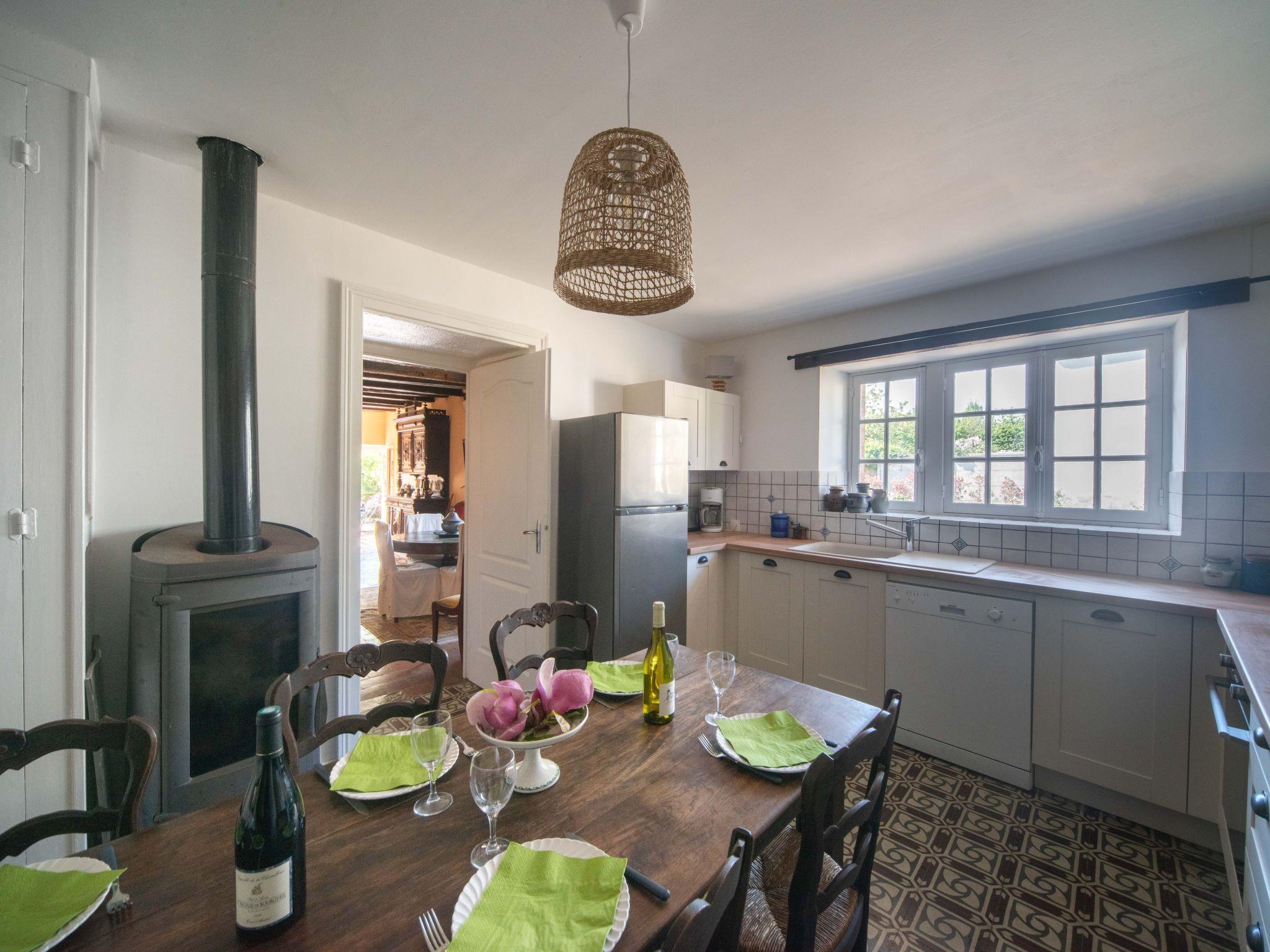 4-room house 150 m2 on 2 levels. Comfortable and antique furnishings: living/dining room with open-hearth fireplace and TV (flat screen). Kitchen (oven, dishwasher, 3 induction hot plates, toaster, kettle, microwave, electric coffee machine, Capsules for coffee machine (Nespresso) extra) with dining table. Shower/WC, sep. WC. Electric heating. Upper floor: 1 room with sloping ceilings with 1 double bed (2 x 85 cm, length 190 cm), separate WC. 1 room with sloping ceilings with 2 beds (90 cm, length 190 cm). 1 room with sloping ceilings with 1 double bed (2 x 90 cm, length 195 cm). Electric heating. Terrace furniture, barbecue, deck chairs (4). Facilities: washing machine, baby cot, hair dryer. Internet (WiFi, free). Parking (fenced). Please note: suitable for families. Maximum 2 pets/ dogs allowed. Smoke alarm.