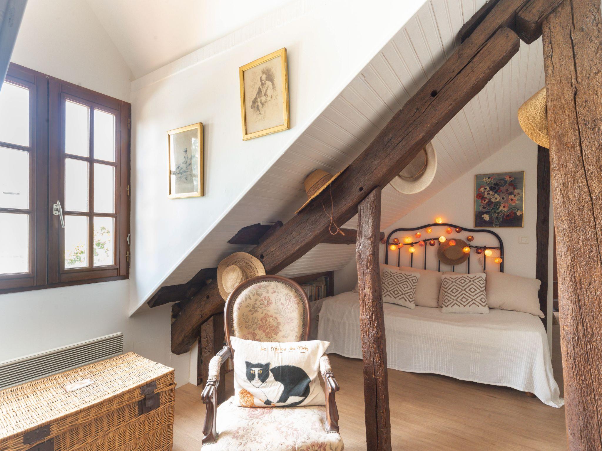 Single-family house "La Bachelotte", 2 storeys. In the hamlet Les Mées 1 km from the centre of St Denis Sur Loire, 400 m from the canal. Private: well-kept garden 400 m2 (fenced) lawn, swimming pool heated (5 x 10 m, depth 100 - 200 cm, seasonal availability: 31.May. - 20.Sep.) with internal staircase. Terrace, barbecue house, parking (for 2 cars). Grocery 1.5 km, supermarket 5 km, restaurant 5 km, bakery 1.5 km, bus stop 1 km, thermal baths "Aquavithal" 4 km. Golf course (18 hole) 21 km, tennis 3 km, riding stable 5 km. Nearby attractions: Blois 8 km, Chambord 20 km, Cheverny 20 km, Chaumont Sur Loire 30 km, Amboise 43 km, Zoo de Beauval 50 km. Hiking paths: randonnées à vélo. Please note: car recommended. The owner does not accept any youth groups. The garden is completely fenced by walls, ideal for animals.