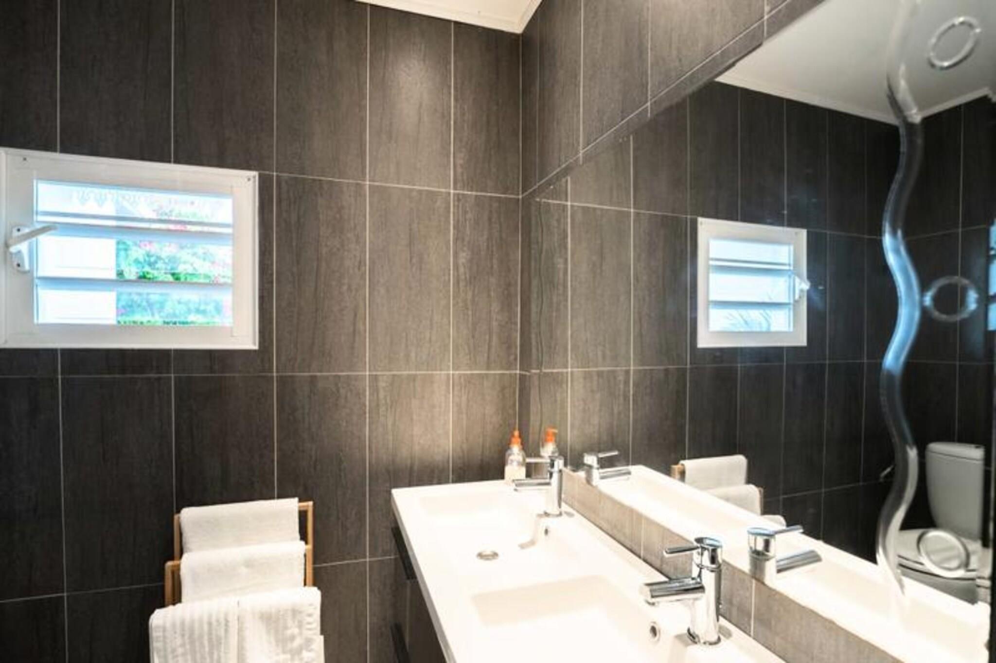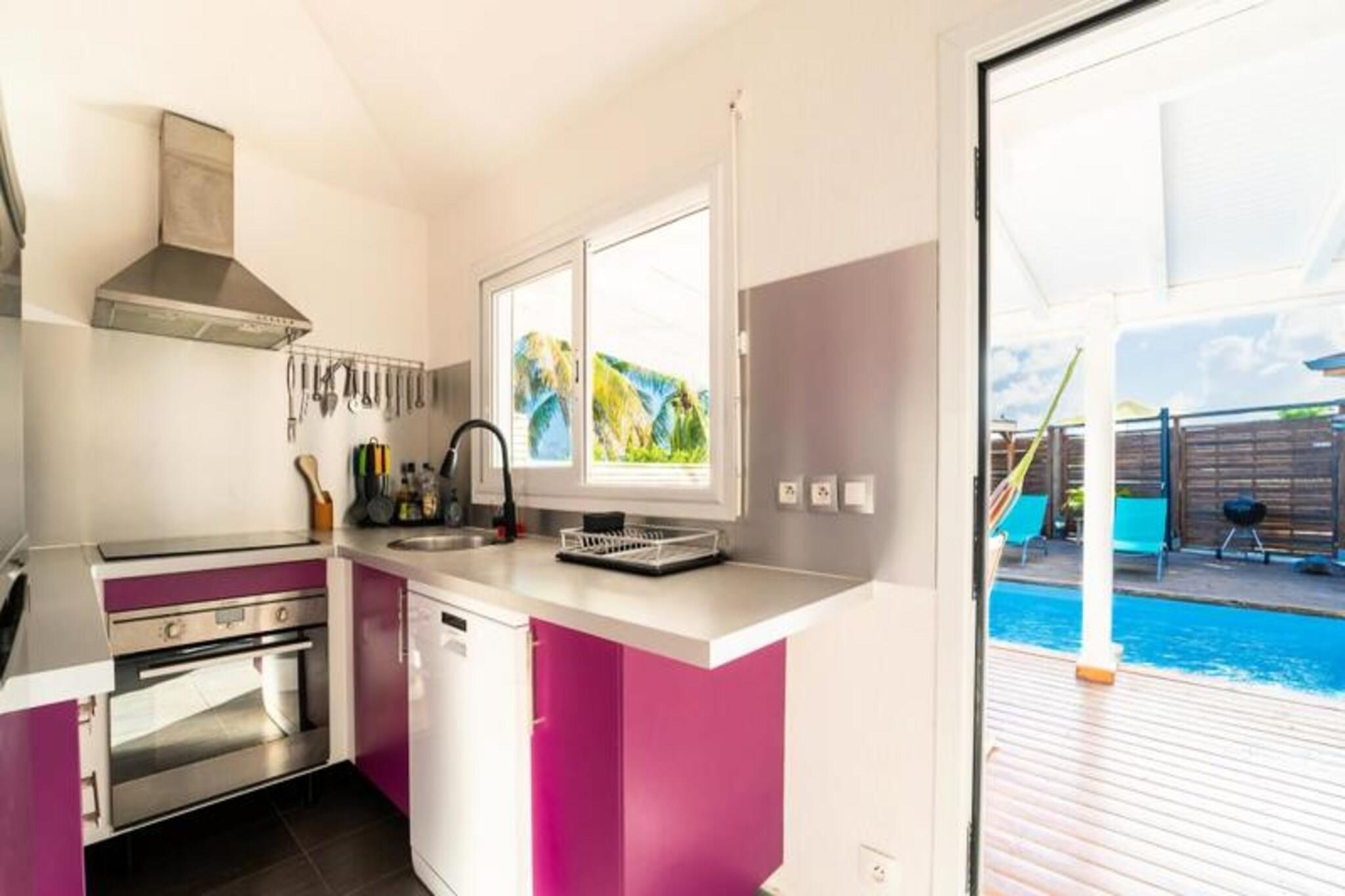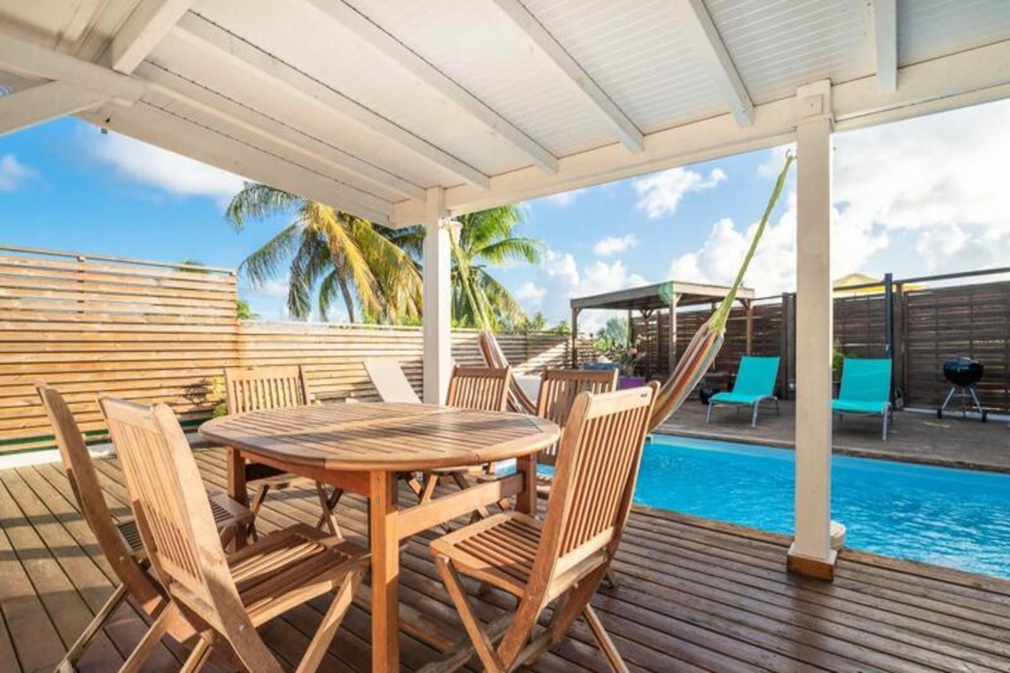 Villa Santa Maria er en charmerende en-etagers villa beliggende i hjertet af Guadeloupe, som tilbyder et roligt tilflugtssted kun få skridt fra stranden. Villaen er designet til at rumme op til fire personer og har to komfortable soveværelser, hver med en 160 cm seng og et privat en-suite badeværelse, hvilket sikrer maksimal privatliv og komfort. Villaens åbne planløsning øger flowet mellem indendørs og udendørs rum, med direkte adgang til terrassen og den store udendørs hytte med udsigt over den private swimmingpool. Ejendommens udendørsområde er et sandt højdepunkt, med et træterrasse, der omgiver swimmingpoolen, perfekt til at slappe af og nyde den caribiske sol. Den rummelige udendørs kabine giver en ideel ramme for spisning under åben himmel, med et spisebord og en grill til dem, der nyder at lave mad i det fri. Blot 2 minutters gang fra villaen kan du få adgang til de uberørte strande i La Coulée, mens stranden i Anse à la Gourde er en kort 10-minutters kørsel væk. Indenfor kombinerer Villa Santa Maria moderne bekvemmeligheder med kreolsk charme, herunder aircondition på alle værelser og et fuldt udstyret køkken med Nespresso-kaffemaskine, køleskab og komfur. Yderligere bekvemmeligheder såsom gratis Wi-Fi, håndklæder og sengetøj er til rådighed, hvilket sikrer et bekymringsfrit ophold. For dem, der søger eventyr, byder området på en række aktiviteter, fra vandsport som sejlads og dykning til øudflugter. Villaen tilbyder også en dedikeret concierge-service for at imødekomme alle dine behov, hvilket sikrer et uforglemmeligt ophold.