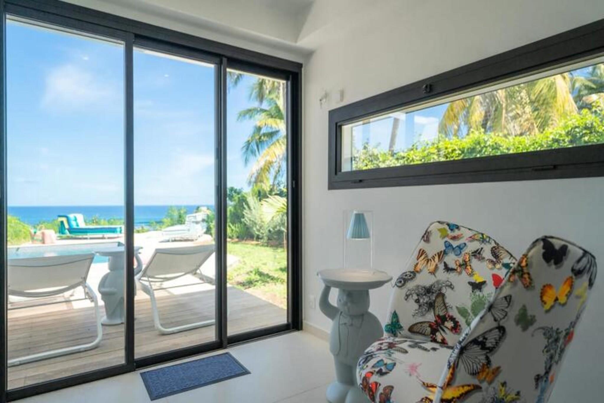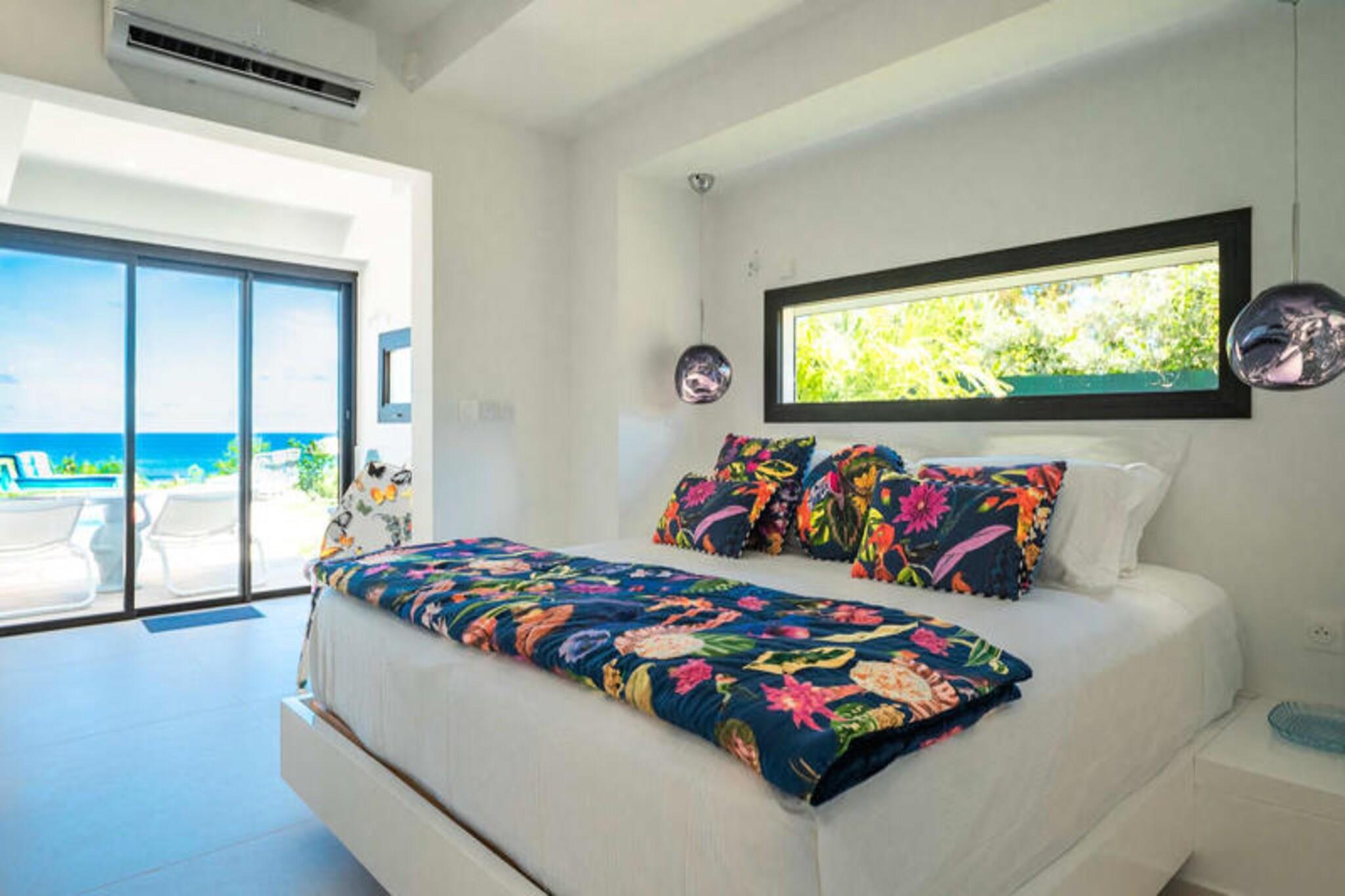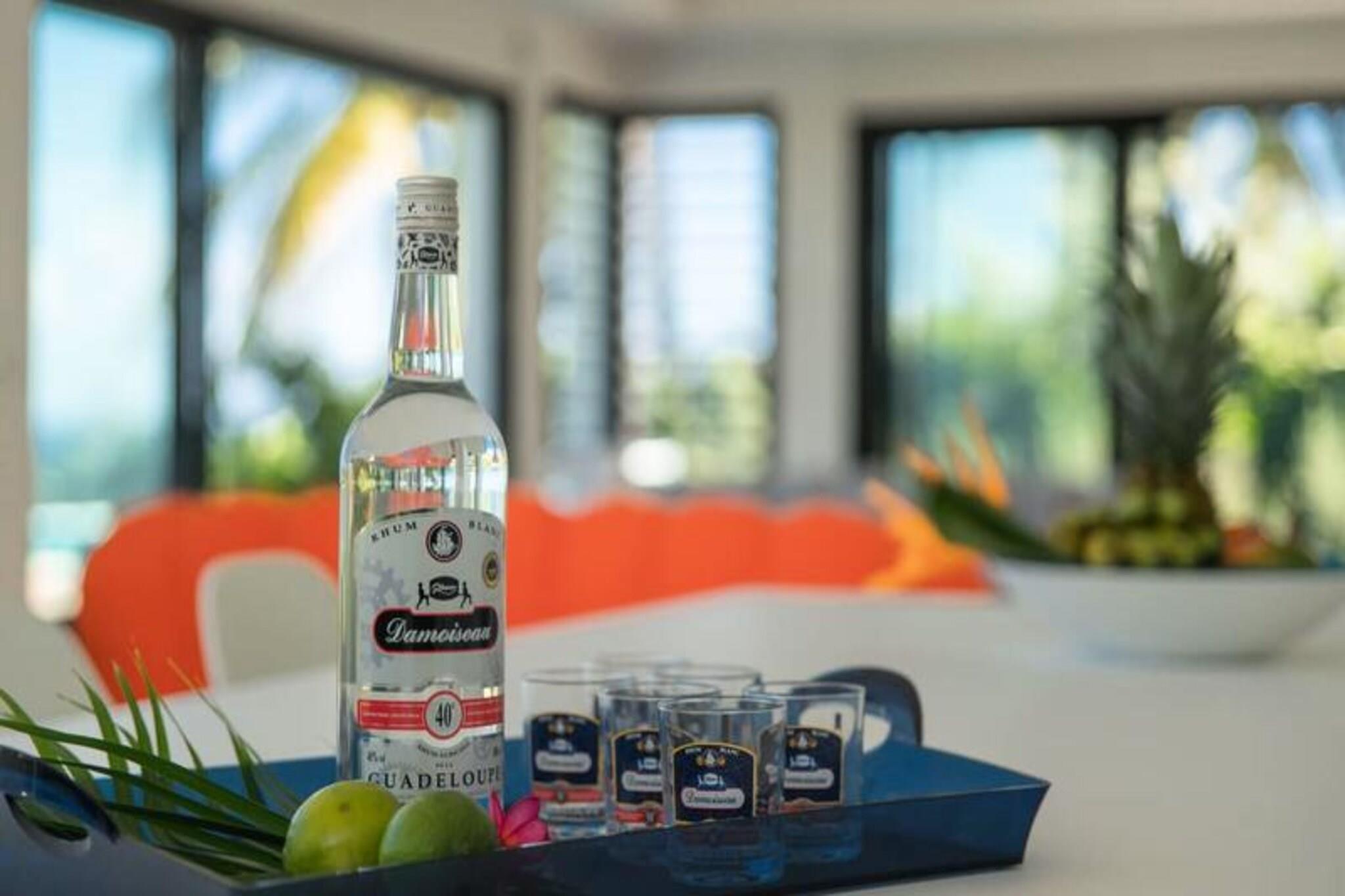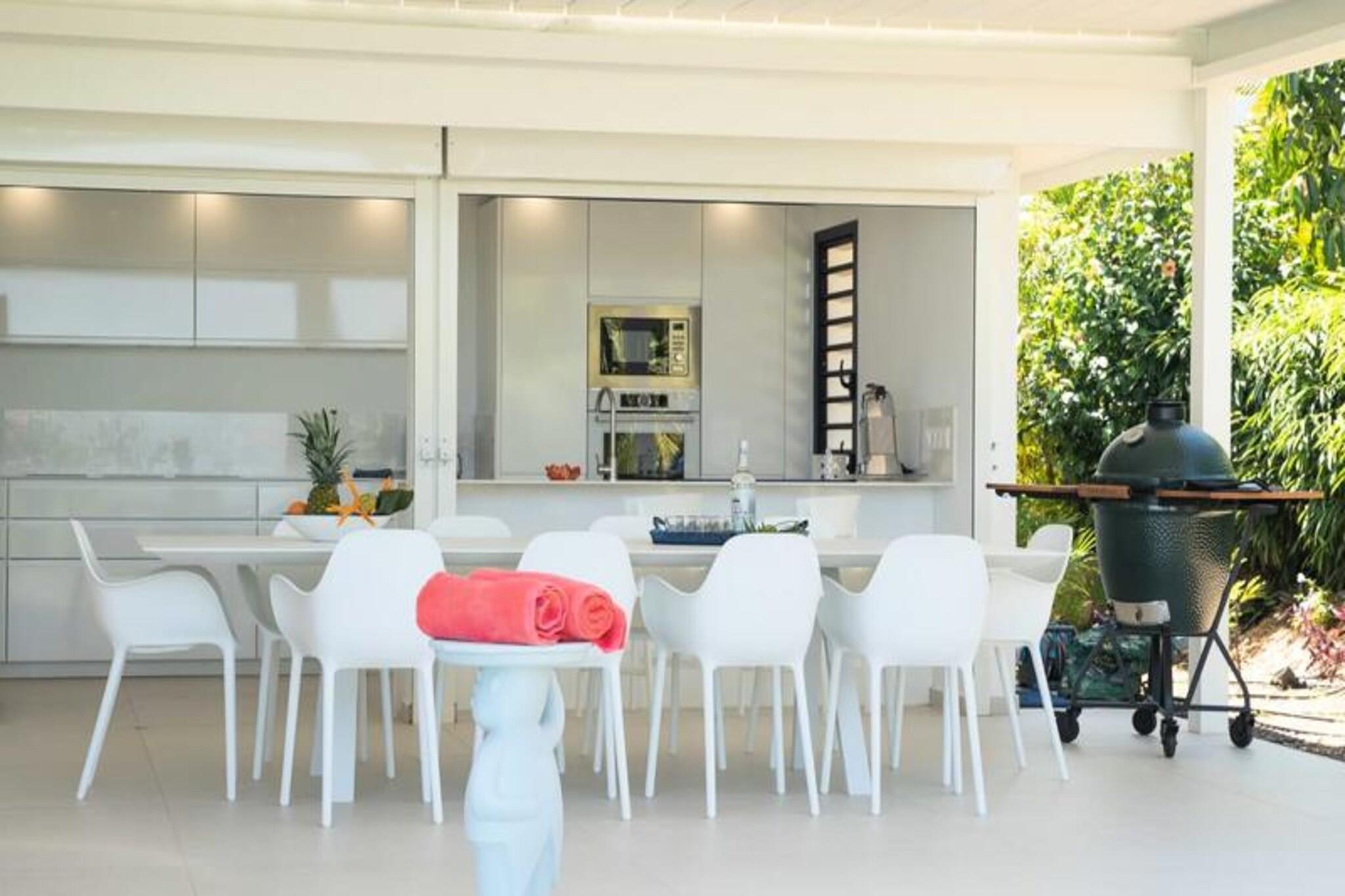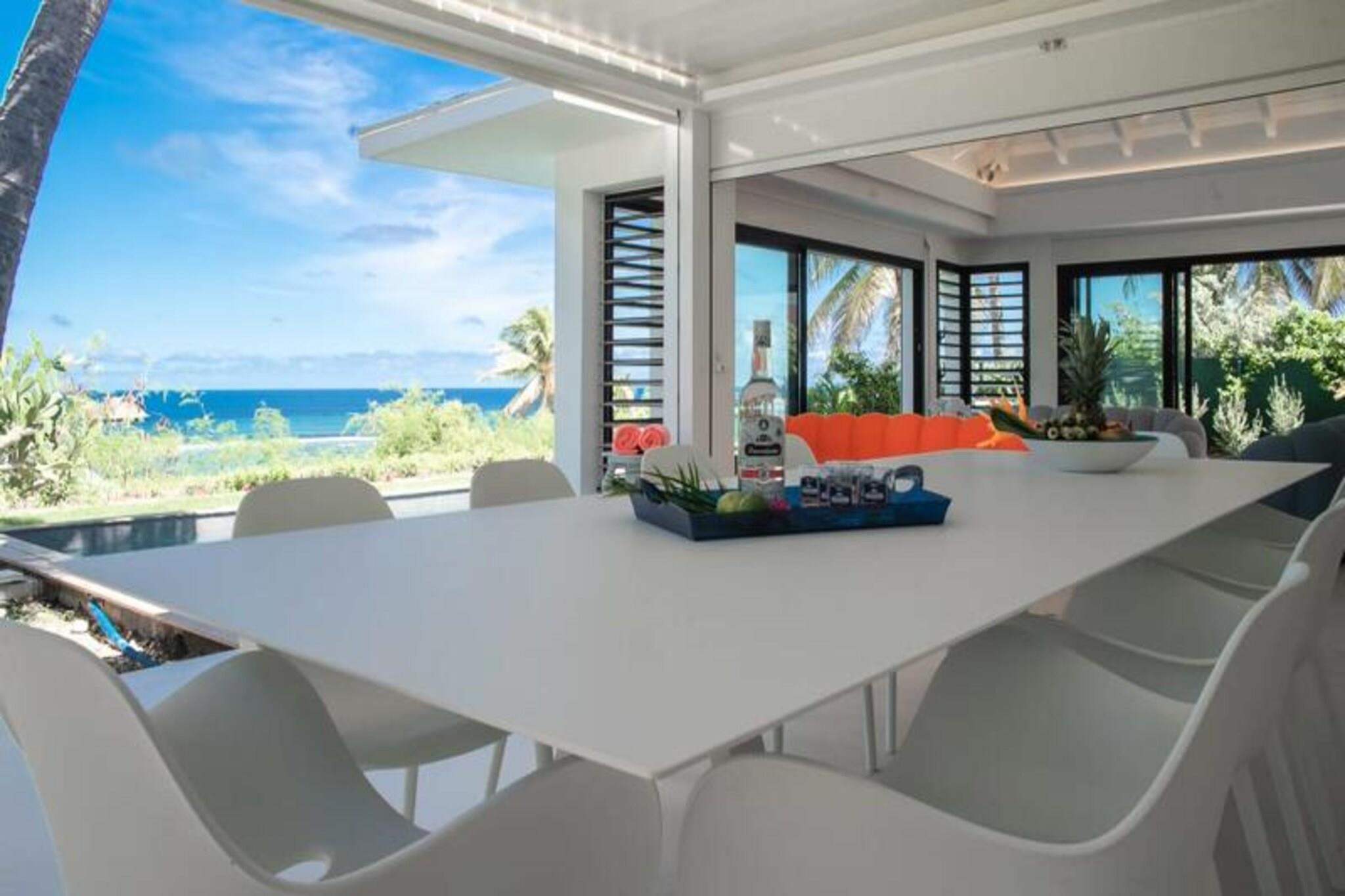Velkommen til **Villa Zyx**, en 5-stjernet villa med betagende **havudsigt**. Beliggende mellem Saint-François og spidsen af ??slottene, har denne moderne en-etagers villa 4 rummelige soveværelser, hver med et **privat badeværelse**, **påklædningsværelse** og **TV**, der kan rumme op til til 8 gæster. To soveværelser har **kingsize-senge**, mens de andre tilbyder **queen-size-senge**. Nyd den **private swimmingpool**, **udendørsbiograf** og en stor **terrasse** med en bioklimatisk veranda, ideel til udendørs afslapning. Kun 10 minutter fra **stranden** og **Saint-François centrum** finder du alle faciliteter, herunder et **supermarked**, **apotek** og **fiskemarked**. **Marina de Saint-François**, med butikker, restauranter og vandaktiviteter, ligger kun 5 minutter i bil. Nærliggende attraktioner omfatter **Saint-François Golfbane**, **casino** og **flyveplads** samt fantastiske strande som **Raisins Clairs** og **Caravelle**. Villaen har et **fuldt udstyret køkken**, **to køleskabe**, **to opvaskemaskiner** og en **vinkælder**. Med **klimaanlæg** på alle værelser, **Wi-Fi** og **daglig rengøring** efter anmodning, sikrer Villa Zyx komfort og bekvemmelighed for dit ophold.