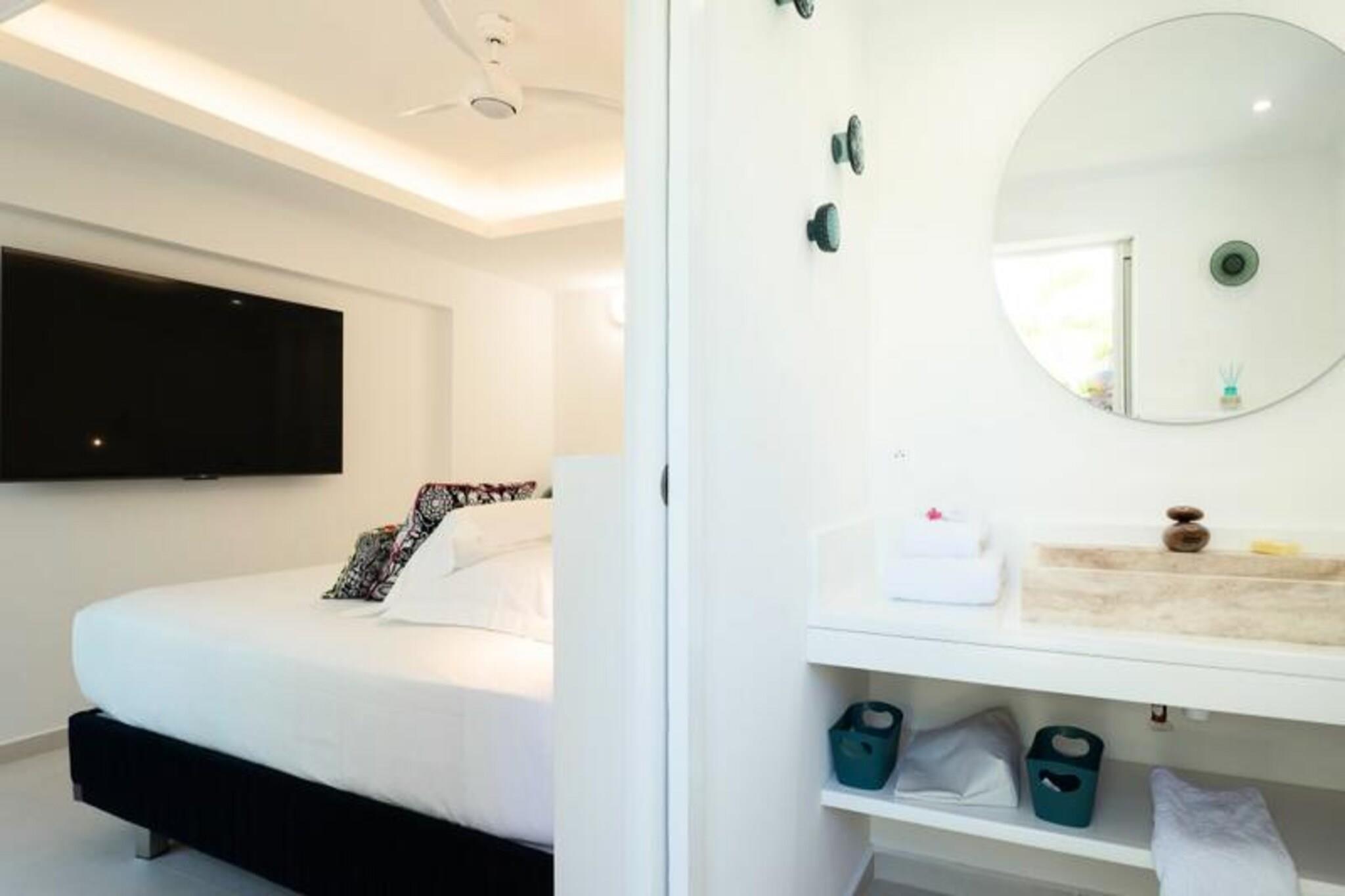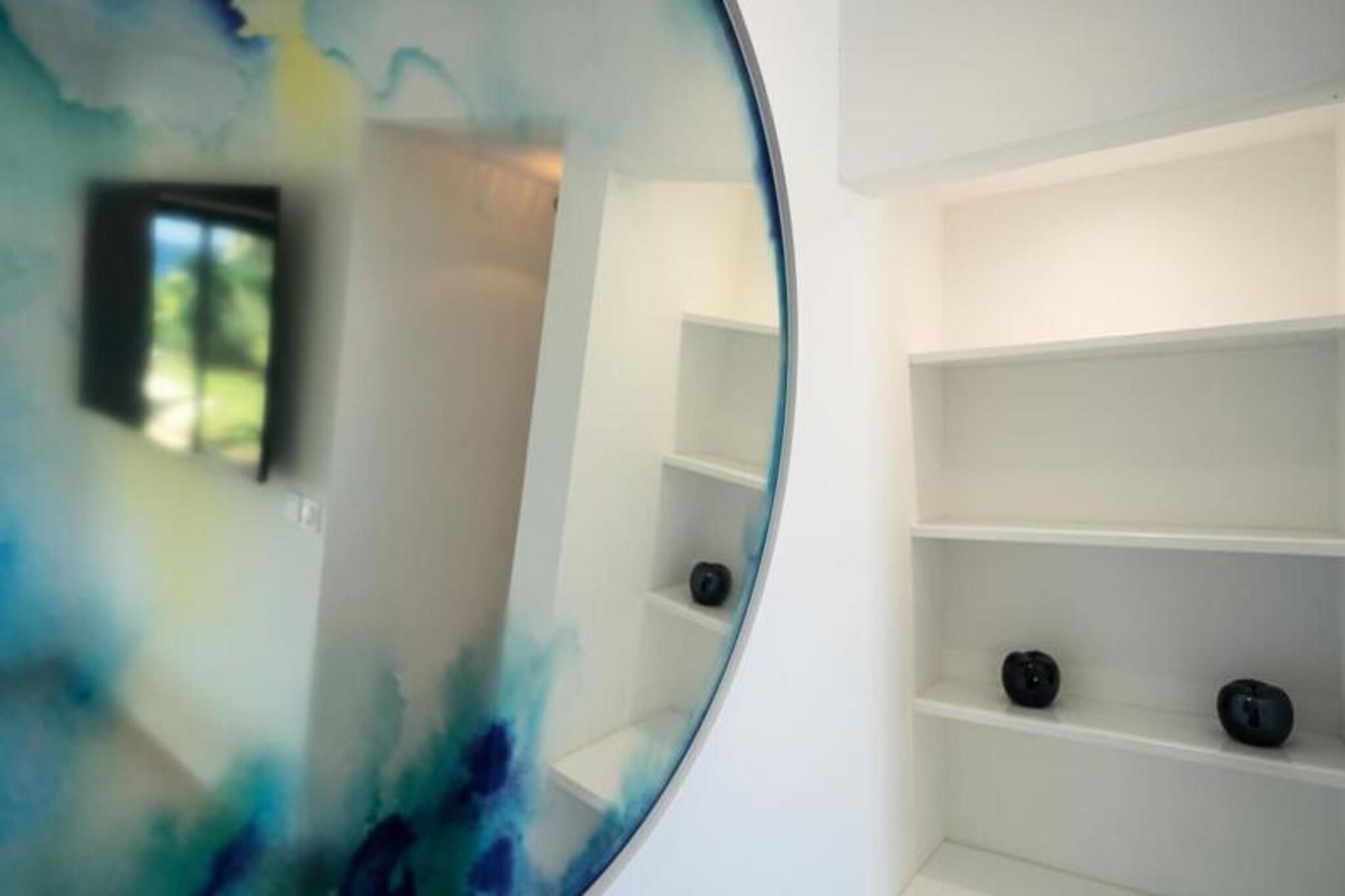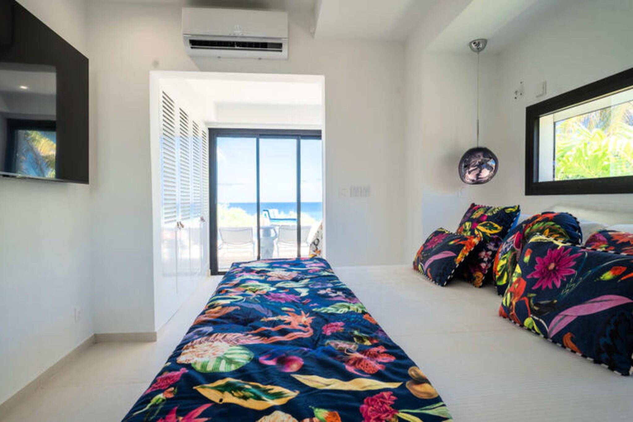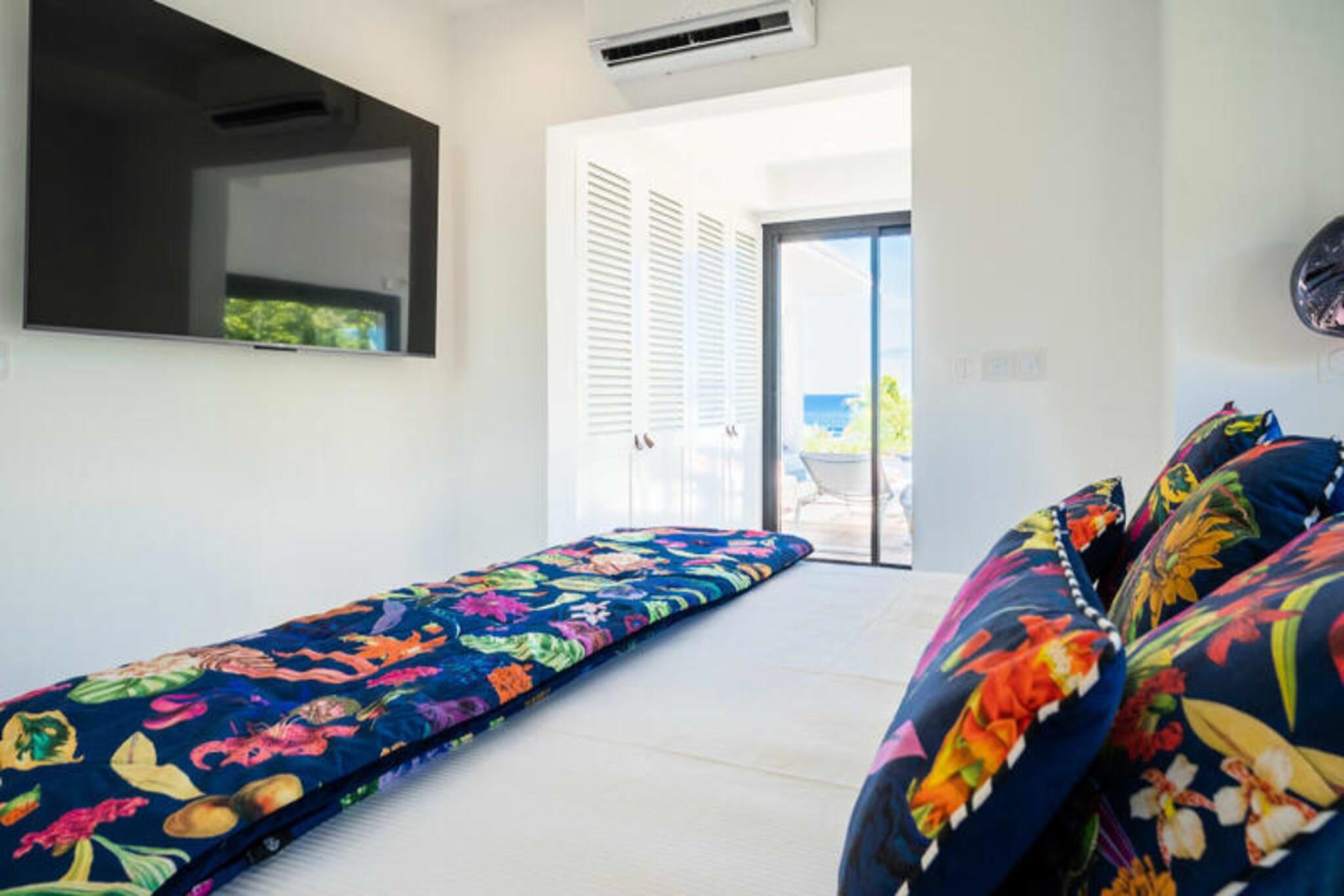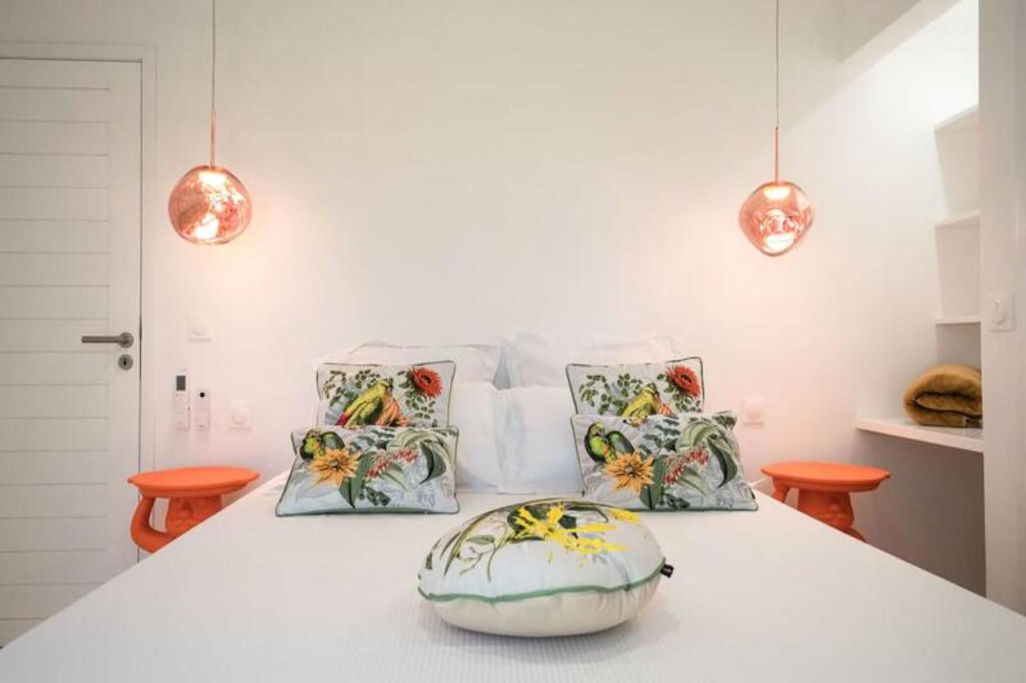 Velkommen til **Villa Zyx**, en 5-stjernet villa med betagende **havudsigt**. Beliggende mellem Saint-François og spidsen af ??slottene, har denne moderne en-etagers villa 4 rummelige soveværelser, hver med et **privat badeværelse**, **påklædningsværelse** og **TV**, der kan rumme op til til 8 gæster. To soveværelser har **kingsize-senge**, mens de andre tilbyder **queen-size-senge**. Nyd den **private swimmingpool**, **udendørsbiograf** og en stor **terrasse** med en bioklimatisk veranda, ideel til udendørs afslapning. Kun 10 minutter fra **stranden** og **Saint-François centrum** finder du alle faciliteter, herunder et **supermarked**, **apotek** og **fiskemarked**. **Marina de Saint-François**, med butikker, restauranter og vandaktiviteter, ligger kun 5 minutter i bil. Nærliggende attraktioner omfatter **Saint-François Golfbane**, **casino** og **flyveplads** samt fantastiske strande som **Raisins Clairs** og **Caravelle**. Villaen har et **fuldt udstyret køkken**, **to køleskabe**, **to opvaskemaskiner** og en **vinkælder**. Med **klimaanlæg** på alle værelser, **Wi-Fi** og **daglig rengøring** efter anmodning, sikrer Villa Zyx komfort og bekvemmelighed for dit ophold.