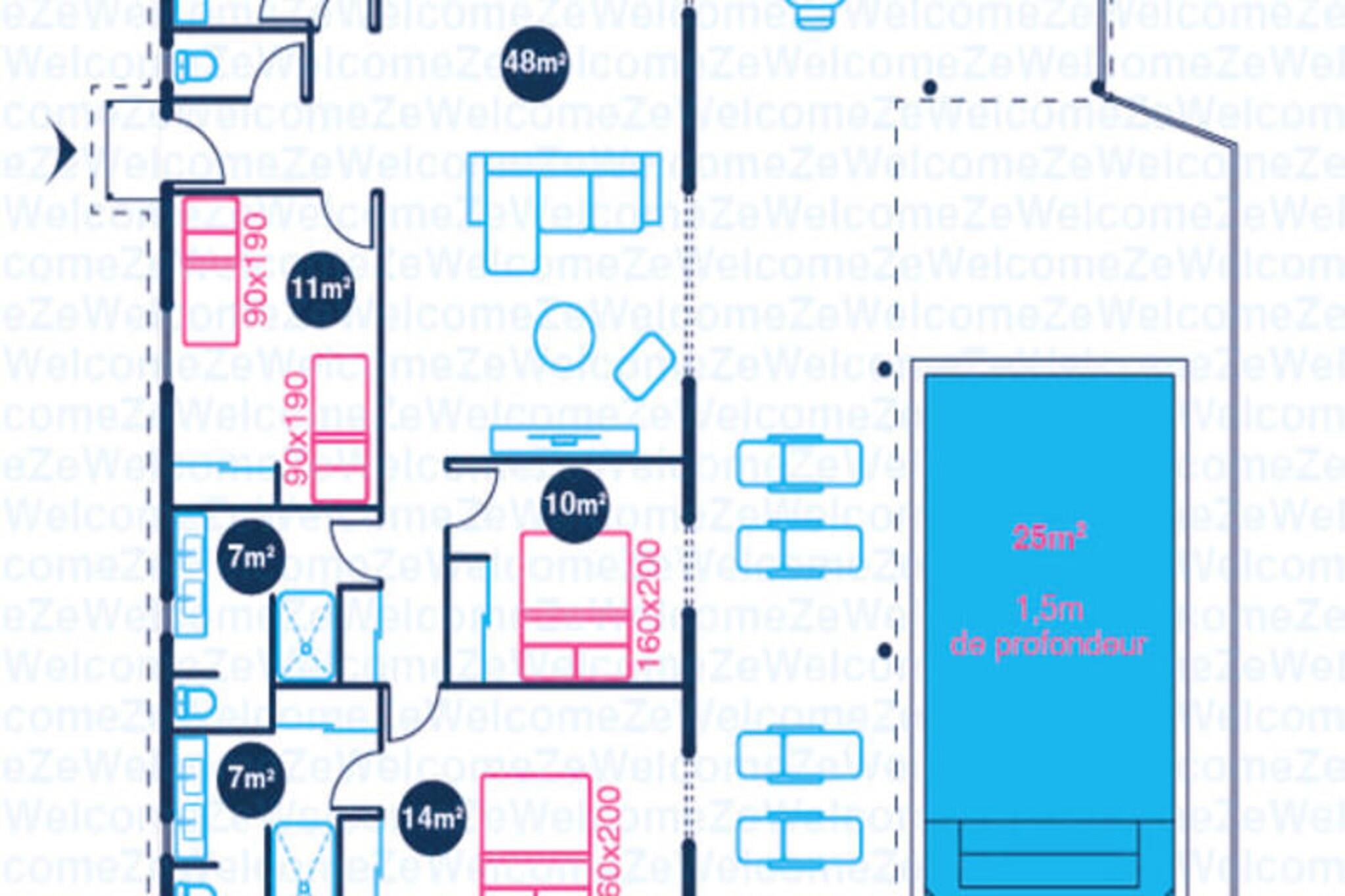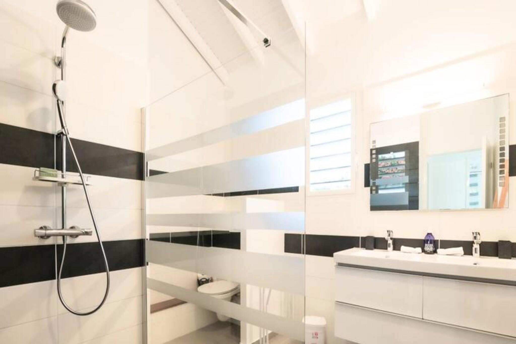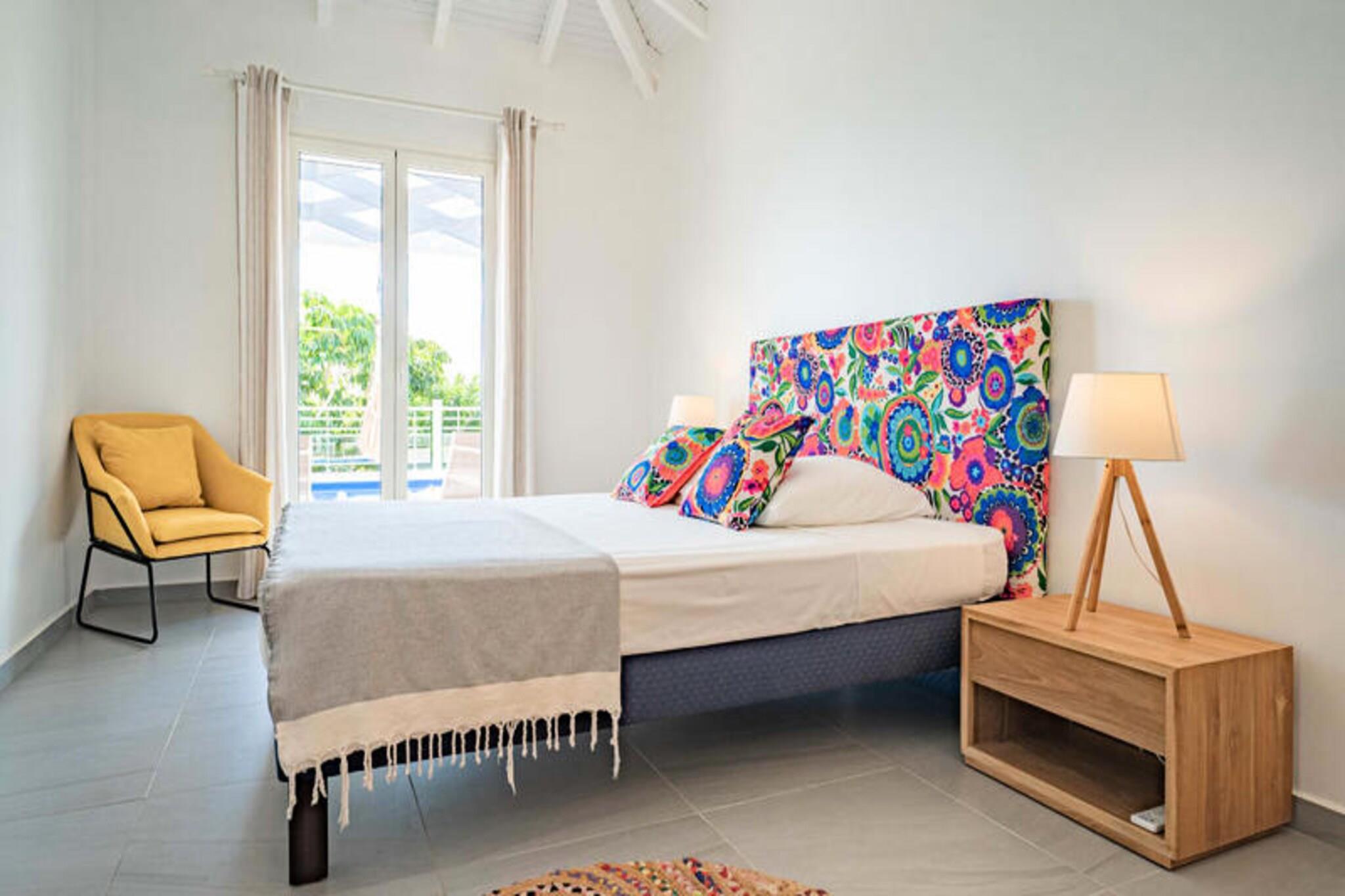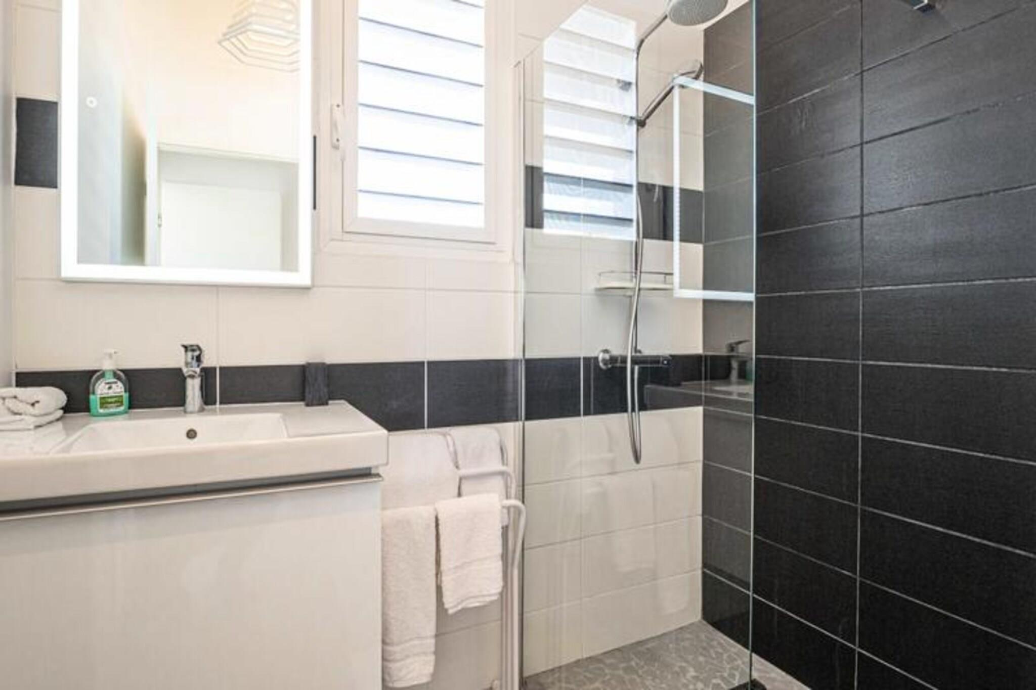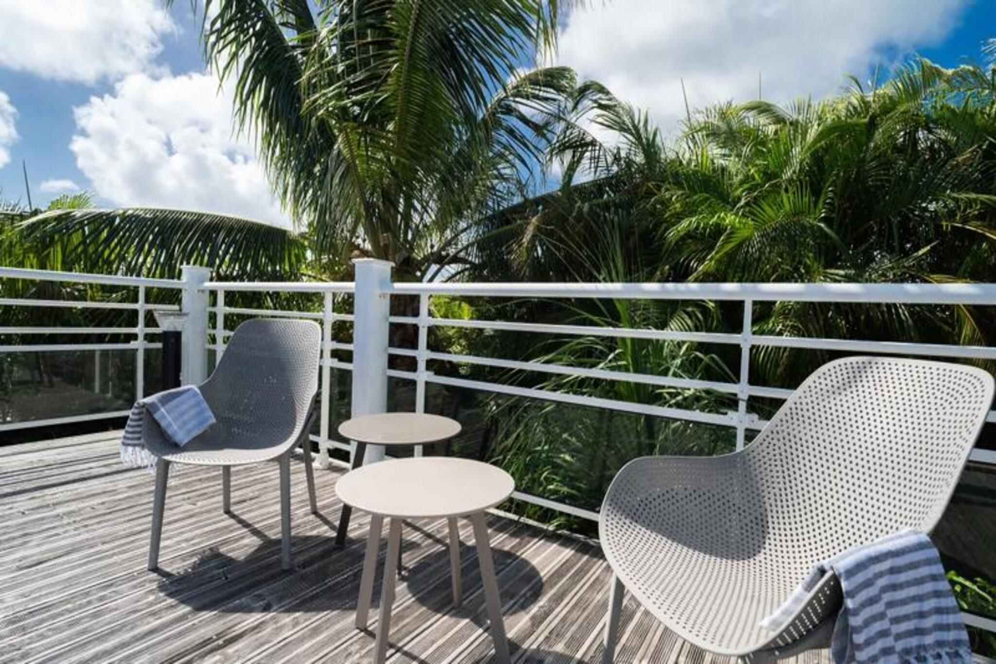 Dette rummelige feriehus har 4 soveværelser med aircondition, der komfortabelt kan rumme op til 8 gæster. To af soveværelserne har eget badeværelse, mens de to andre deler et brusebad. Et soveværelse tilbyder fleksible sovearrangementer med to enkeltsenge, der kan kombineres til en dobbeltseng. Den lyse stue åbner ud til en terrasse, perfekt til at nyde det Guadeloupeiske klima. Ejendommen er ikke kæledyrsvenlig og er designet til at sikre et roligt ophold uden fester tilladt. Denne villa ligger kun 2 minutter fra den smukke Raisins Clairs-strand og giver nem adgang til det fredfyldte vand og det gyldne sand til svømning og afslapning. Det livlige centrum af Saint-François ligger kun 5 minutter i bil og byder på en række restauranter, butikker og aktiviteter. Besøg Saint-François marina og udforsk lokale butikker og restauranter. Øen Marie Galante er synlig fra terrassen og tilføjer et magisk præg til omgivelserne. Villaen er udstyret med et fuldt funktionelt køkken, herunder en central ø og et bryggers til opbevaring. Den private swimmingpool er perfekt til at slappe af, mens den overdækkede udendørs terrasse giver plads til udendørs spisning. Ejendommen inkluderer også Wi-Fi, aircondition, håndklæder og sengetøj samt kvalitets rengøringsservice før og efter dit ophold. Et vandreservesystem sikrer kontinuerlig vandforsyning, hvilket giver ekstra komfort.