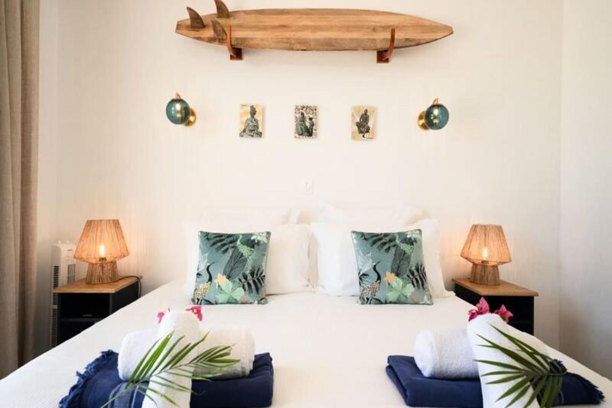 Denne charmerende ferielejlighed tilbyder komfortabel indkvartering for op til 4 personer. Den har to hyggelige soveværelser, et med en dobbeltseng og et andet med to enkeltsenge. Ejendommen er kæledyrsvenlig og tillader små kæledyr under visse betingelser. Gæsterne kan nyde adgang til en privat terrasse med havemøbler, perfekt til at slappe af udendørs. Boligen tilbyder også en privat parkeringsplads for ekstra bekvemmelighed. Beliggende kun 350 meter fra landsbyens centrum, er du tæt på lokale butikker, caféer og restauranter. Den smukke strand ligger kun 10 minutters gang væk (750 meter), og offentlige transportmuligheder er let tilgængelige. For udendørsentusiaster byder området på en række aktiviteter, herunder vandrestier og vandsport langs kysten. Lejligheden har et fuldt udstyret køkken med komfur, ovn og mikrobølgeovn, ideelt til at tilberede dine måltider. Badeværelset har en bruser, mens yderligere faciliteter såsom Wi-Fi, en vaskemaskine og aircondition sikrer et behageligt ophold.