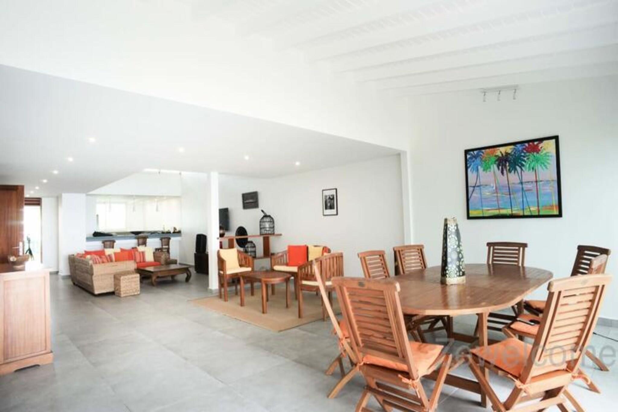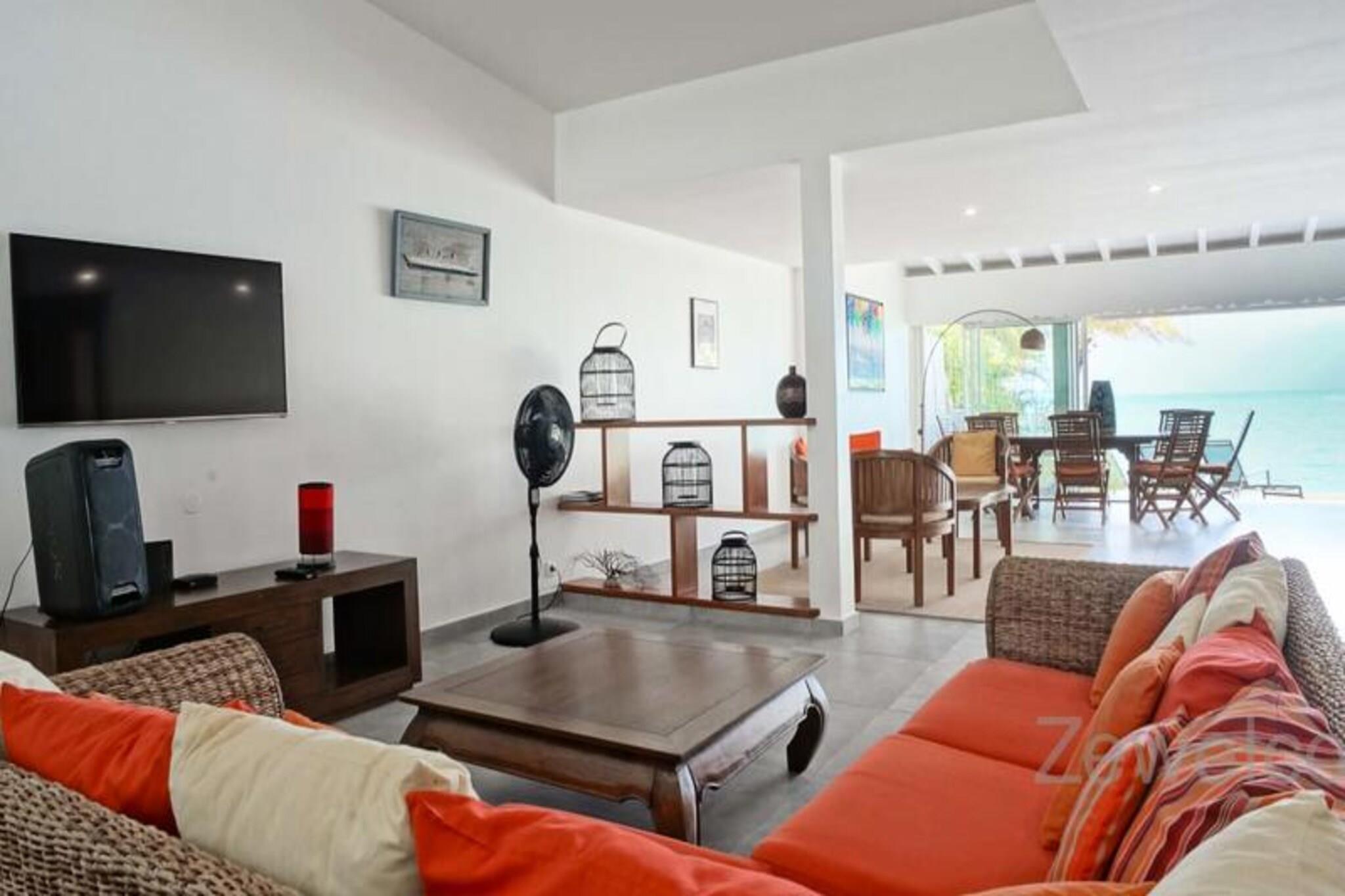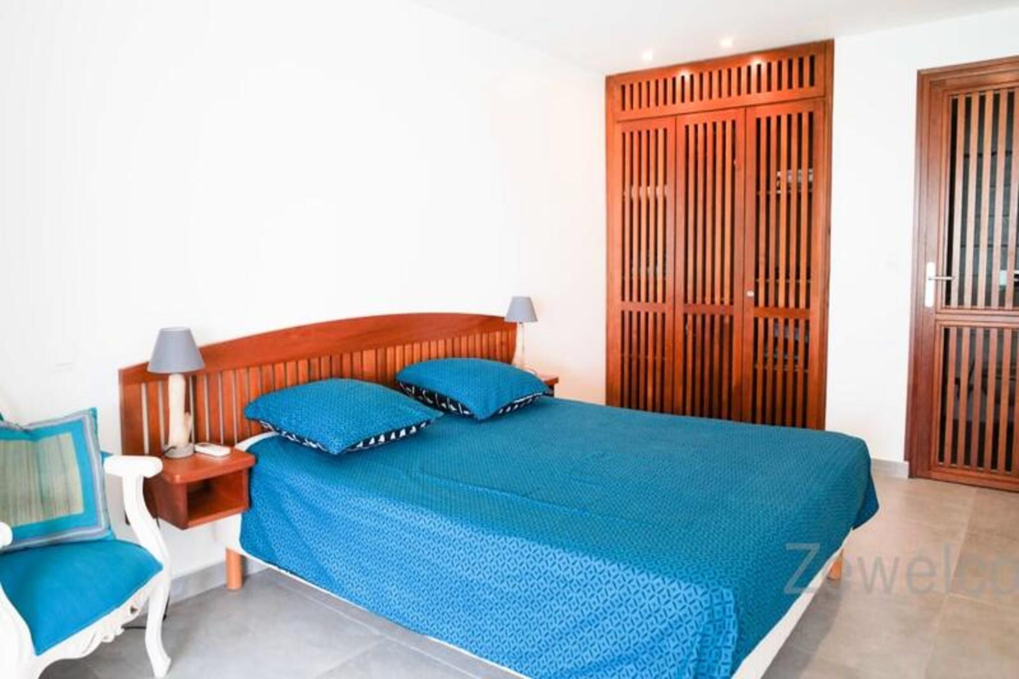 Denne luksuri?se villa tilbyder en enest?ende udsigt og direkte adgang til stranden, med plads til op til 8 g?ster. Med 4 rummelige sovev?relser, hver med eget badev?relse og toilet, sikrer villaen komfort og privatliv. Den store stue, ventilerede terrasse og kahyt ved vandet giver plads til afslapning, mens du nyder solnedgangen over Marie Galante og den rolige lagune. To kanoer og to padler er tilg?ngelige til vandaktiviteter, og ejendommen er k?ledyrsvenlig. Villaen ligger mellem Saint-Fran?ois International Golf Course og lagunen, kun 5 minutter fra byens centrum, hvor du kan finde butikker, caf?er og restauranter. Marina de Saint-Fran?ois byder p? spisning og shopping, mens de smukke strande, s?som Raisins Clairs og Anse ? la Gourde, er i n?rheden. Vandsportsentusiaster kan nyde aktiviteter i havnen i Saint-Fran?ois. Villaen har aircondition, internetadgang og et vandreservesystem for nemheds skyld. Et fuldt udstyret k?kken, komfortable toiletter og kvalitets reng?ring sikrer et behageligt ophold. H?ndkl?der og sengelinned er inkluderet, og en concierge er tilg?ngelig for yderligere tjenester, herunder udflugter og leje af k?ret?jer.