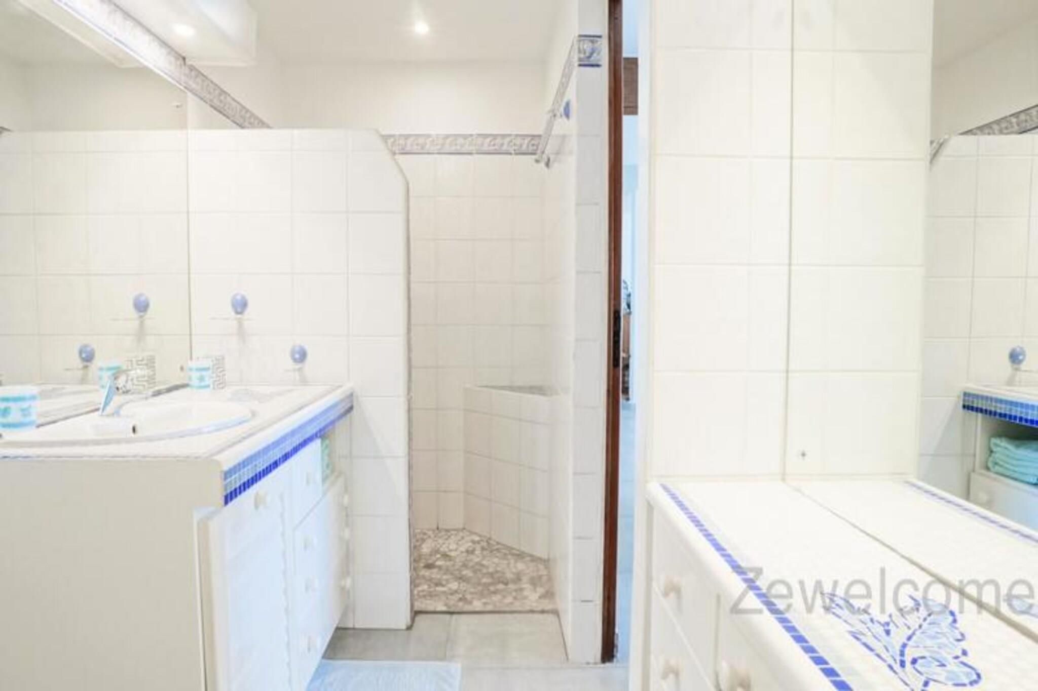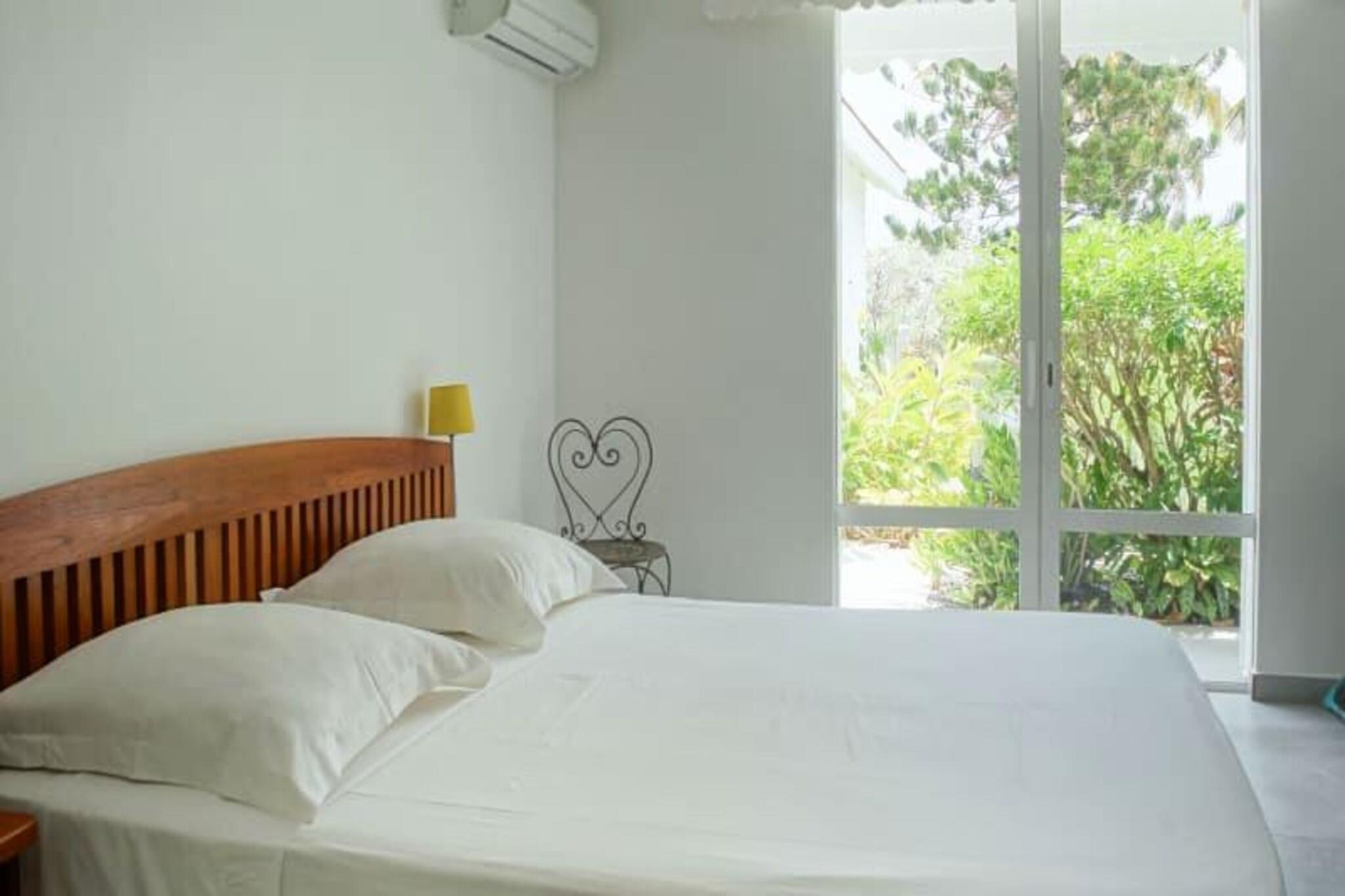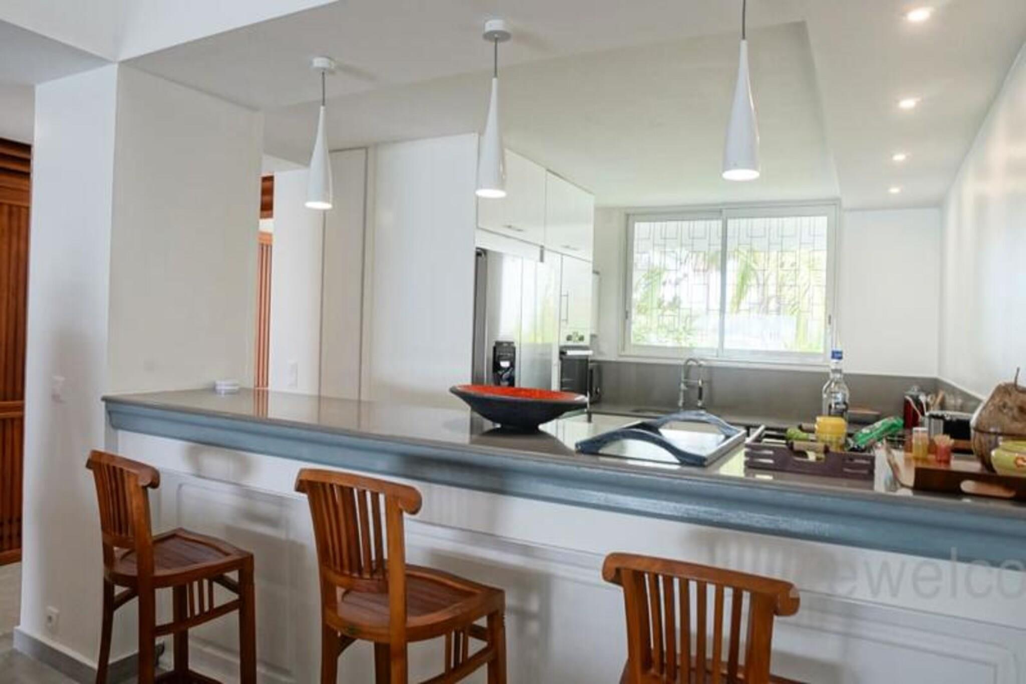 Denne luksuri?se villa tilbyder en enest?ende udsigt og direkte adgang til stranden, med plads til op til 8 g?ster. Med 4 rummelige sovev?relser, hver med eget badev?relse og toilet, sikrer villaen komfort og privatliv. Den store stue, ventilerede terrasse og kahyt ved vandet giver plads til afslapning, mens du nyder solnedgangen over Marie Galante og den rolige lagune. To kanoer og to padler er tilg?ngelige til vandaktiviteter, og ejendommen er k?ledyrsvenlig. Villaen ligger mellem Saint-Fran?ois International Golf Course og lagunen, kun 5 minutter fra byens centrum, hvor du kan finde butikker, caf?er og restauranter. Marina de Saint-Fran?ois byder p? spisning og shopping, mens de smukke strande, s?som Raisins Clairs og Anse ? la Gourde, er i n?rheden. Vandsportsentusiaster kan nyde aktiviteter i havnen i Saint-Fran?ois. Villaen har aircondition, internetadgang og et vandreservesystem for nemheds skyld. Et fuldt udstyret k?kken, komfortable toiletter og kvalitets reng?ring sikrer et behageligt ophold. H?ndkl?der og sengelinned er inkluderet, og en concierge er tilg?ngelig for yderligere tjenester, herunder udflugter og leje af k?ret?jer.