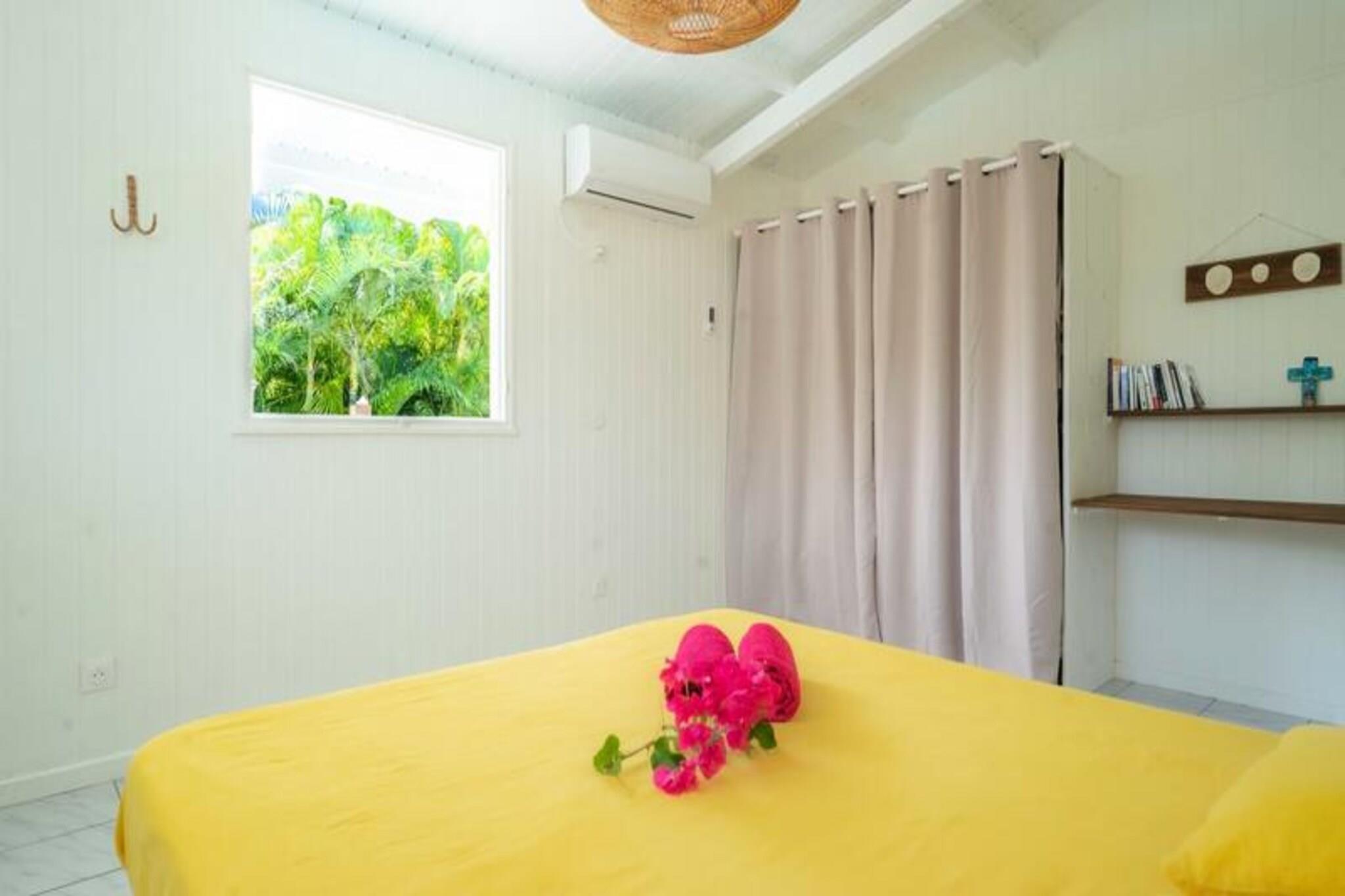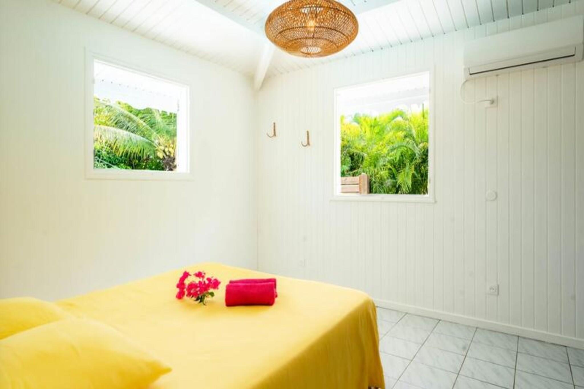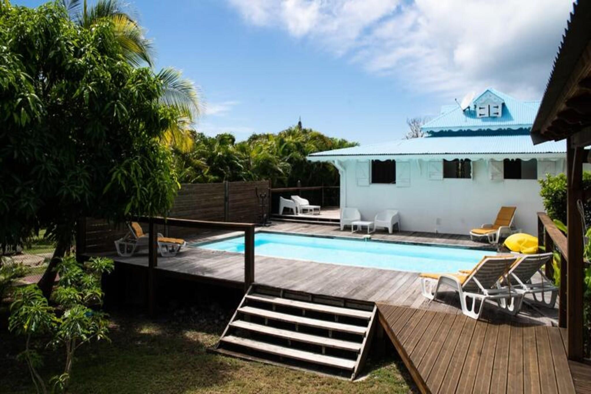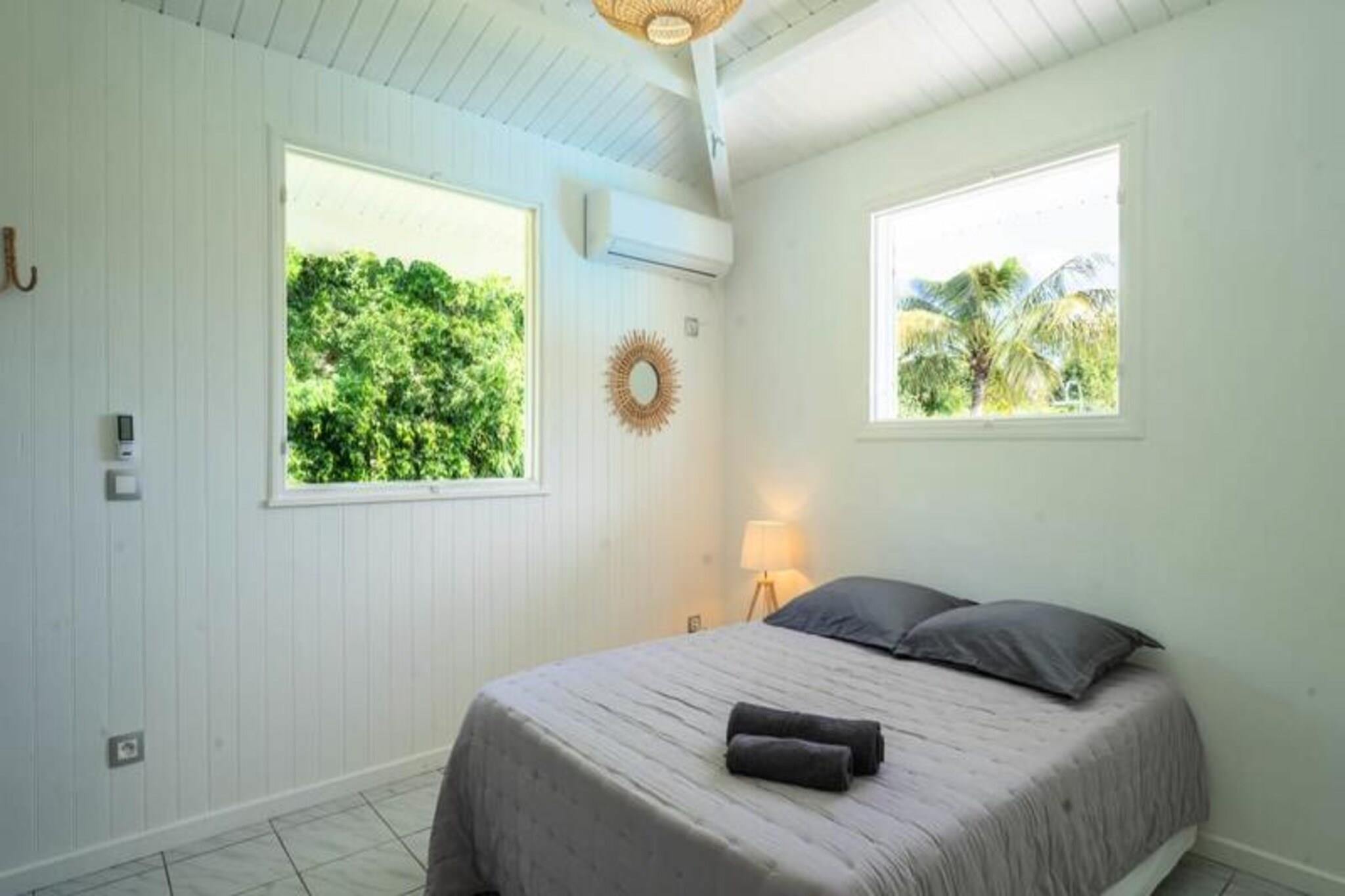 Denne rummelige og lyse villa tilbyder et fredeligt tilflugtssted for op til 4 gæster med 2 soveværelser med aircondition og en 140 cm seng og en 160 cm seng, perfekt til familier eller venner. Villaen er kæledyrsvenlig og byder dine lodne ledsagere velkommen til at deltage i afslapningen. Til villaen hører også et smukt indrettet opholdsrum med masser af naturligt lys og en stor terrasse. Udendørsområdet er ideelt til at nyde måltider eller drinks under carbet, ved siden af ??den private swimmingpool. Villaens rolige beliggenhed i en skovklædt park sikrer total privatliv og afslapning. Villaen er beliggende i byen Saint-François på Guadeloupes Grande-Terre, inden for en kort køretur fra restauranter, caféer og markeder. Den nærliggende strand Anse des Rochers ligger kun 15 minutters gang væk, mens nogle af de smukkeste strande i Guadeloupe, herunder Raisins Clairs og Anse à la Gourde, kun ligger 5-10 minutters kørsel væk. Saint-François Marina med sine butikker, spisemuligheder og vandaktiviteter ligger også tæt på. For golfentusiaster ligger Saint-François International Golf Course kun få minutter væk, og den berømte Pointe-des-Châteaux-plads ligger kun 15 minutters kørsel derfra. Indvendigt er villaen fuldt udstyret til et behageligt ophold og byder på et rummeligt amerikansk køkken med spisekammer, køleskab, ovn og mikroovn. Det unikke badeværelse indeholder to brusere, perfekt til familiebrug. Til udendørs afslapning kan gæsterne nyde en have med frugttræer og blomster, et grillområde og en træpark. Villaen har også moderne bekvemmeligheder såsom WiFi, et vandreservesystem og rengøringsservice før og efter dit ophold.