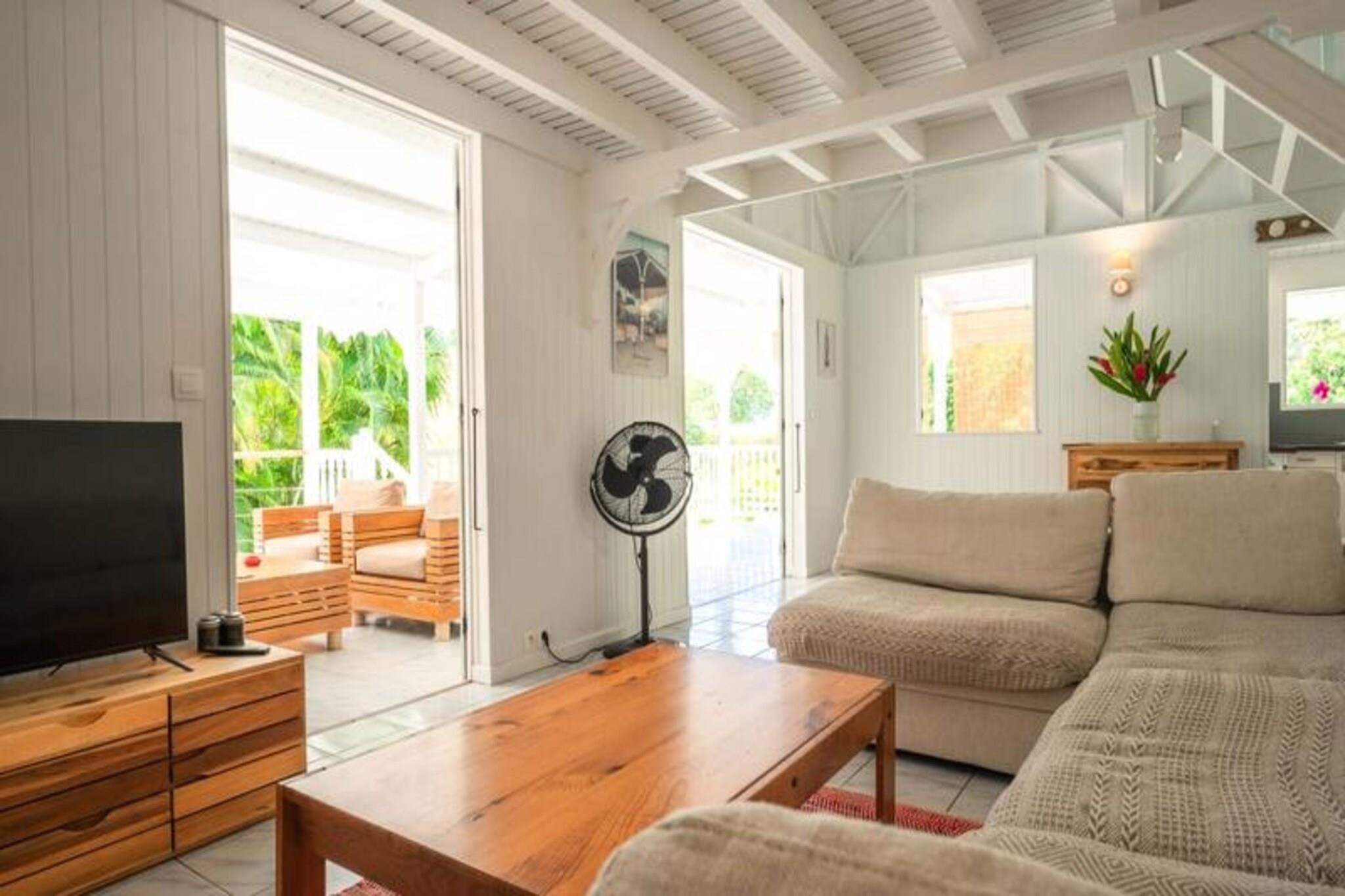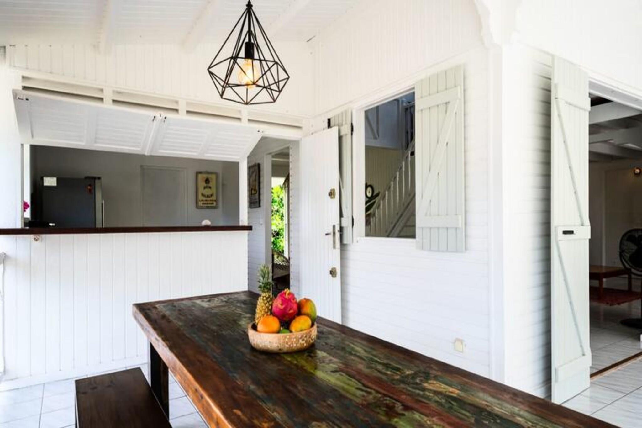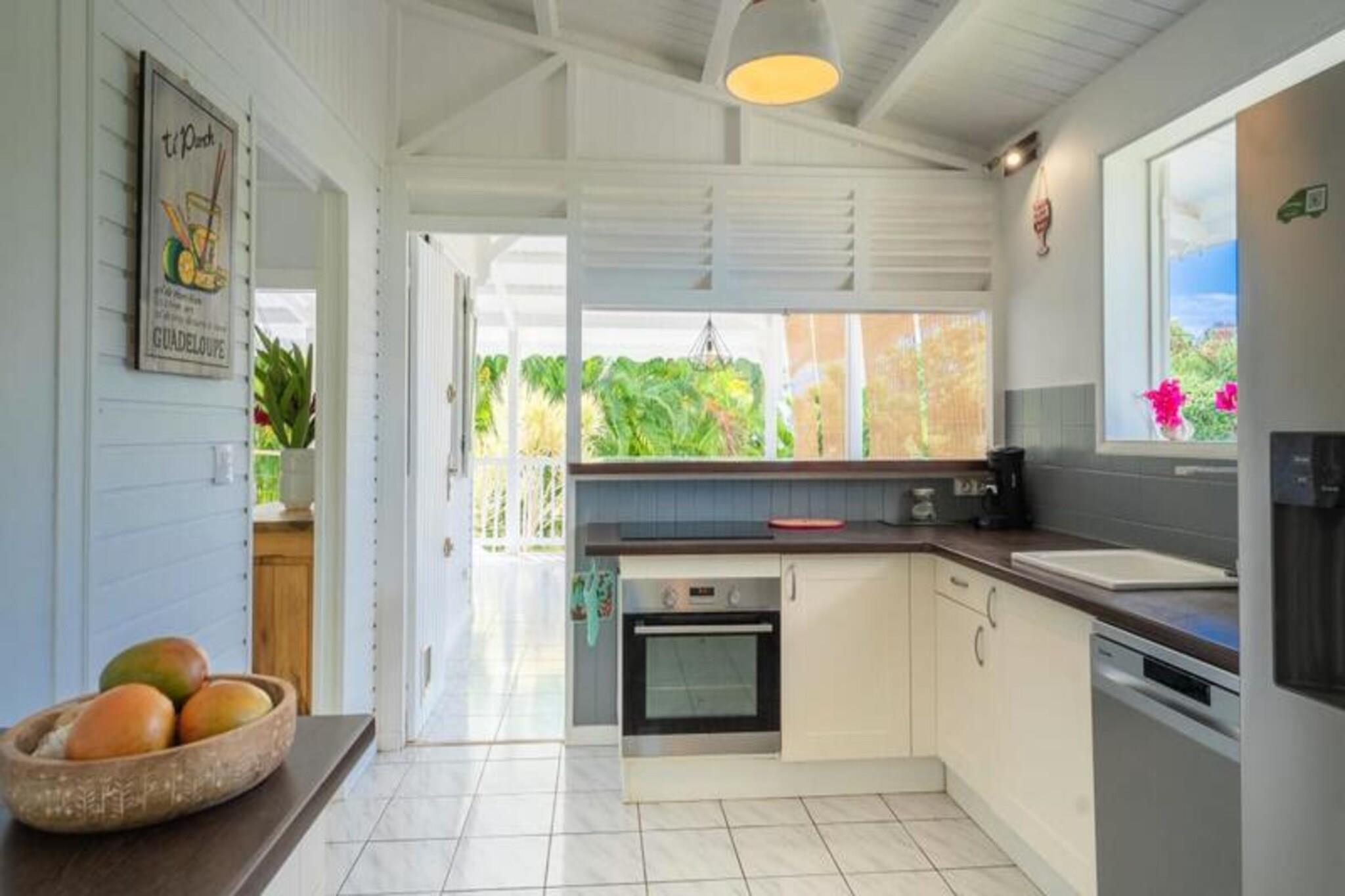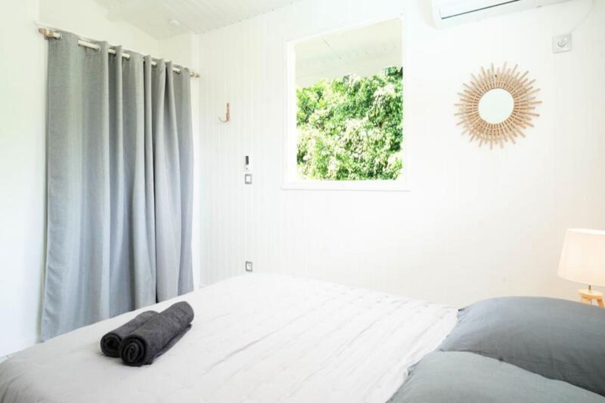 Denne rummelige og lyse villa tilbyder et fredeligt tilflugtssted for op til 4 gæster med 2 soveværelser med aircondition og en 140 cm seng og en 160 cm seng, perfekt til familier eller venner. Villaen er kæledyrsvenlig og byder dine lodne ledsagere velkommen til at deltage i afslapningen. Til villaen hører også et smukt indrettet opholdsrum med masser af naturligt lys og en stor terrasse. Udendørsområdet er ideelt til at nyde måltider eller drinks under carbet, ved siden af ??den private swimmingpool. Villaens rolige beliggenhed i en skovklædt park sikrer total privatliv og afslapning. Villaen er beliggende i byen Saint-François på Guadeloupes Grande-Terre, inden for en kort køretur fra restauranter, caféer og markeder. Den nærliggende strand Anse des Rochers ligger kun 15 minutters gang væk, mens nogle af de smukkeste strande i Guadeloupe, herunder Raisins Clairs og Anse à la Gourde, kun ligger 5-10 minutters kørsel væk. Saint-François Marina med sine butikker, spisemuligheder og vandaktiviteter ligger også tæt på. For golfentusiaster ligger Saint-François International Golf Course kun få minutter væk, og den berømte Pointe-des-Châteaux-plads ligger kun 15 minutters kørsel derfra. Indvendigt er villaen fuldt udstyret til et behageligt ophold og byder på et rummeligt amerikansk køkken med spisekammer, køleskab, ovn og mikroovn. Det unikke badeværelse indeholder to brusere, perfekt til familiebrug. Til udendørs afslapning kan gæsterne nyde en have med frugttræer og blomster, et grillområde og en træpark. Villaen har også moderne bekvemmeligheder såsom WiFi, et vandreservesystem og rengøringsservice før og efter dit ophold.