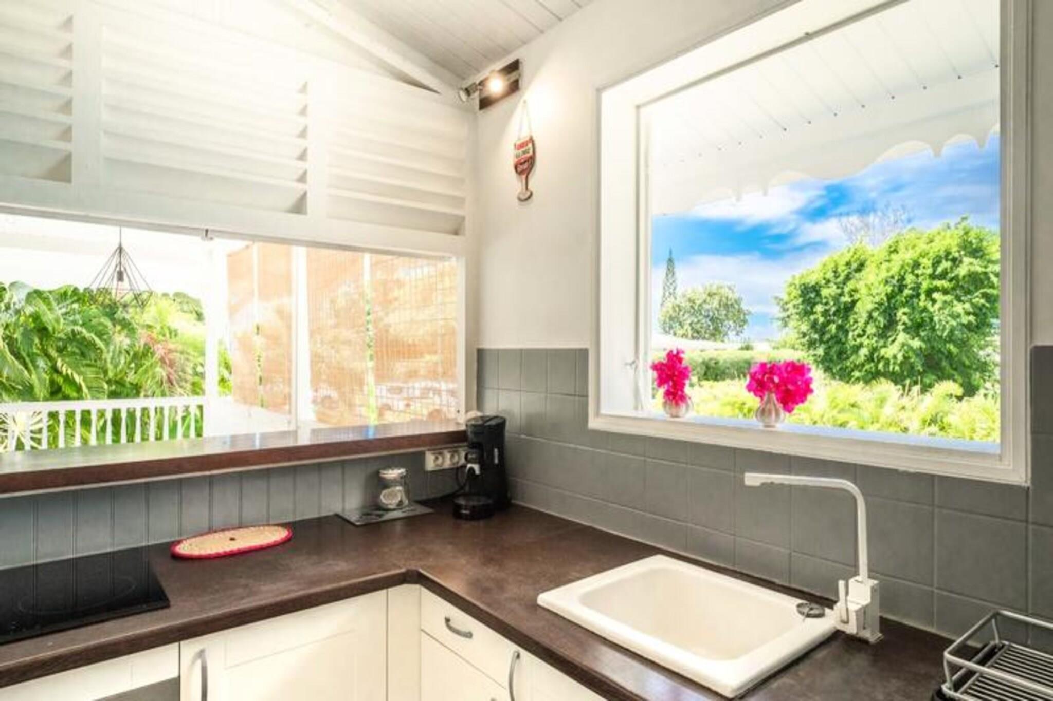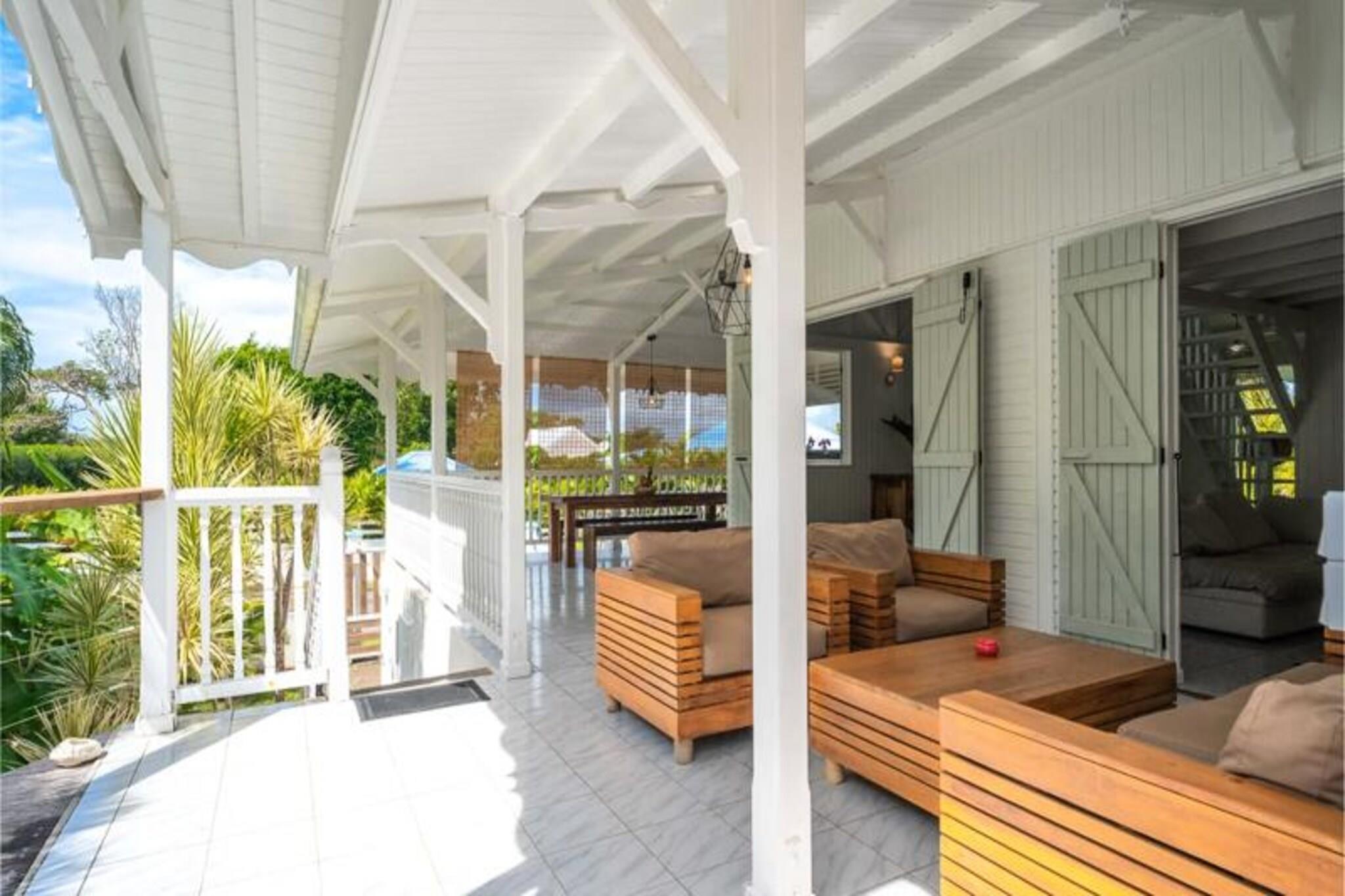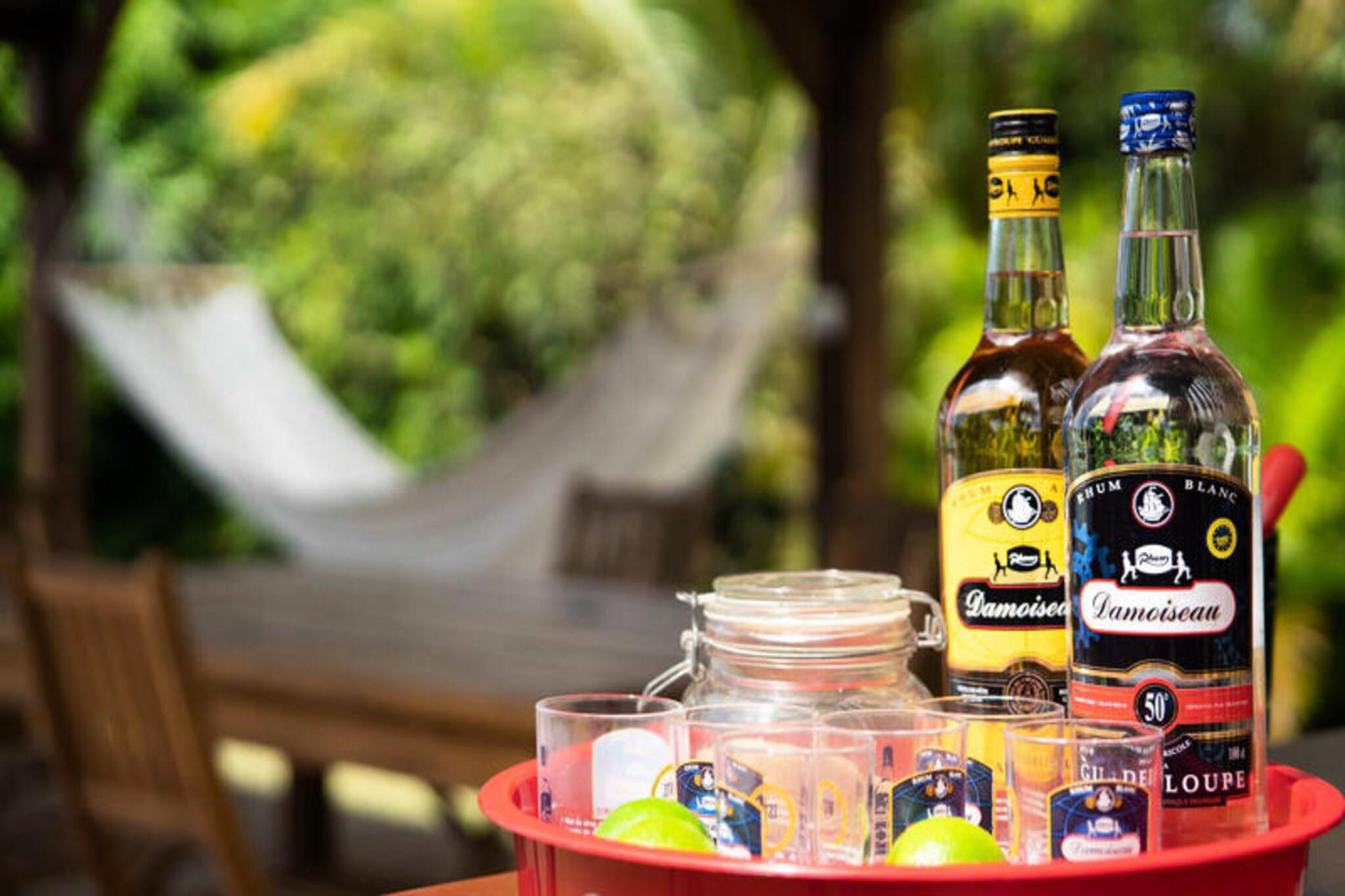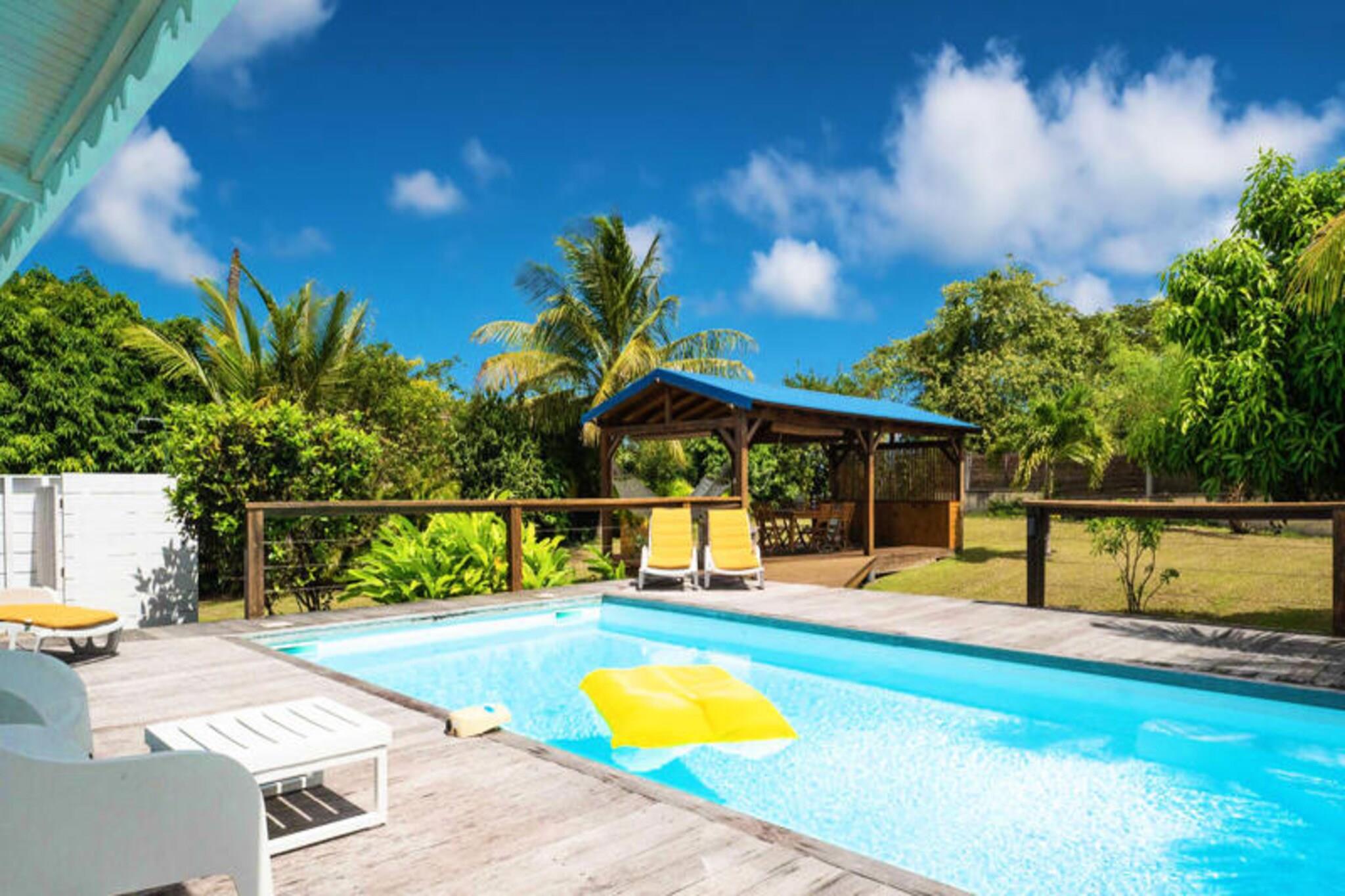 Denne rummelige og lyse villa tilbyder et fredeligt tilflugtssted for op til 4 gæster med 2 soveværelser med aircondition og en 140 cm seng og en 160 cm seng, perfekt til familier eller venner. Villaen er kæledyrsvenlig og byder dine lodne ledsagere velkommen til at deltage i afslapningen. Til villaen hører også et smukt indrettet opholdsrum med masser af naturligt lys og en stor terrasse. Udendørsområdet er ideelt til at nyde måltider eller drinks under carbet, ved siden af ??den private swimmingpool. Villaens rolige beliggenhed i en skovklædt park sikrer total privatliv og afslapning. Villaen er beliggende i byen Saint-François på Guadeloupes Grande-Terre, inden for en kort køretur fra restauranter, caféer og markeder. Den nærliggende strand Anse des Rochers ligger kun 15 minutters gang væk, mens nogle af de smukkeste strande i Guadeloupe, herunder Raisins Clairs og Anse à la Gourde, kun ligger 5-10 minutters kørsel væk. Saint-François Marina med sine butikker, spisemuligheder og vandaktiviteter ligger også tæt på. For golfentusiaster ligger Saint-François International Golf Course kun få minutter væk, og den berømte Pointe-des-Châteaux-plads ligger kun 15 minutters kørsel derfra. Indvendigt er villaen fuldt udstyret til et behageligt ophold og byder på et rummeligt amerikansk køkken med spisekammer, køleskab, ovn og mikroovn. Det unikke badeværelse indeholder to brusere, perfekt til familiebrug. Til udendørs afslapning kan gæsterne nyde en have med frugttræer og blomster, et grillområde og en træpark. Villaen har også moderne bekvemmeligheder såsom WiFi, et vandreservesystem og rengøringsservice før og efter dit ophold.