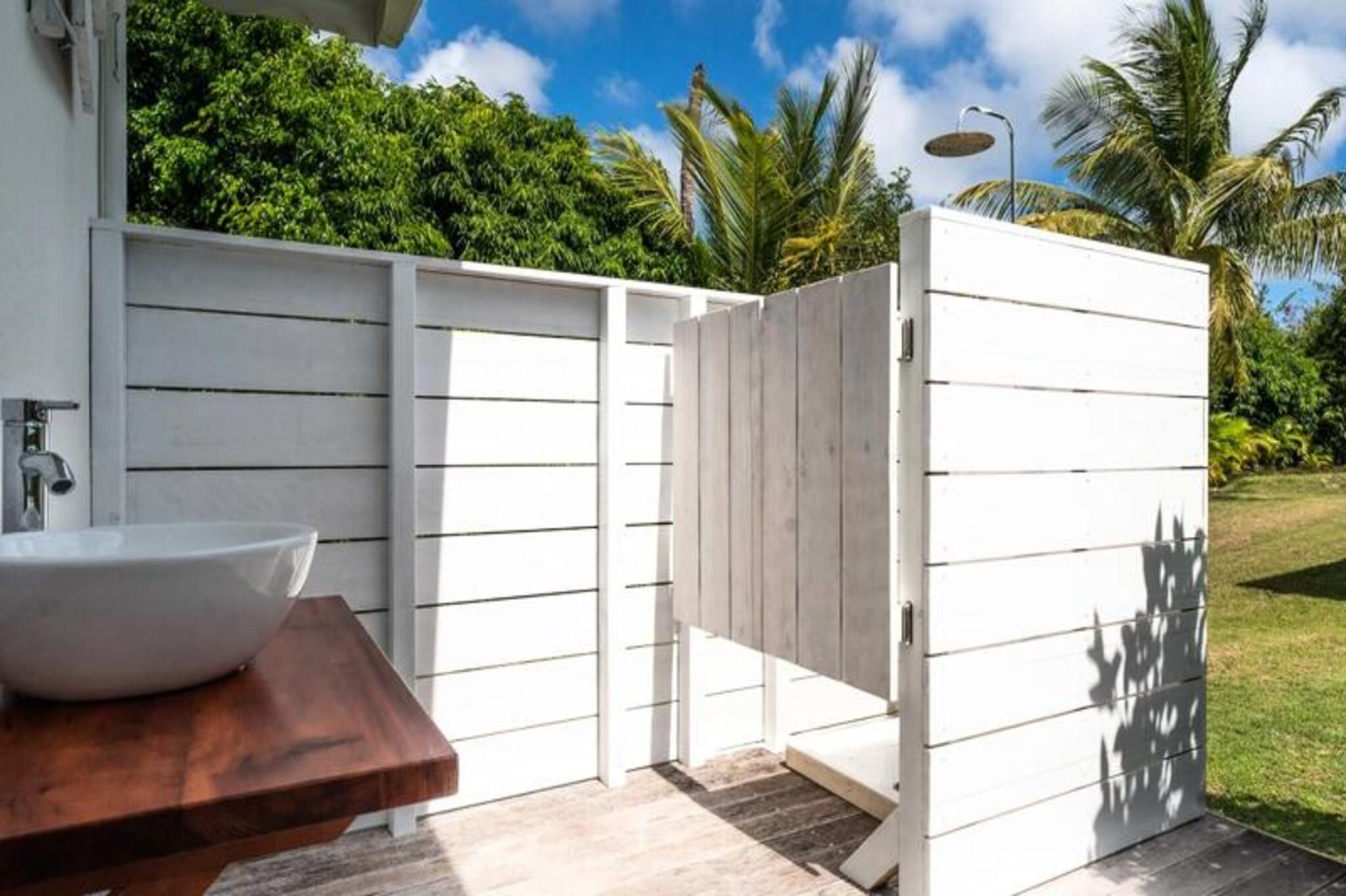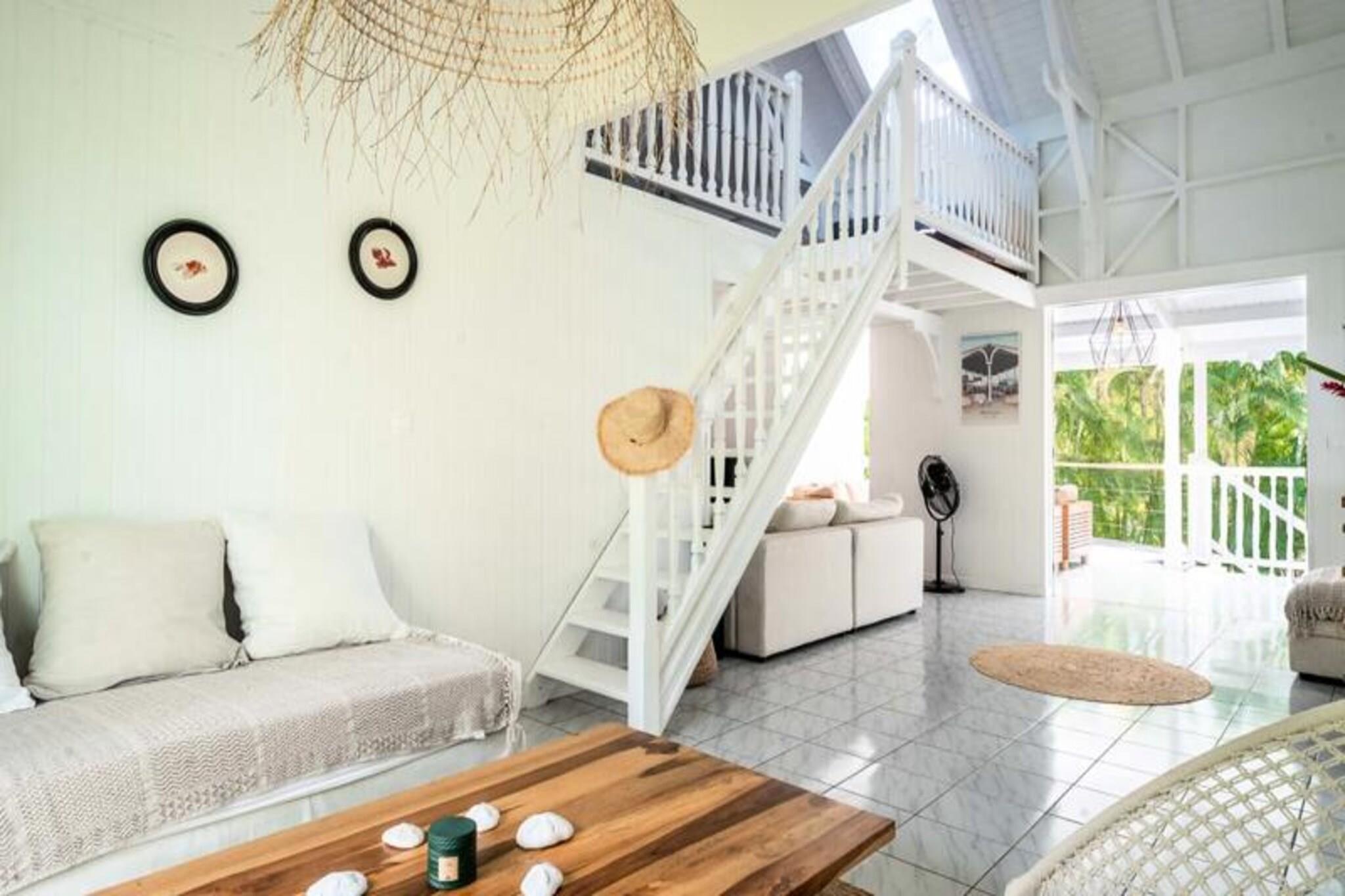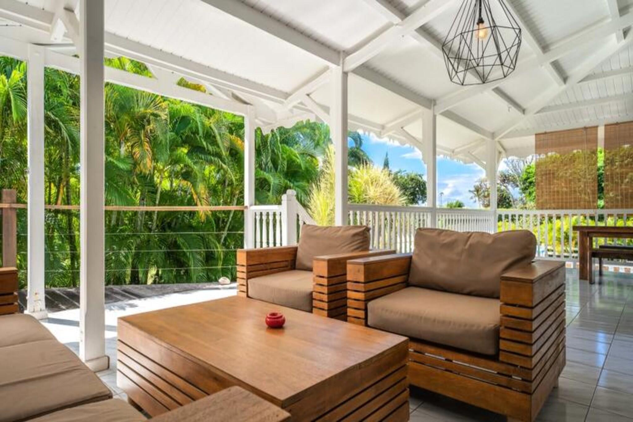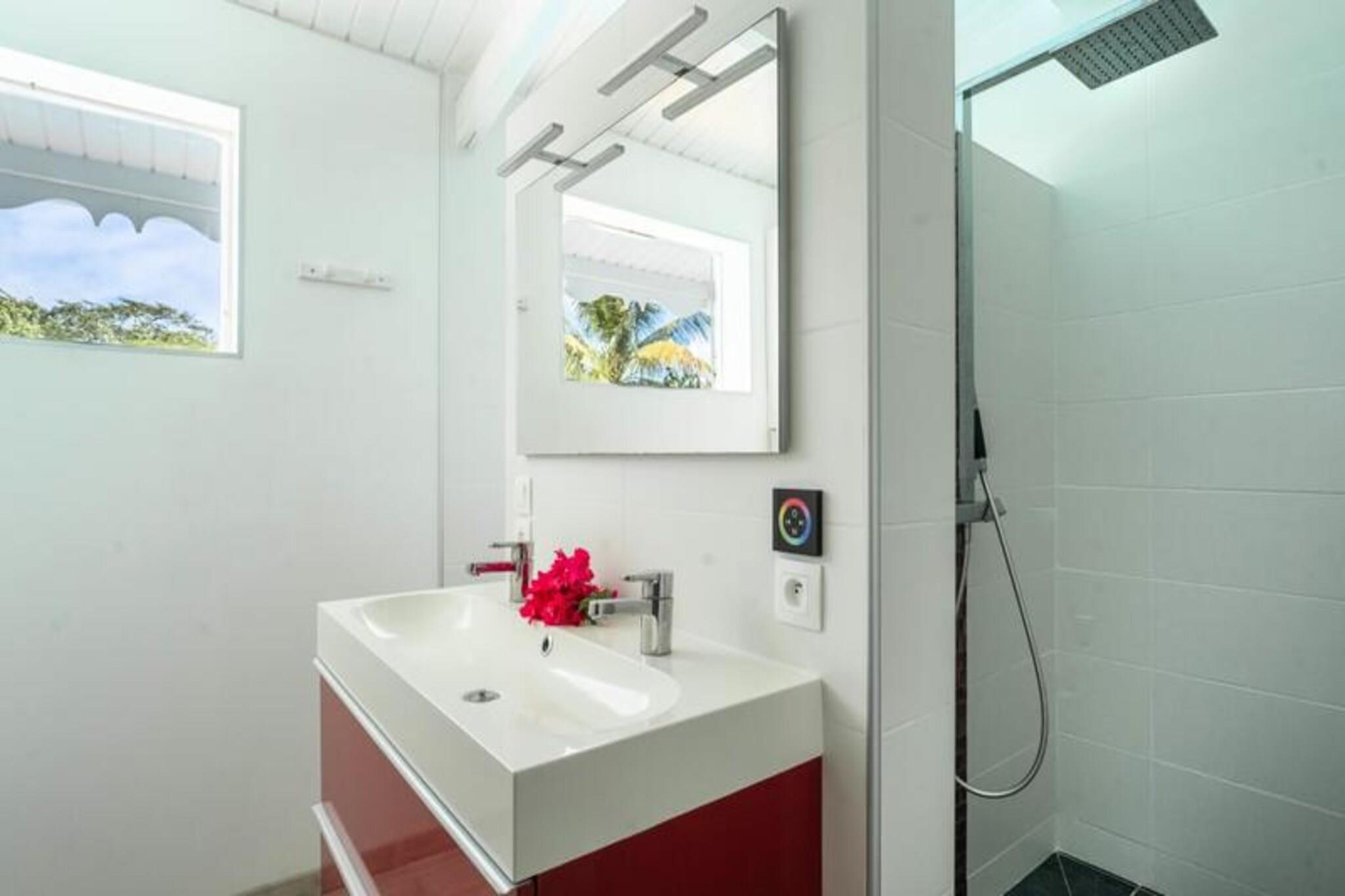 Denne rummelige og lyse villa tilbyder et fredeligt tilflugtssted for op til 4 gæster med 2 soveværelser med aircondition og en 140 cm seng og en 160 cm seng, perfekt til familier eller venner. Villaen er kæledyrsvenlig og byder dine lodne ledsagere velkommen til at deltage i afslapningen. Til villaen hører også et smukt indrettet opholdsrum med masser af naturligt lys og en stor terrasse. Udendørsområdet er ideelt til at nyde måltider eller drinks under carbet, ved siden af ??den private swimmingpool. Villaens rolige beliggenhed i en skovklædt park sikrer total privatliv og afslapning. Villaen er beliggende i byen Saint-François på Guadeloupes Grande-Terre, inden for en kort køretur fra restauranter, caféer og markeder. Den nærliggende strand Anse des Rochers ligger kun 15 minutters gang væk, mens nogle af de smukkeste strande i Guadeloupe, herunder Raisins Clairs og Anse à la Gourde, kun ligger 5-10 minutters kørsel væk. Saint-François Marina med sine butikker, spisemuligheder og vandaktiviteter ligger også tæt på. For golfentusiaster ligger Saint-François International Golf Course kun få minutter væk, og den berømte Pointe-des-Châteaux-plads ligger kun 15 minutters kørsel derfra. Indvendigt er villaen fuldt udstyret til et behageligt ophold og byder på et rummeligt amerikansk køkken med spisekammer, køleskab, ovn og mikroovn. Det unikke badeværelse indeholder to brusere, perfekt til familiebrug. Til udendørs afslapning kan gæsterne nyde en have med frugttræer og blomster, et grillområde og en træpark. Villaen har også moderne bekvemmeligheder såsom WiFi, et vandreservesystem og rengøringsservice før og efter dit ophold.